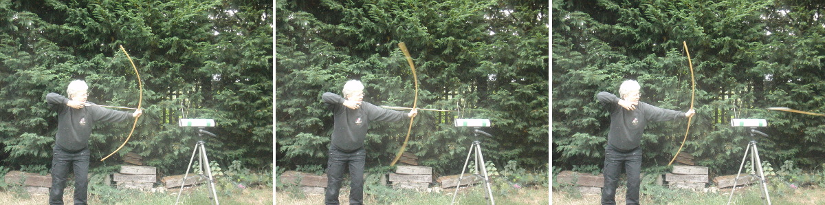 Sabemos que mi longbow mide 75" y ofrece 40 libras a 28". El mollegabet de Angela, hecho de una sola pieza de arce, mide 66" y tiene 25 libras a 25".