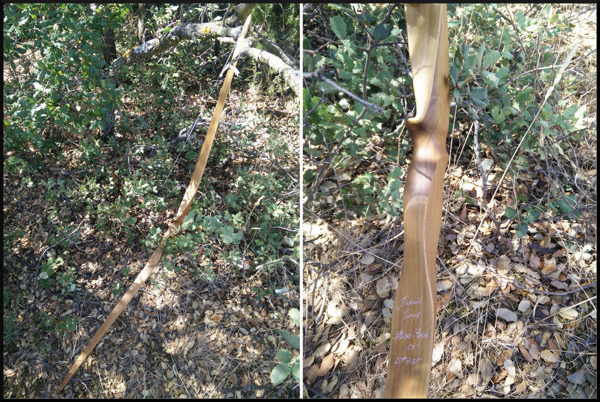 Angela tira con un Bearpaw Slick Stick de 25 libras que es una maravilla de arco. 58" de alto, perfil reflex-deflex, empuñadura high pistol grip, muy ligero y muy bonito con sus palas de bambú y su textura rugosa. Costó 278€ y no puedes equivocarte con ese arco.