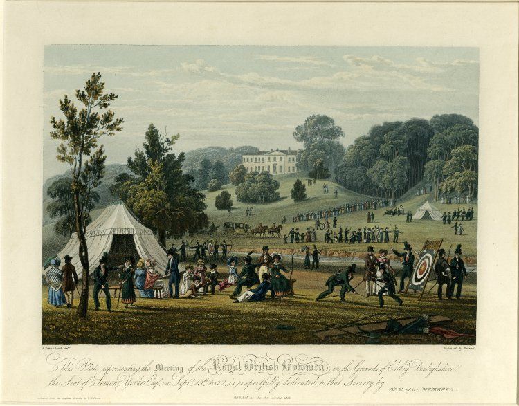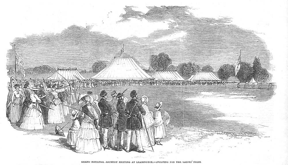 Aunque la reina Victoria ayudase a dar impulso, lo cierto es que para la década de los 30 el tiro con arco ya era un deporte muy popular entre las clases altas británicas, tanto para hombres como para mujeres. Esto continuó así en las décadas sucesivas, constatándose un aumento de la demanda de arcos y de constructores para satisfacerla, además de la aparición de la clubs y sociedades. Se sabe gracias a un libro de 1864, The Archer’s Register, que hacia mediados de siglo había 146 sociedades en Inglaterra y Gales, 22 en Irlanda y 9 en Escocia, las cuales podían alcanzar los 100 o 200 miembros en algunos casos. Con esta popularidad, una reunión de arqueros a iniciativa de William Gray decidió en 1844 instituir el Grand National Archery Meeting (GNAM). Se trataba de un torneo de arqueros anual a nivel nacional, que seguiría las reglas establecidas por el príncipe George a finales del siglo pasado. Con 74 arqueros participantes, el primer encuentro se consideró un éxito. Para el segundo ya se decidió que las mujeres debían participar también, siendo 11 las inscritas. Y, aunque en los años inmediatamente posteriores las inscritas no llegaron a la decena, en los 50 ya se vieron proporciones más parecidas de hombres/mujeres, en torno a 90/70 de cada.