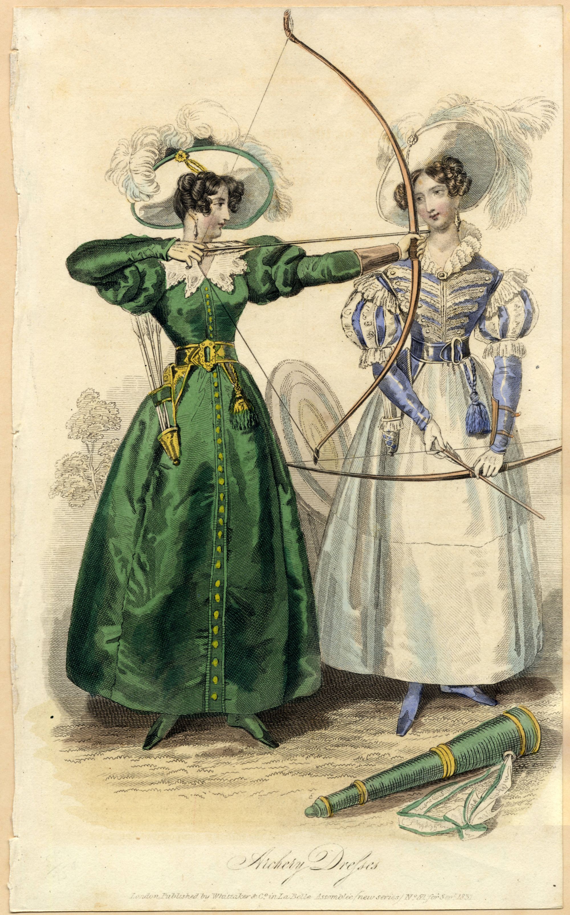 Archery Fashions for Ladies: 1831-1841 https://mrsdaffodildigresses.wordpress.com/2015/08/26/archery-fashions-for-ladies-1831-1841/