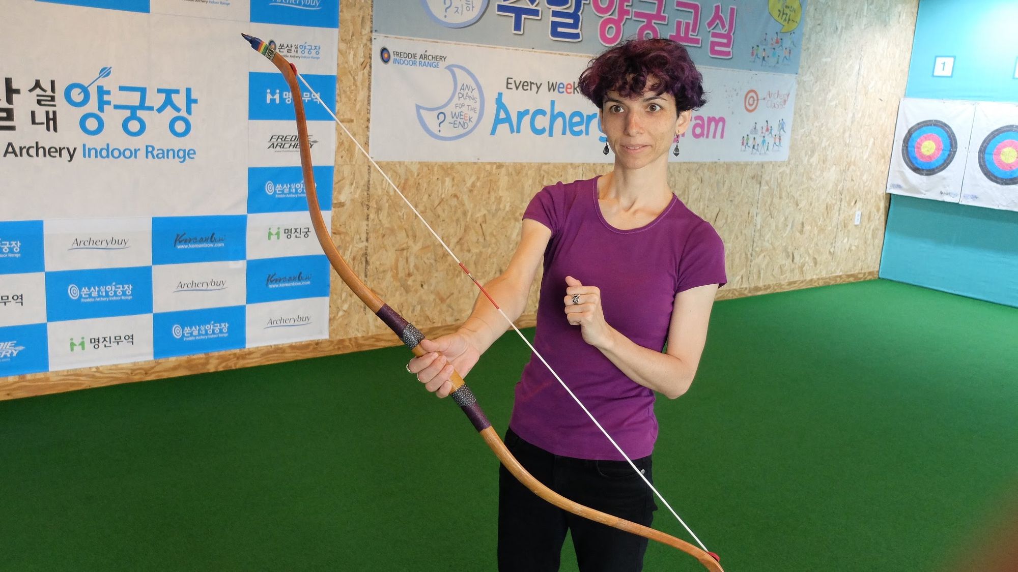 Sin duda, es un arco especial. No tiene el tendón ni el cuerno, de eso Angela es muy consciente, pero tiene todo lo que querrías de un arco coreano tradicional para simplemente disfrutar de él y no preocuparte por un mantenimiento muy exigente (aparte de un precio muy diferente). Estos arcos son muy apreciados en Corea porque responden a la (auto)exigencia de los coreanos de tener el mejor material para buscar en todo momento la superación personal. Se verán muy a menudo en los campeonatos junto con flechas de carbono porque es lo que tiene sentido desde el punto de vista competitivo pero intuyo que Angela querrá tener también de madera dependiendo de la técnica que emplee.