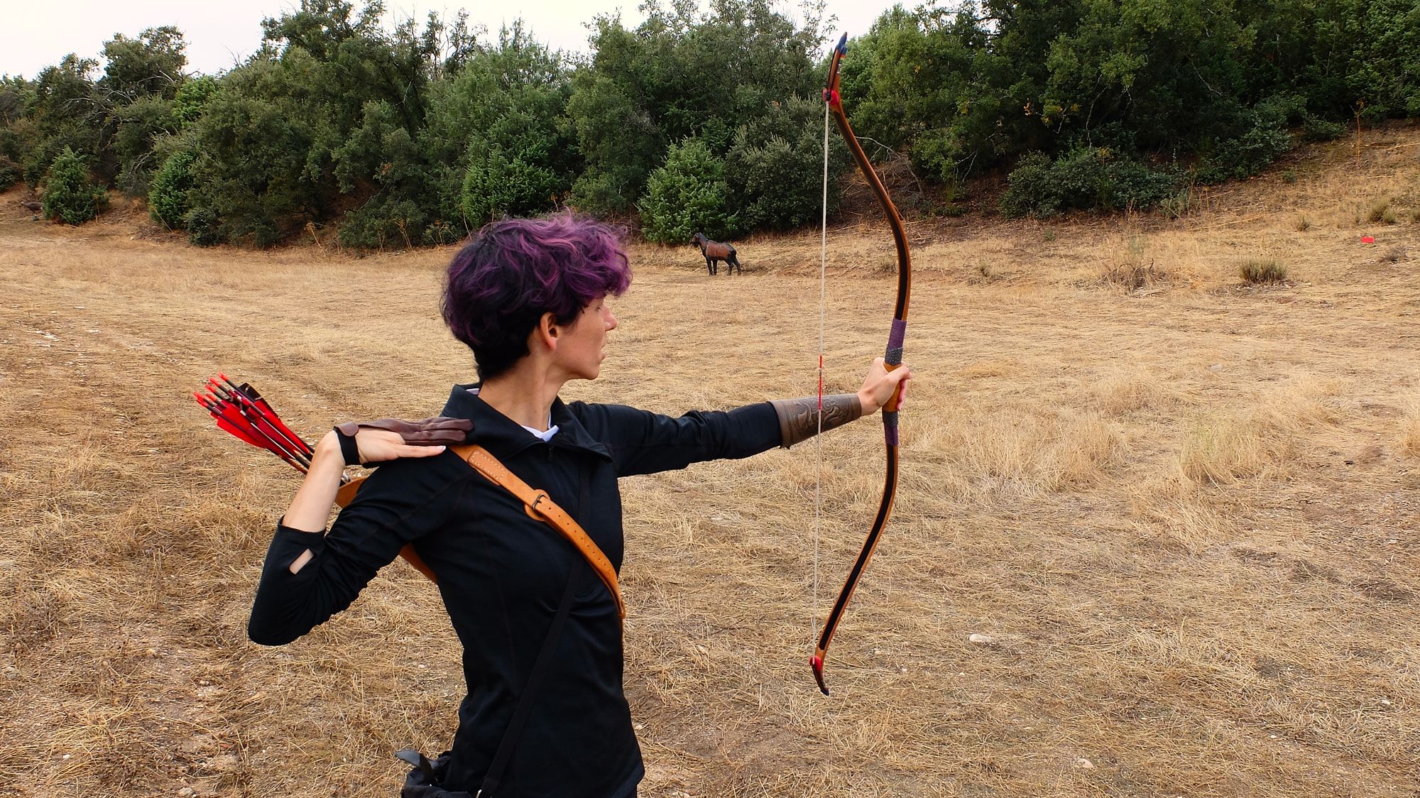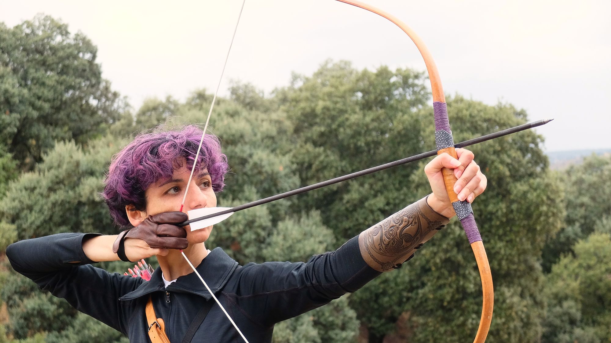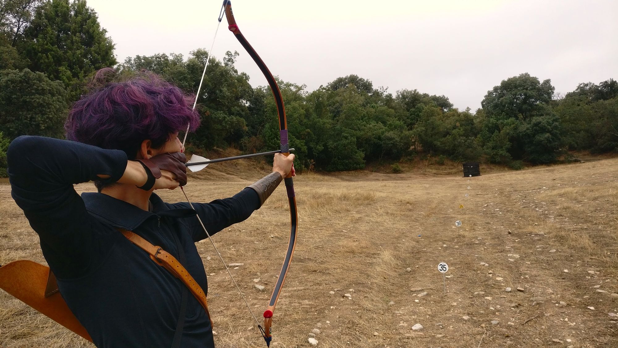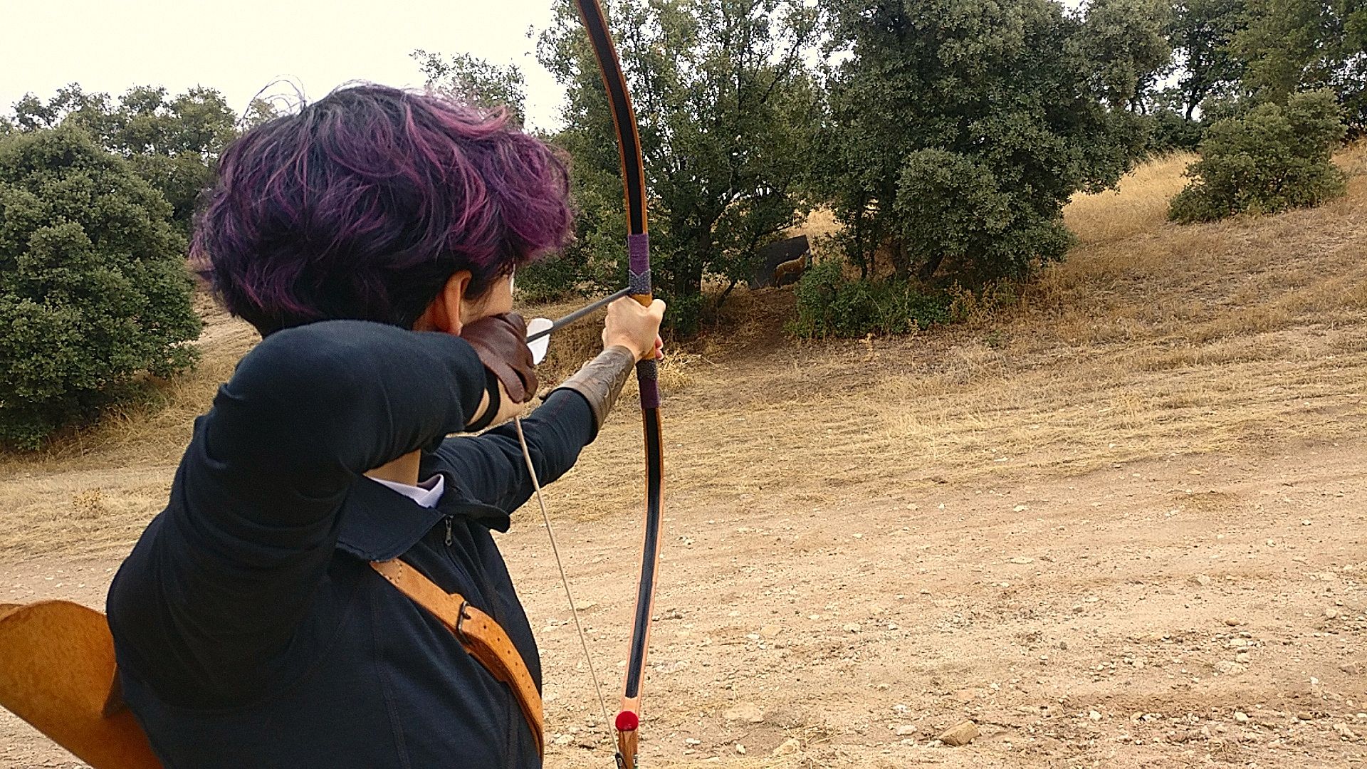 Naturalmente, ella es consciente de que tendrá que aprender a tirar al estilo coreano con anillo de pulgar para sacarle el máximo partido a este arco pero para unas primeras impresiones le resultaba más que suficiente emplear el agarre mediterráneo y anclaje en la comisura del labio.