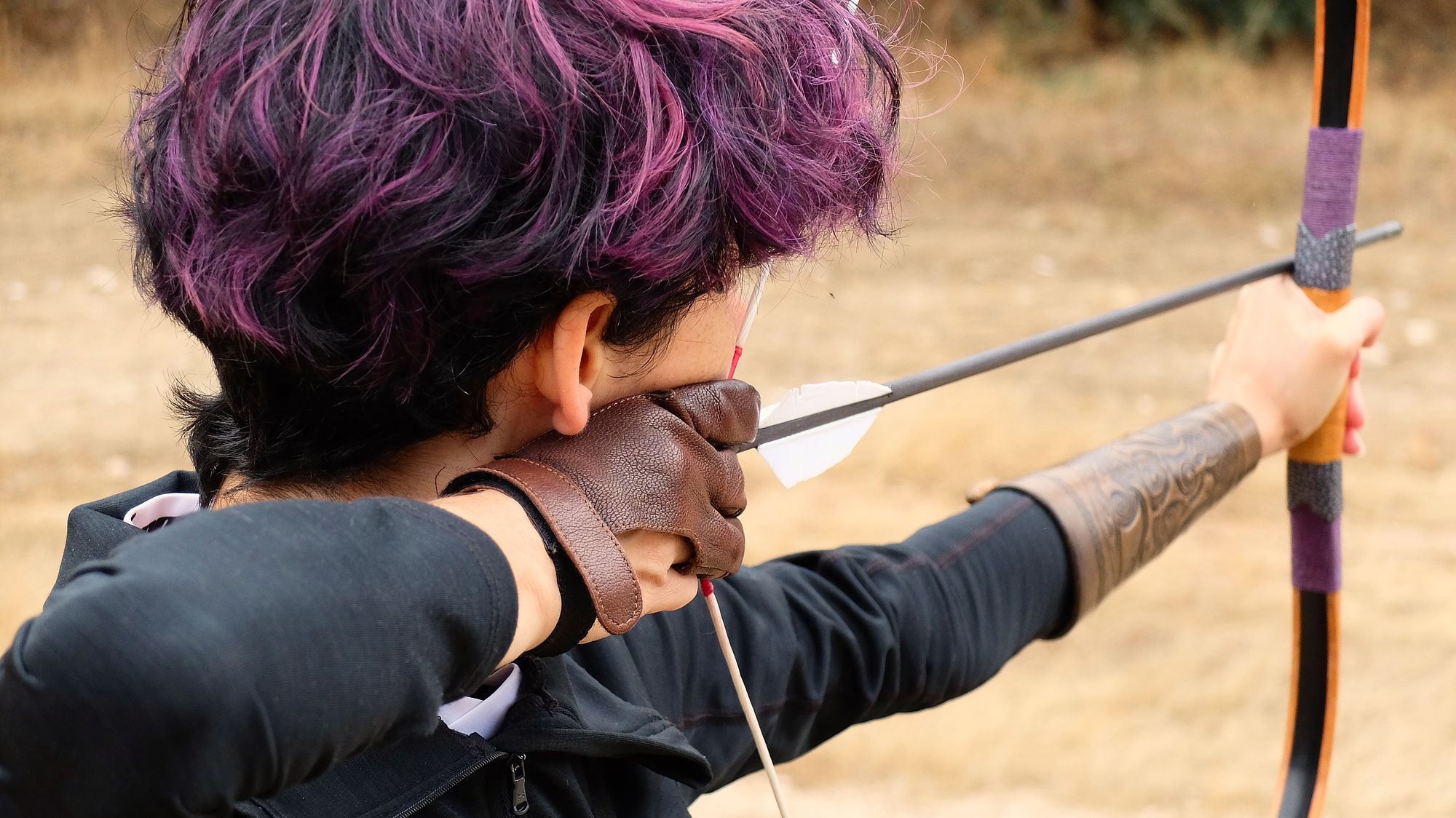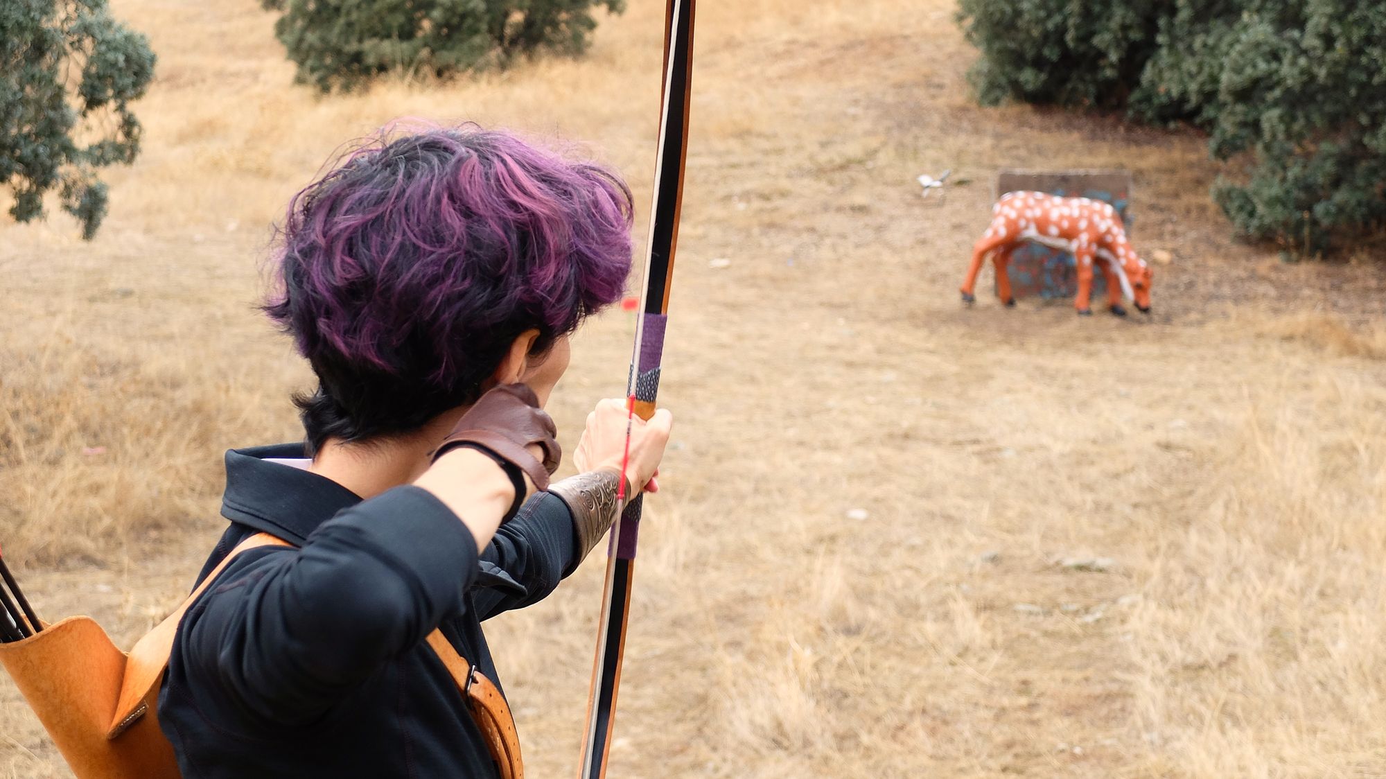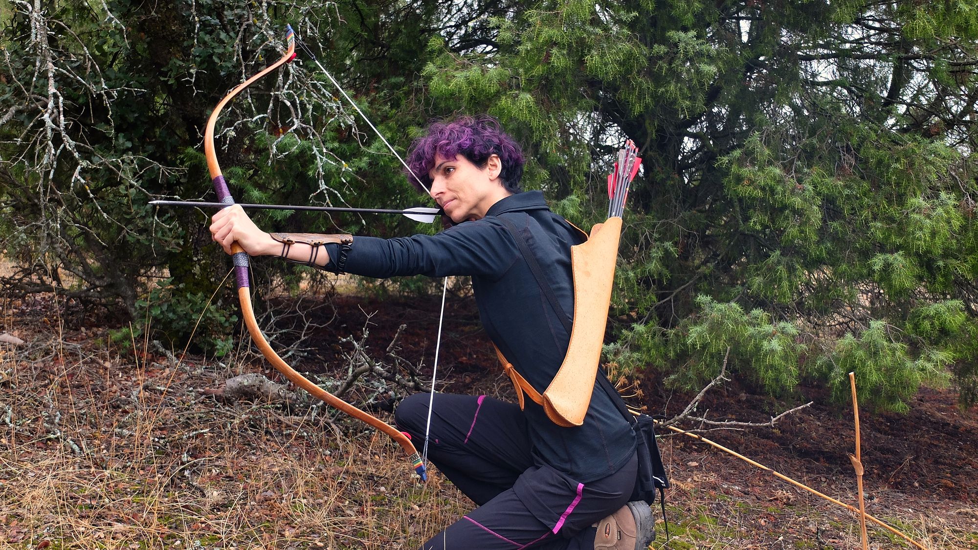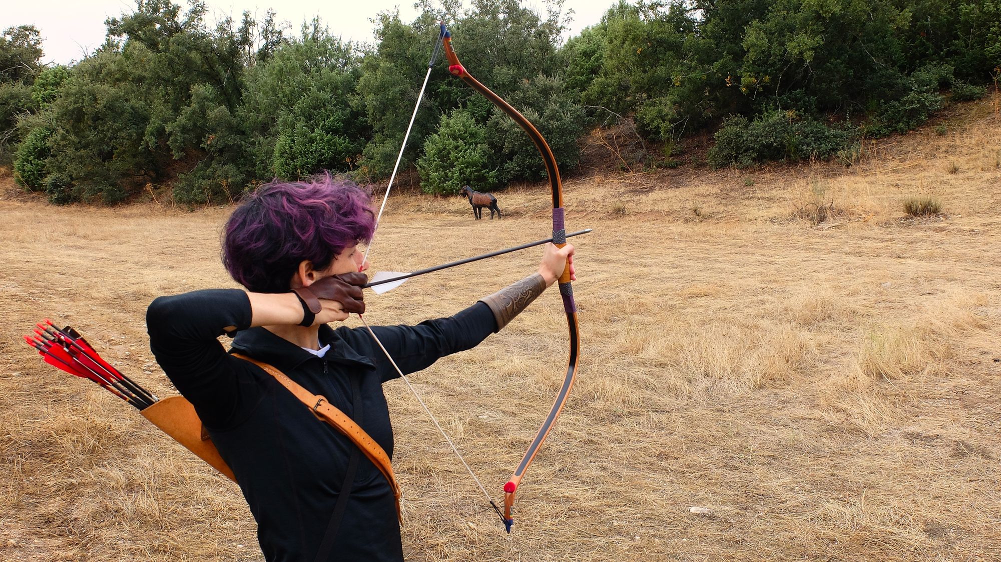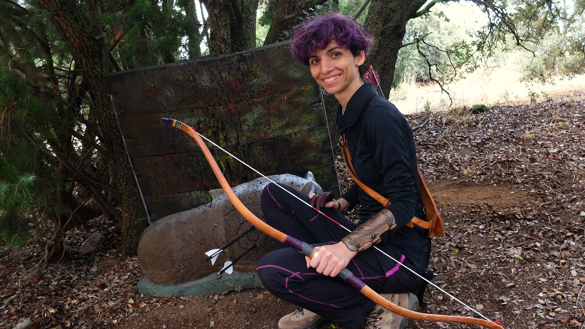 Naturalmente, ella es consciente de que tendrá que aprender a tirar al estilo coreano con anillo de pulgar para sacarle el máximo partido a este arco pero para unas primeras impresiones le resultaba más que suficiente emplear el agarre mediterráneo y anclaje en la comisura del labio.
