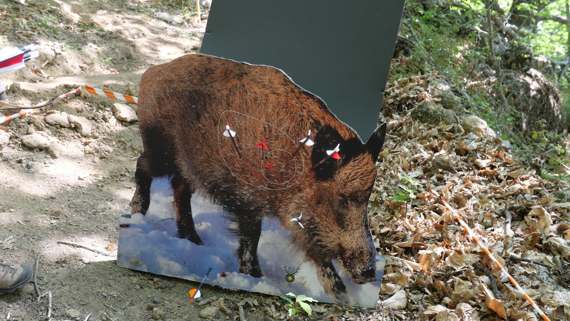 Tras calentar en un conjunto de dianas más machacadas perfectas para este uso en donde estuvimos muy cómodos tirando los cuatro a varias distancias, nos introdujimos decididos en el recorrido que en su primera parte tenía una pendiente a salvar para luego cambiar a nivel y finalmente volver bajando.