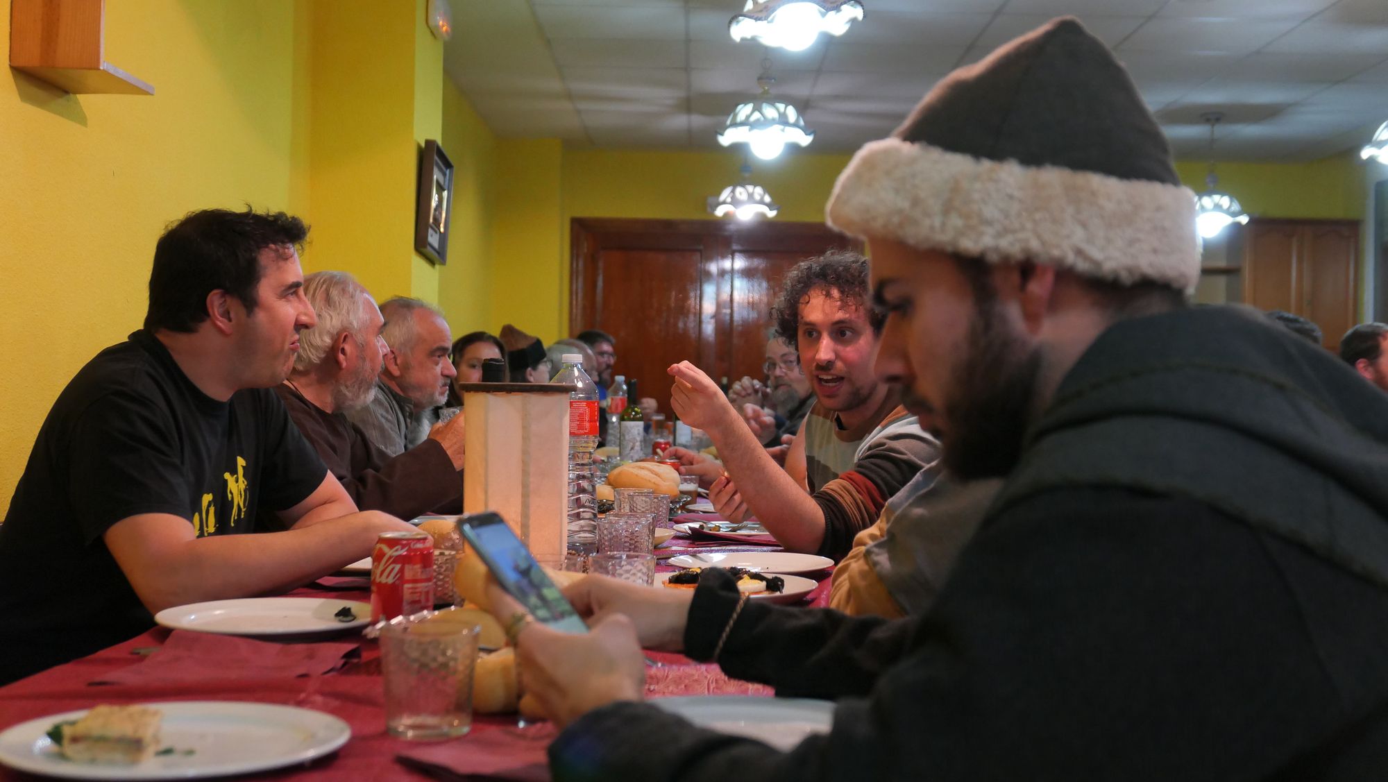 En esta comida del sábado ya sí que estábamos todos y el comedor apenas tenía una mesa libre para algunos apechusques y cajas de la organización. Si no recuerdo mal, hubo cocido completo, que estaba bastante rico (la sopa y el chorizo me gustaron especialmente).