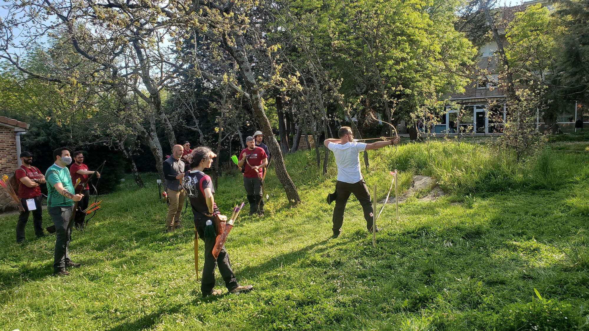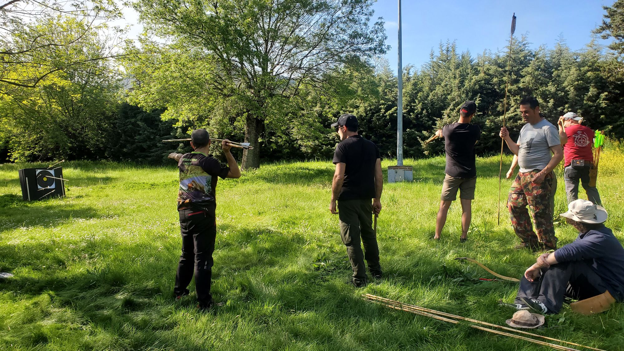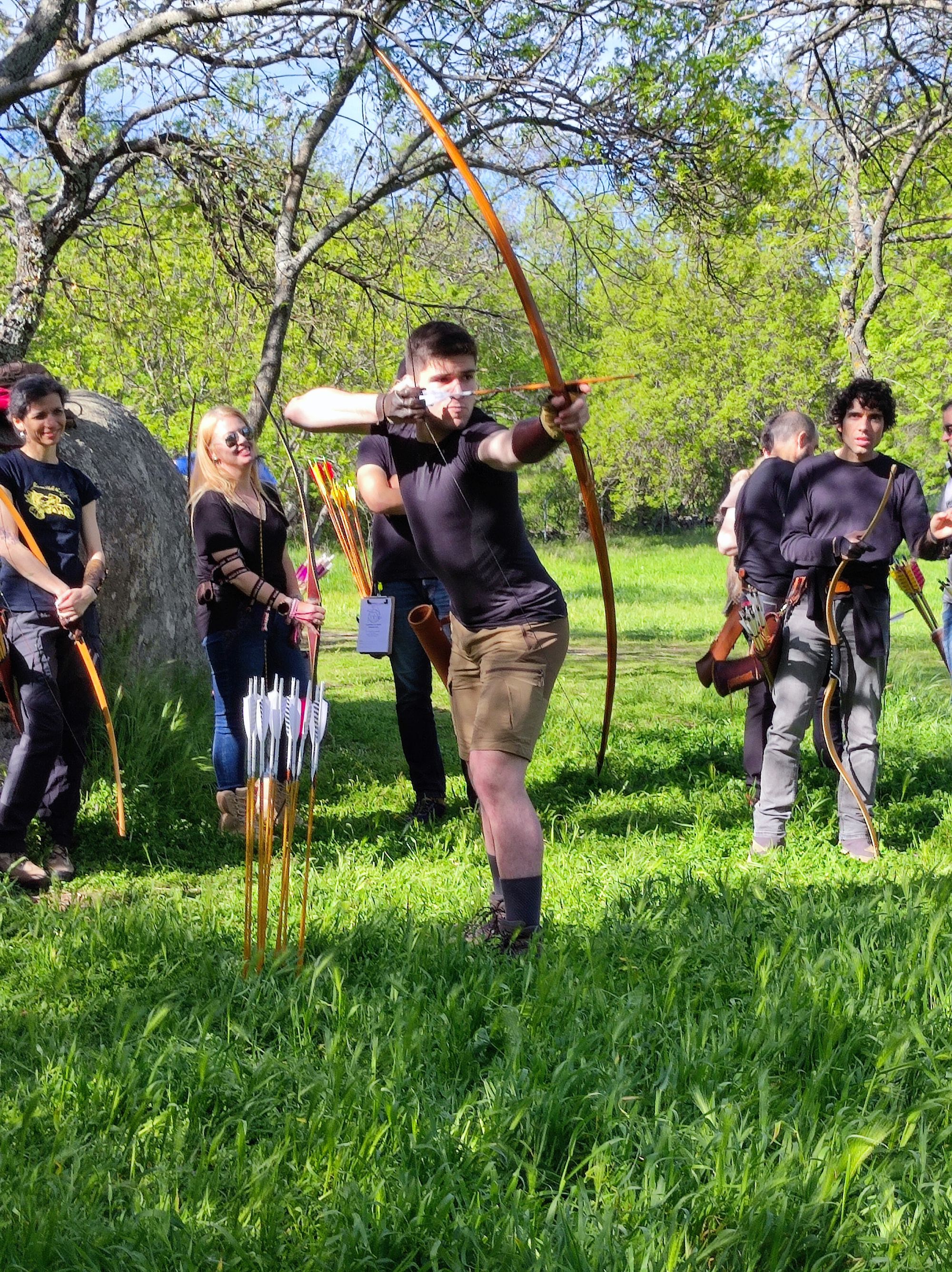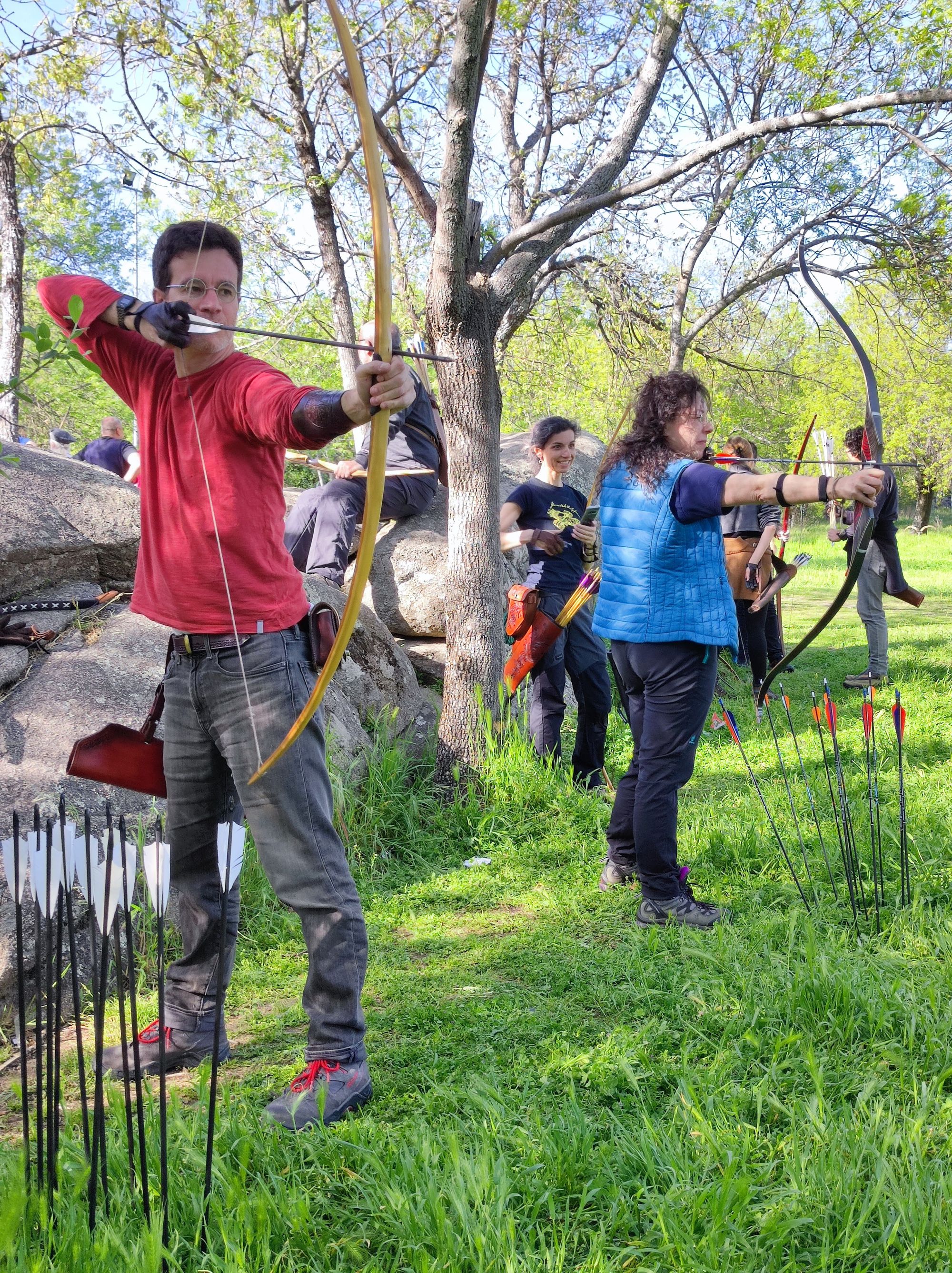 Finalmente, preparamos tres grupos para las tres pruebas y cada 40 min el grupo rotaba de prueba. El primer grupo de cada prueba establecía el número de rondas y flechas a tirar por el resto.