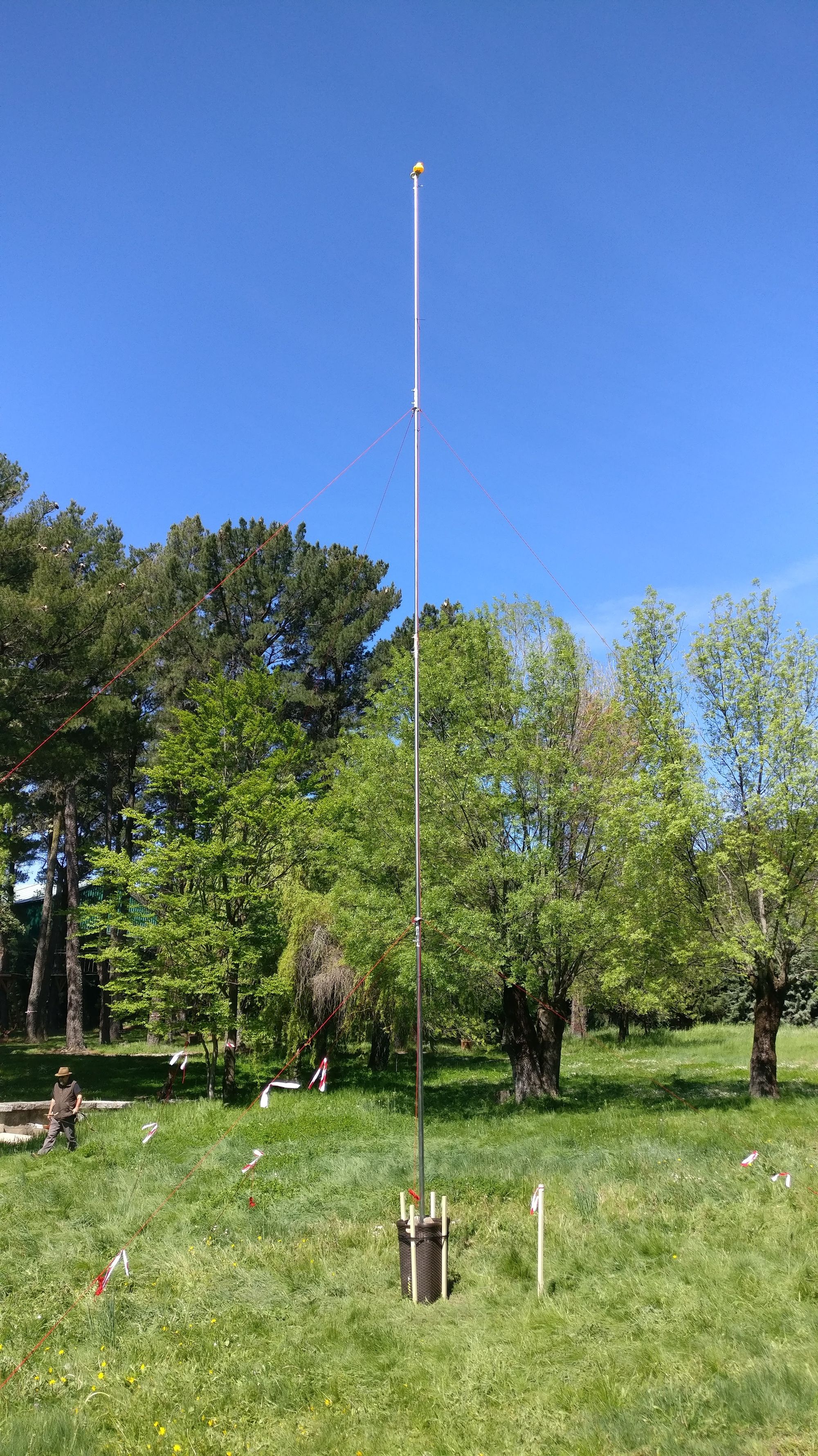 Dejo para el final otra de las pruebas que había despertado mayor interés en la encuesta previa que enviamos a los asistentes. Un mástil telescópico de unos 12m sobre el que se había ubicado un mecanismo que sostenía un patito de goma. El reto consistía en golpear con una flecha flu-flu blunt la base del mecanismo de forma que el patito se quedara de espaldas mirando al cielo.