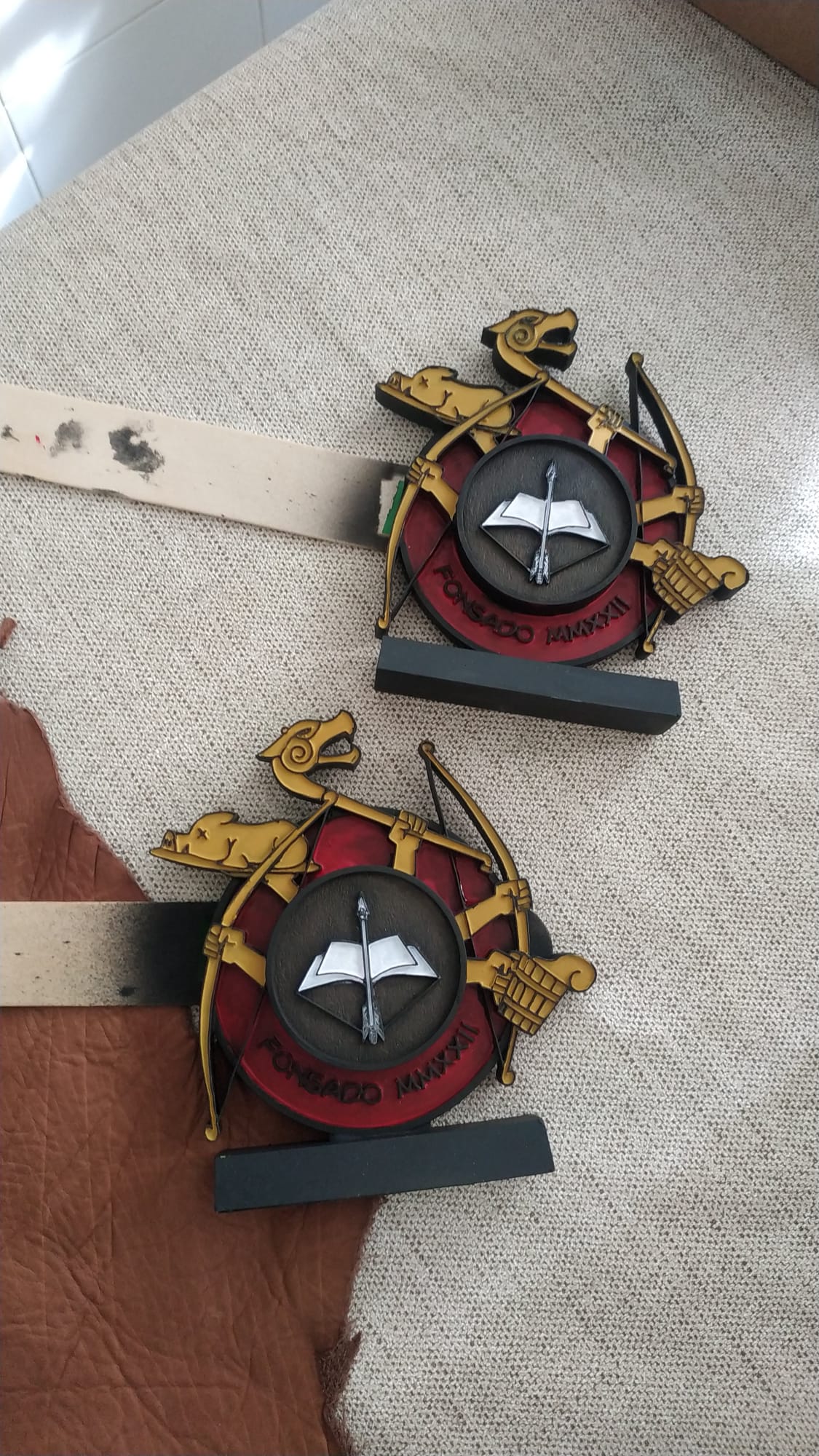 Aunque El Fonsado no tiene un enfoque de competición, sí quisimos obsequiar a los ganadores de las diferentes categorías con un trofeo impreso en 3D y pintado a mano por Jorge, hijo de María y Jorge, de SIAH. La verdad es que hubo bastante nivel en general pero se los llevaron bien merecidos Jonathan Andrada, Luis Angel Bretón, Santiago Marín y Víctor Majarrón. A continuación repetimos fórmula pero con otros motivos. "Al mejor atuendo en la Cena de Gala" que fue para Marisol, "Al asistente más valioso de El Fonsado" que fue para Raúl "12 flechas" (encontradas), Guti por su épica en el Popinjay, Angela por su victoria en el mono-chapa, Sergio, el portugués, por representar el espíritu de El Fonsado y, finalmente, una para la Companyia del Falcó, de Catalunya, por haberse dispuesto como sucesores de la Compañía del Dragón organizando El Fonsado del año próximo.
