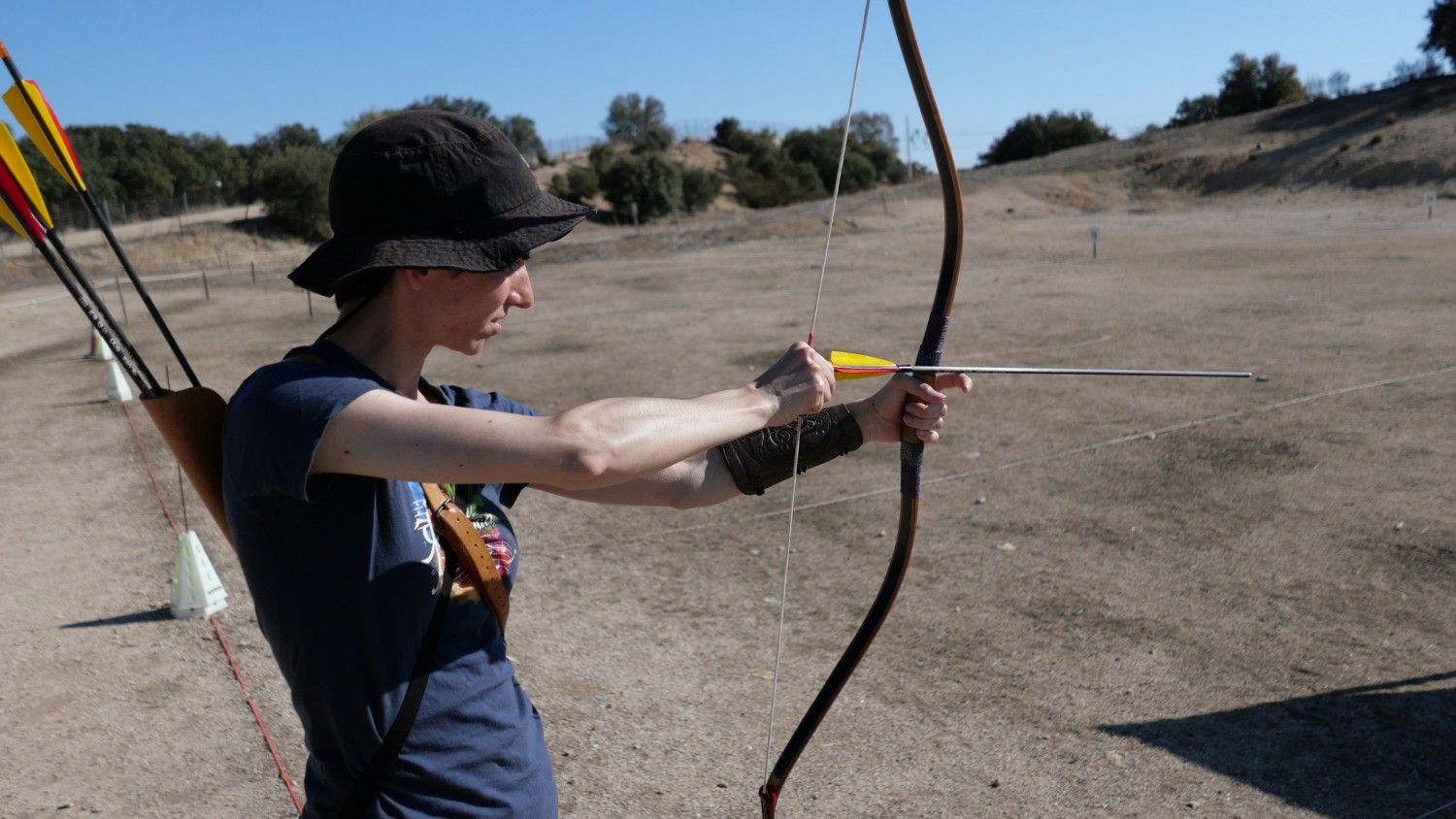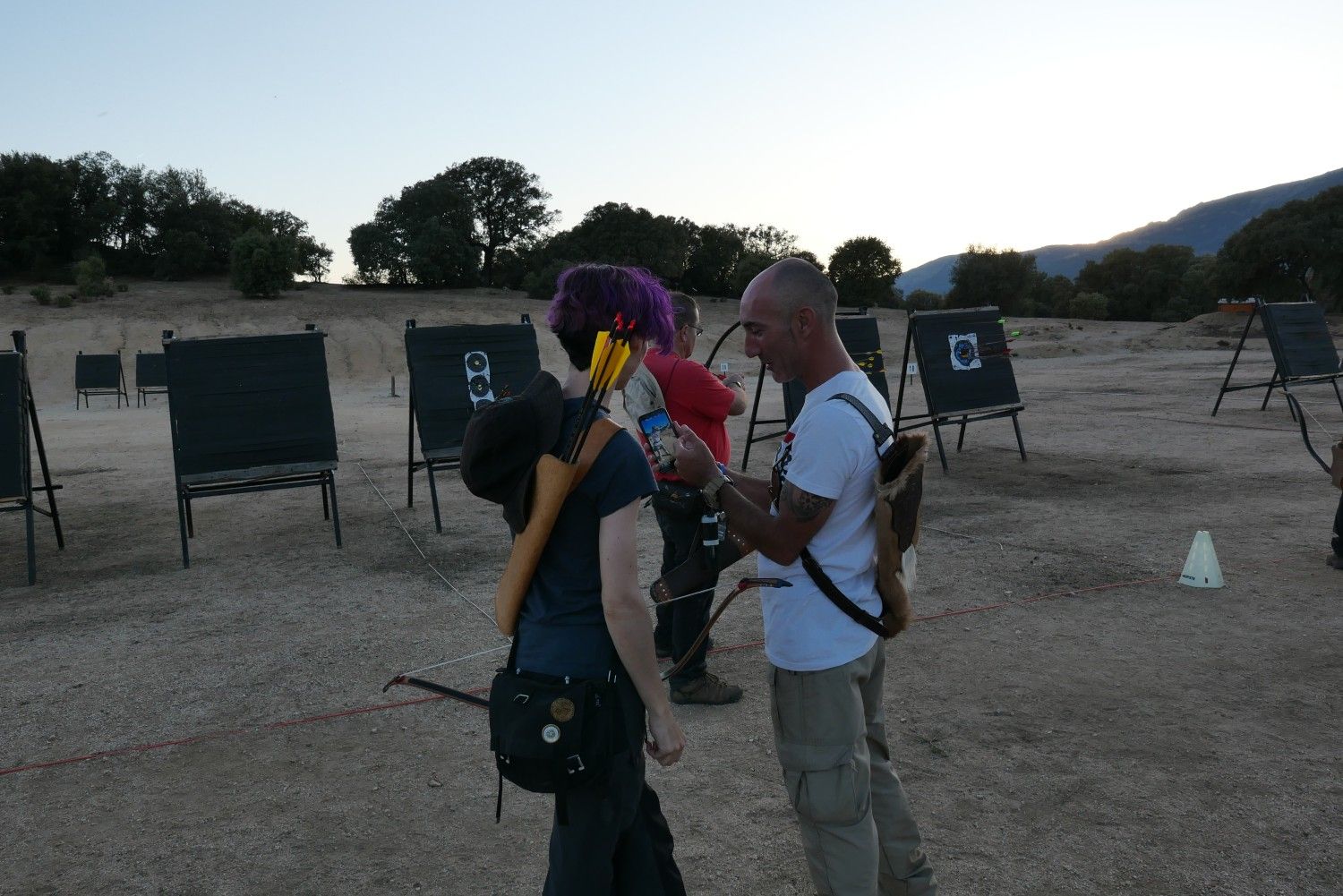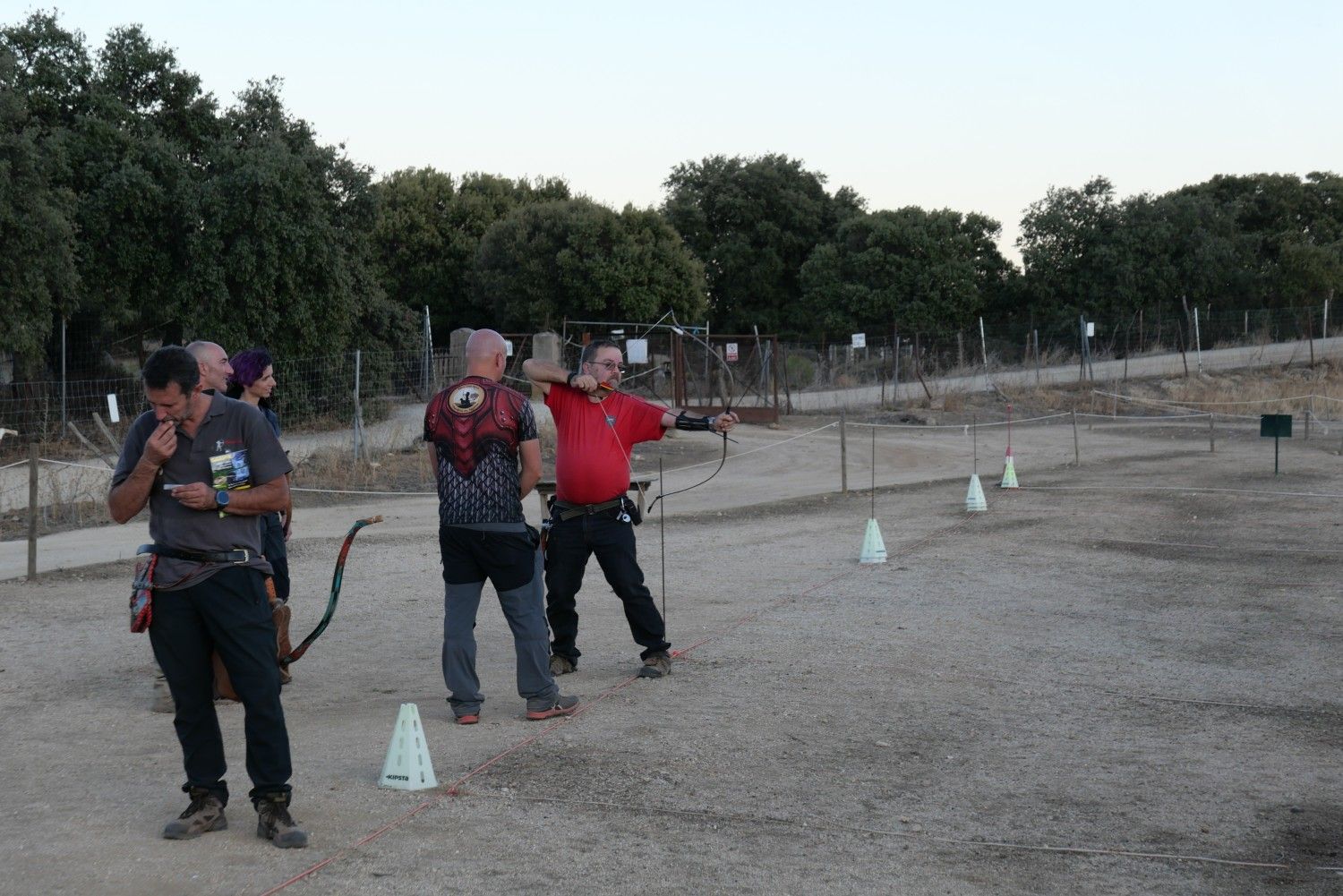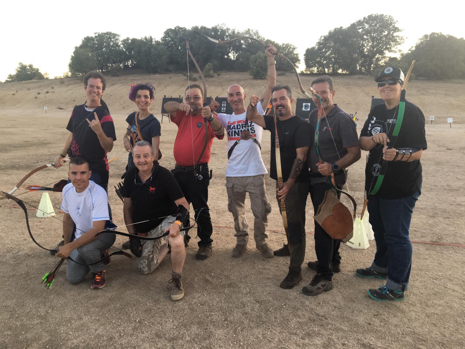 Aquí creo que nos vino bien tener experiencia como arqueros porque nos aprovechábamos de nuestra propiocepción, es decir, de nuestra capacidad para sentir cómo están nuestros músculos y las posiciones relativas del cuerpo. Era otra técnica y eso suponía hándicap, cierto, pero de alguna manera sabíamos si nuestro brazo de cuerda estaba alto o bajo, o si nuestra mano al producirse la suelta llegaba hasta la oreja o no. Álvaro, que de todos era más novato porque su experiencia se reducía a softcombat y un poco de recurvo, era el que a cambio tenía poca contaminación por técnica pero quizá menos apoyo de la comprensión del cuerpo en relación con el tiro con arco (aunque su conocimiento de tiro y de snowboard seguro que compensaba en otras facetas).