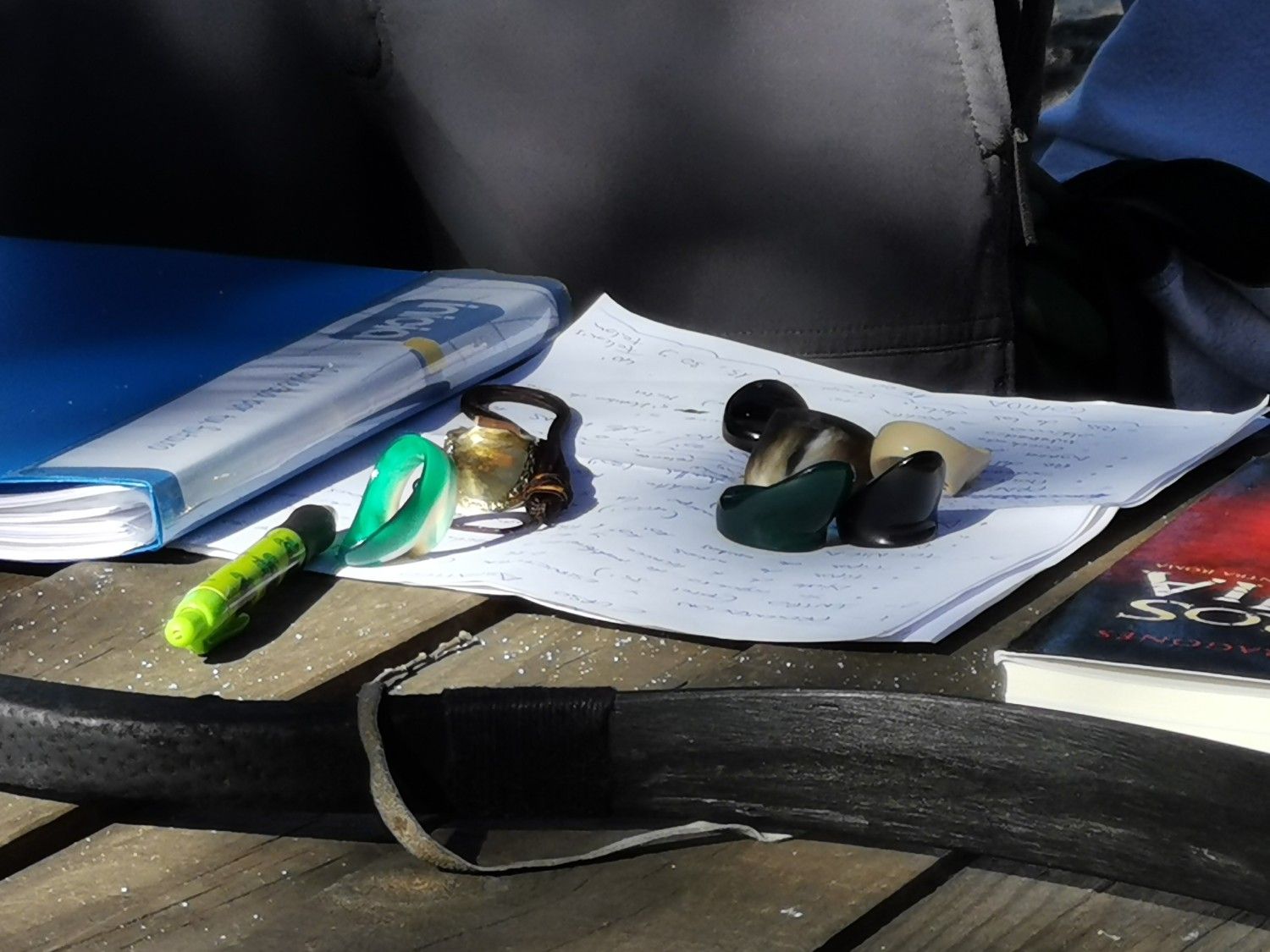El caso es que en general nos quedamos con la impresión de tener una multitud de opciones para elegir. Arcos, anillos, técnica, agarres... dependiendo de lo que quisiéramos hacer. Cierto es que para empezar Fer recomendaba una selección más o menos concreta de todos estos ingredientes pero nos dejaba la puerta abierta para nuestra apuesta personal. Fer insistió en esto apoyado por una pequeña colección de libros que expuso en la mesa y que entre sí se contradecían en algunos aspectos.