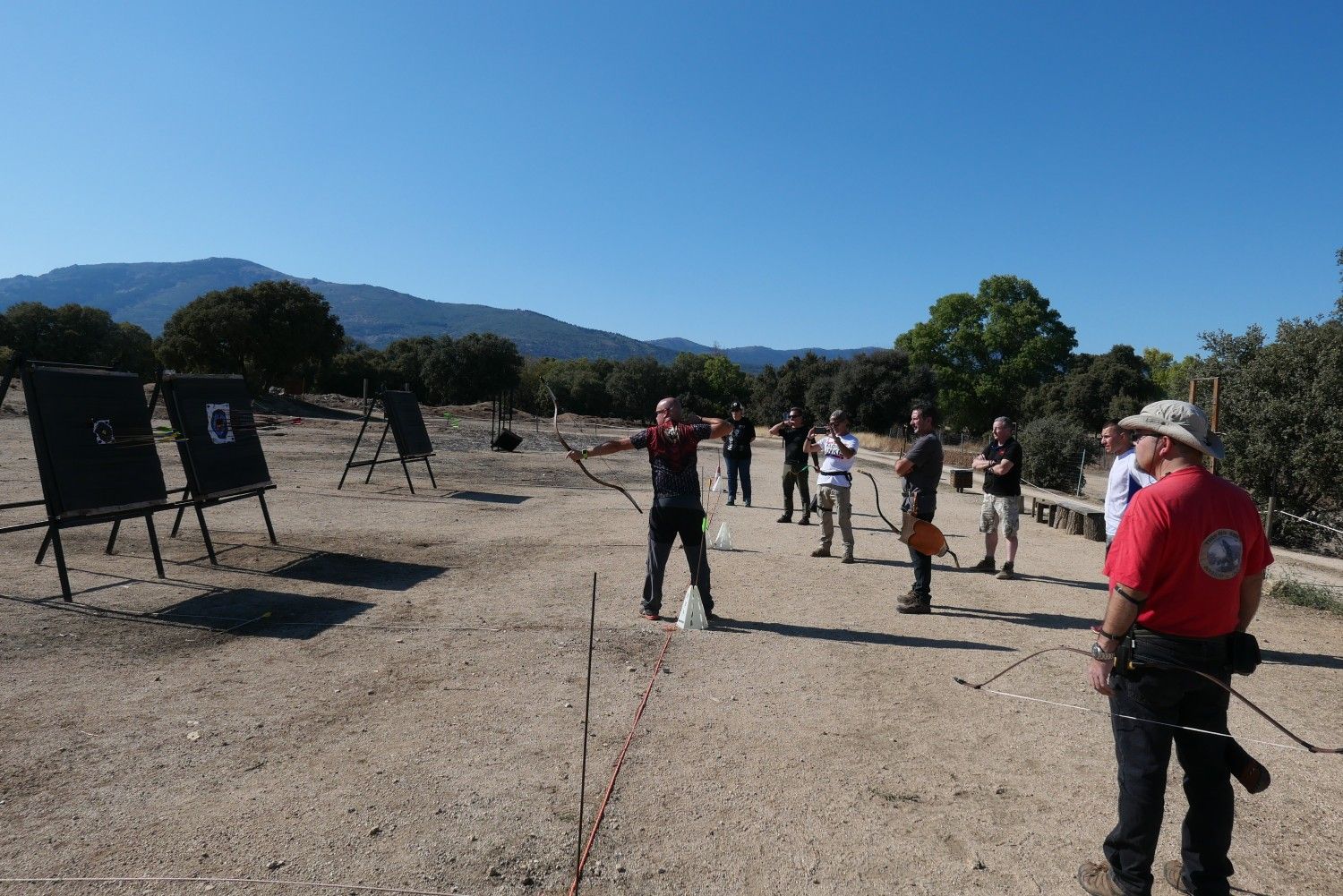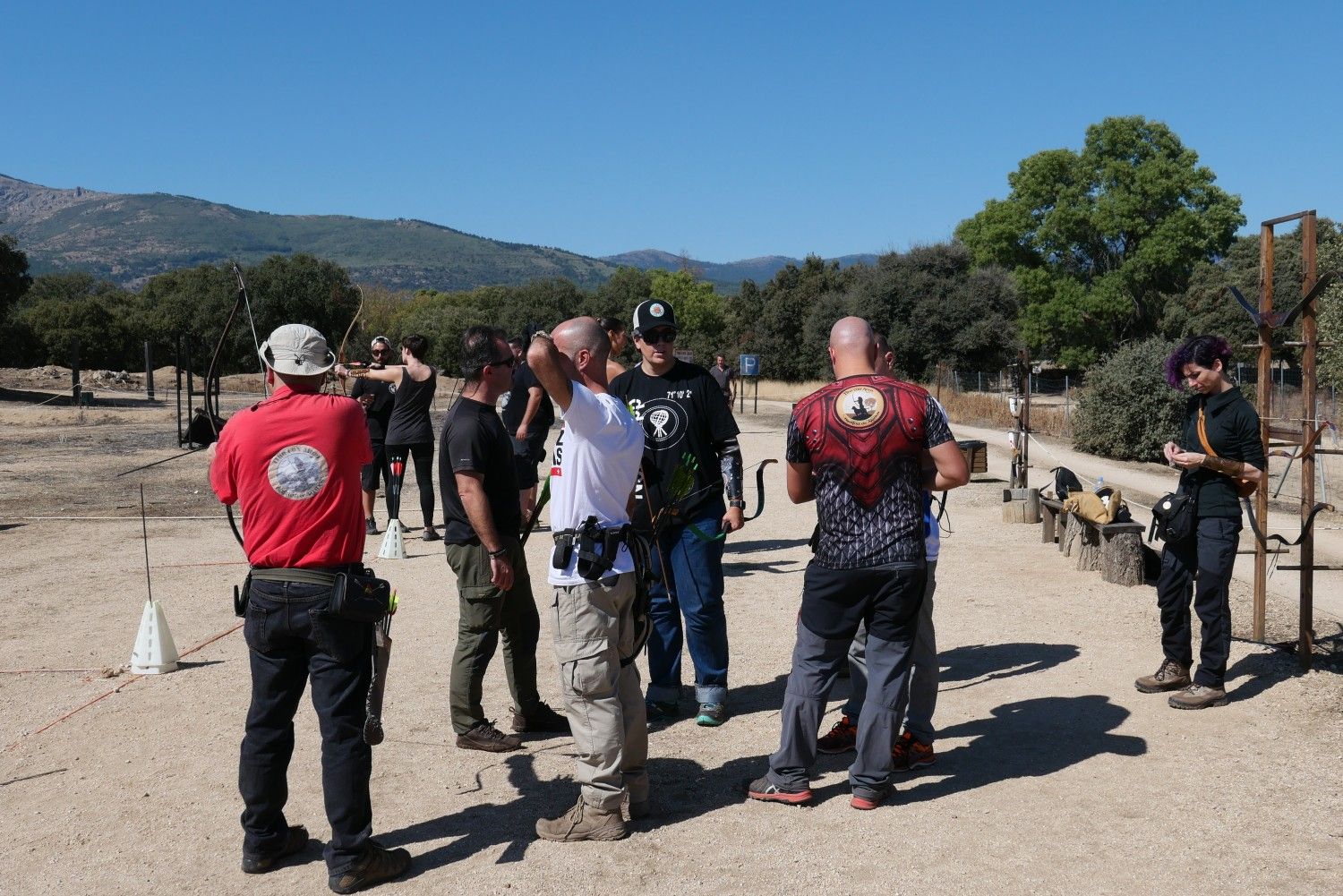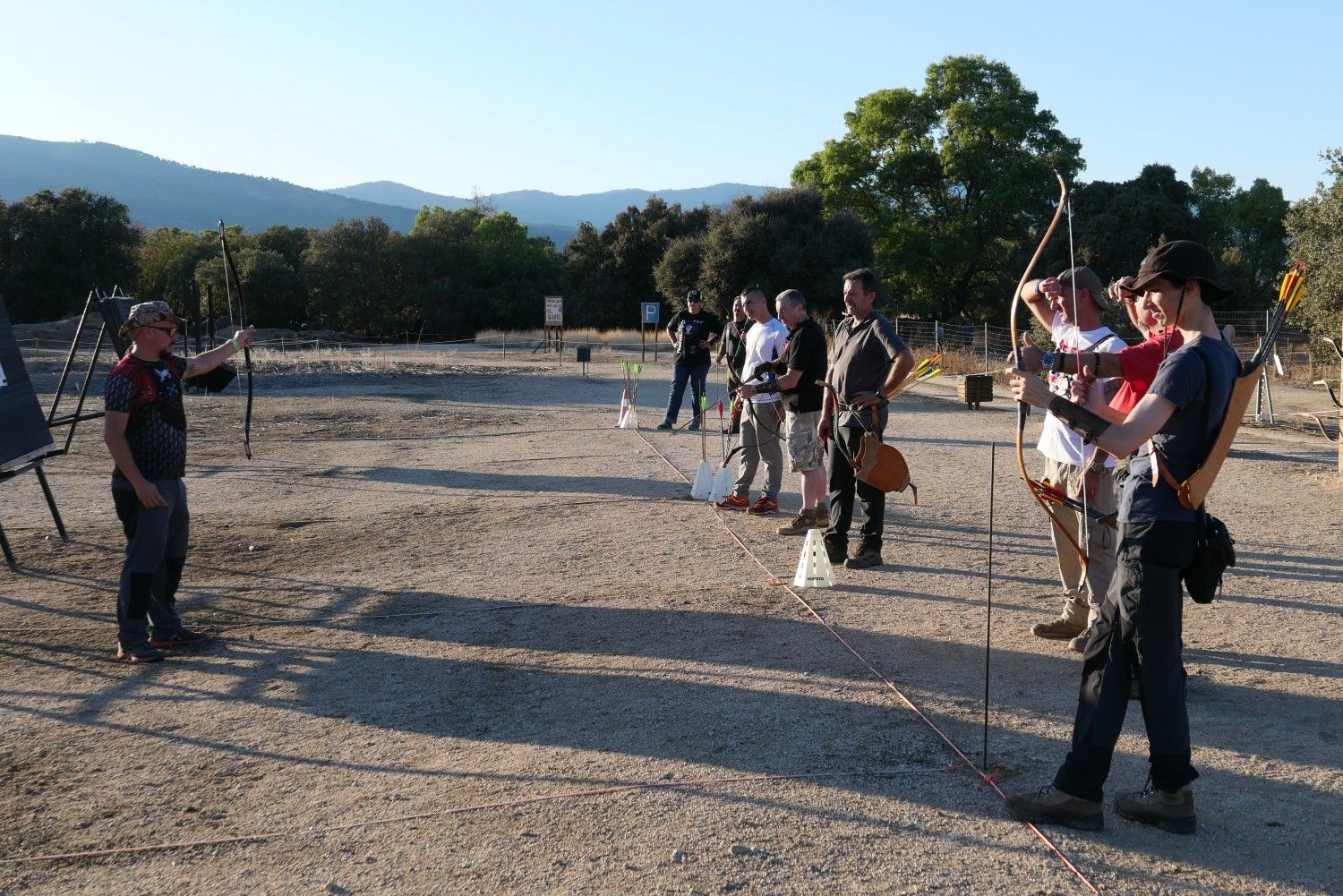 Este primer curso estaba diseñado como una jornada completa, de 9.30h a 20h, teórico-práctico, y para gente que ya tiramos habitualmente con arco independientemente de nuestro nivel (al estilo "mediterráneo"). Tras un cambio de fecha por lluvia, este domingo 29 de septiembre nos juntamos 9 personas en Bastión de Alanos para aprender todo lo posible y atajar en una aventura que a Fer le ha llevado en solitario muchísimo tiempo.