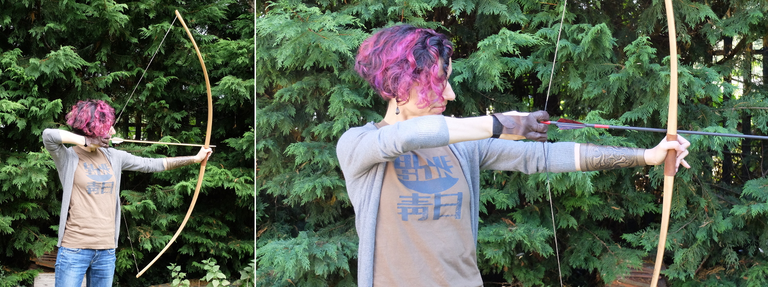 Angela buscaba un arco ante todo completamente diferente a su Bodnik Slick Stick (flatbow reflex-deflex de 58" con el que tira habitualmente carbono) y yo sabía que quería un longbow inglés.