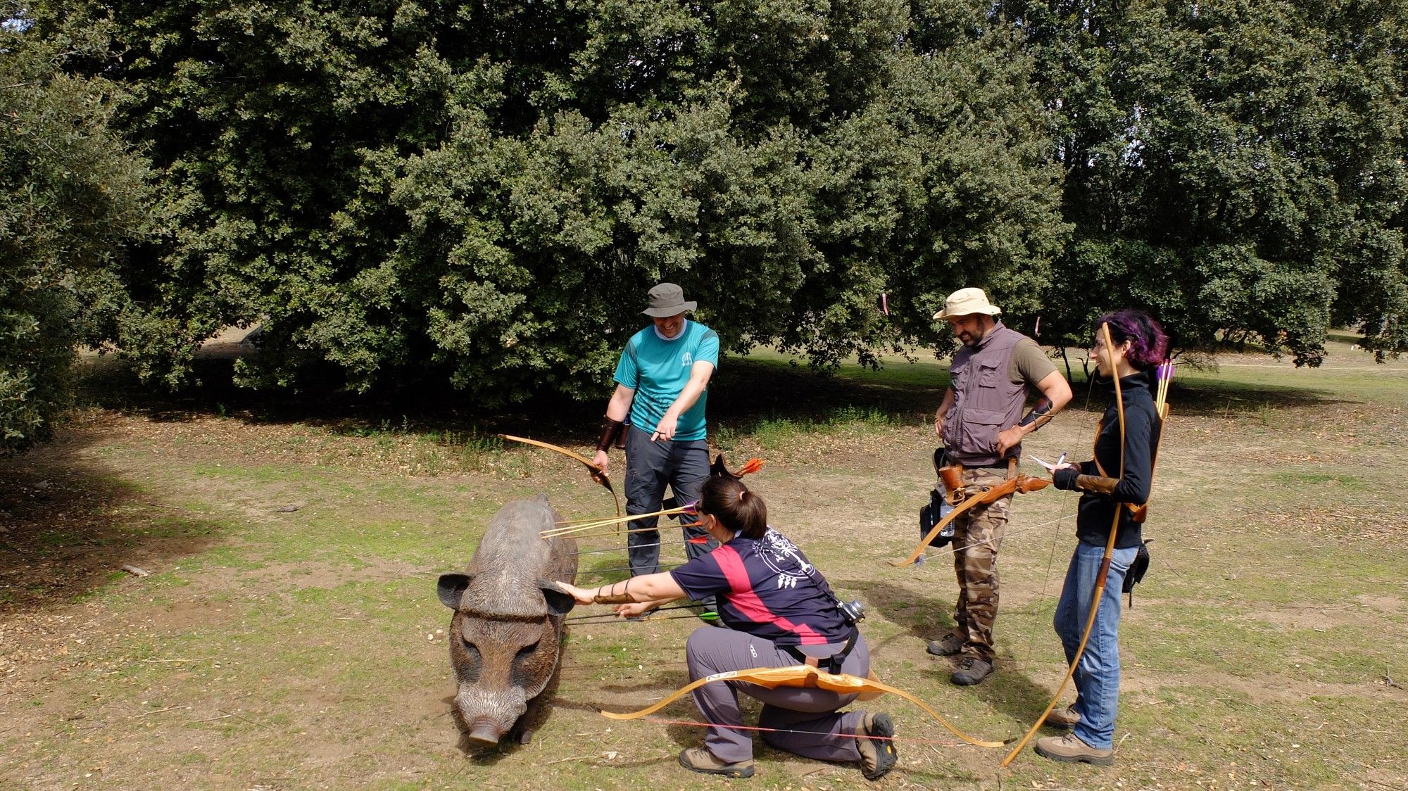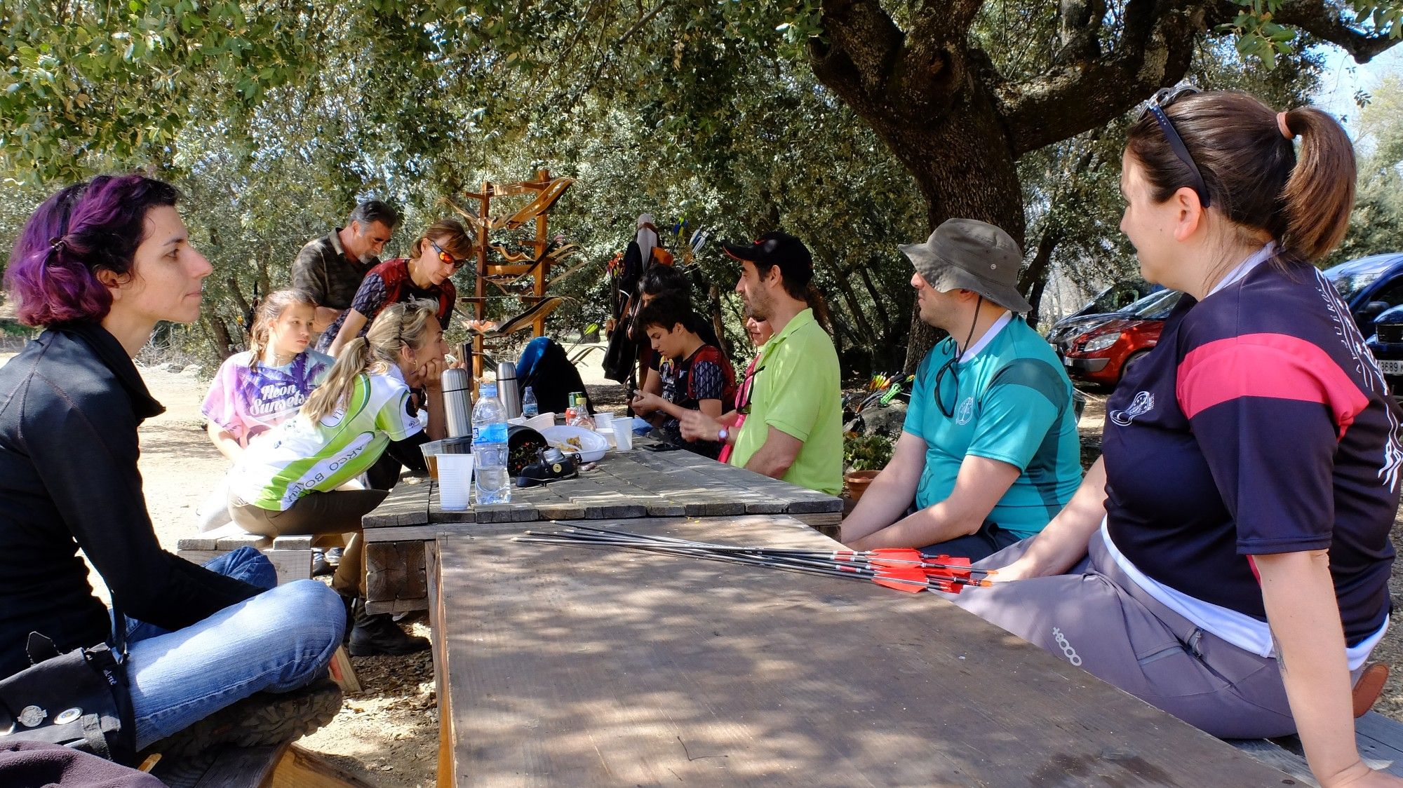 La última propuesta fue en la peña elevada que es de los puntos más elevados del campo de Bastión de Alanos, con un tirazo picado a una leona impresionante. Subidos a la roca y forzando nuestro tronco para inclinarlo adecuadamente tiramos las dos últimas flechas antes de encaminarnos al merendero y colmar nuestros platos de riquísima paella o de guiso de carne y patatas.