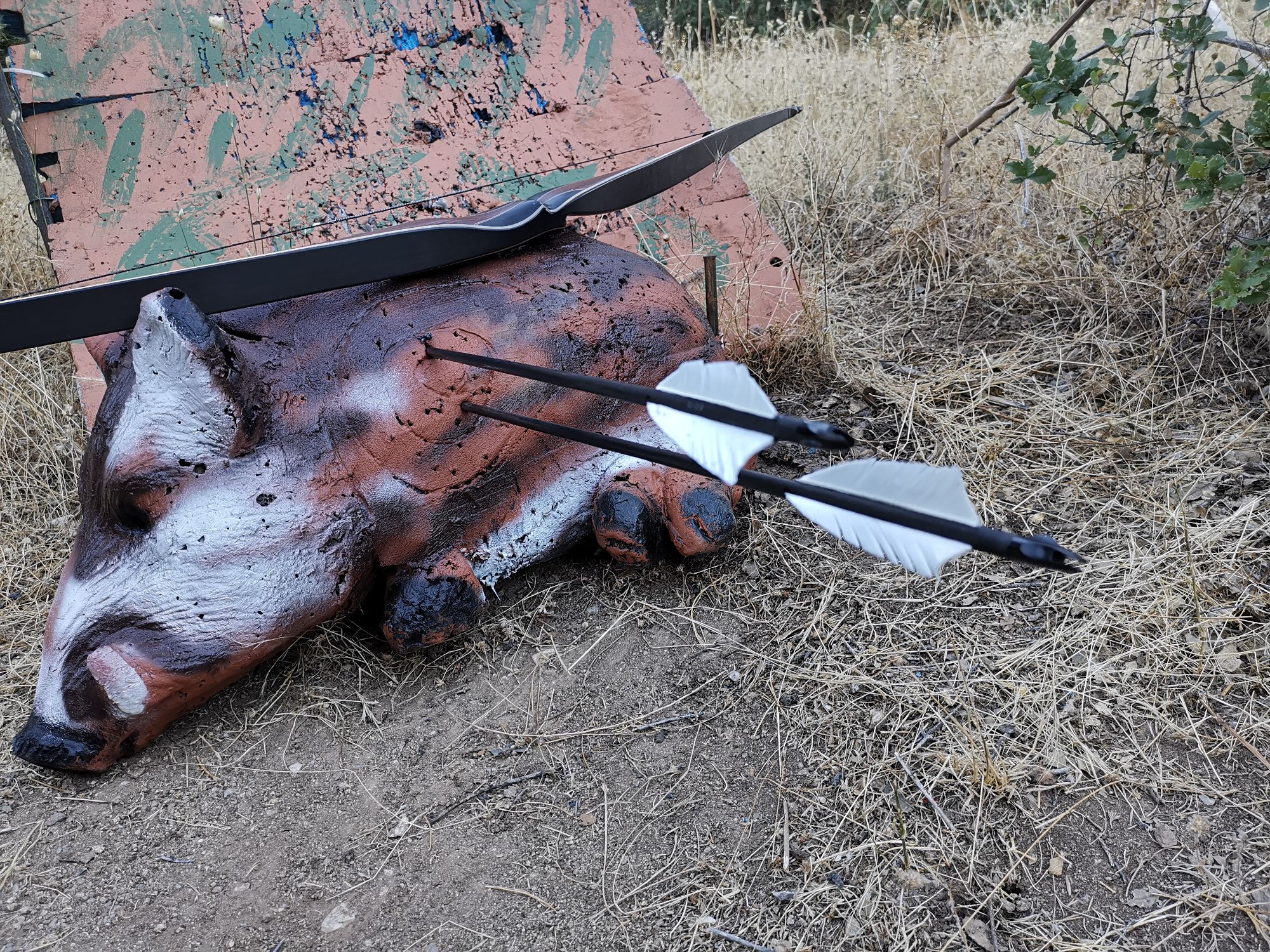 Me grabé una tarde que Arqueros de Madrid aprovechando unos parapetos para apoyar la cámara. Mi idea era mostrar que, efectivamente, el vuelo es recto, limpio y consistente y que, para todas esas visitas al campo, estas flechas tienen muchísimo que aportar. Obviamente, si en cada visita al campo llevamos un control preciso de la puntuación y simulamos una competición, nuestro estado psicológico tolerará mucho peor ir con flechas de madera que estén defectuosas. A estas personas les diría que se relajaran y que se olvidaran de los puntos al menos una de cada dos veces que vayan a tirar, pero eso es otra cuestión de la que hablaré en otro artículo.