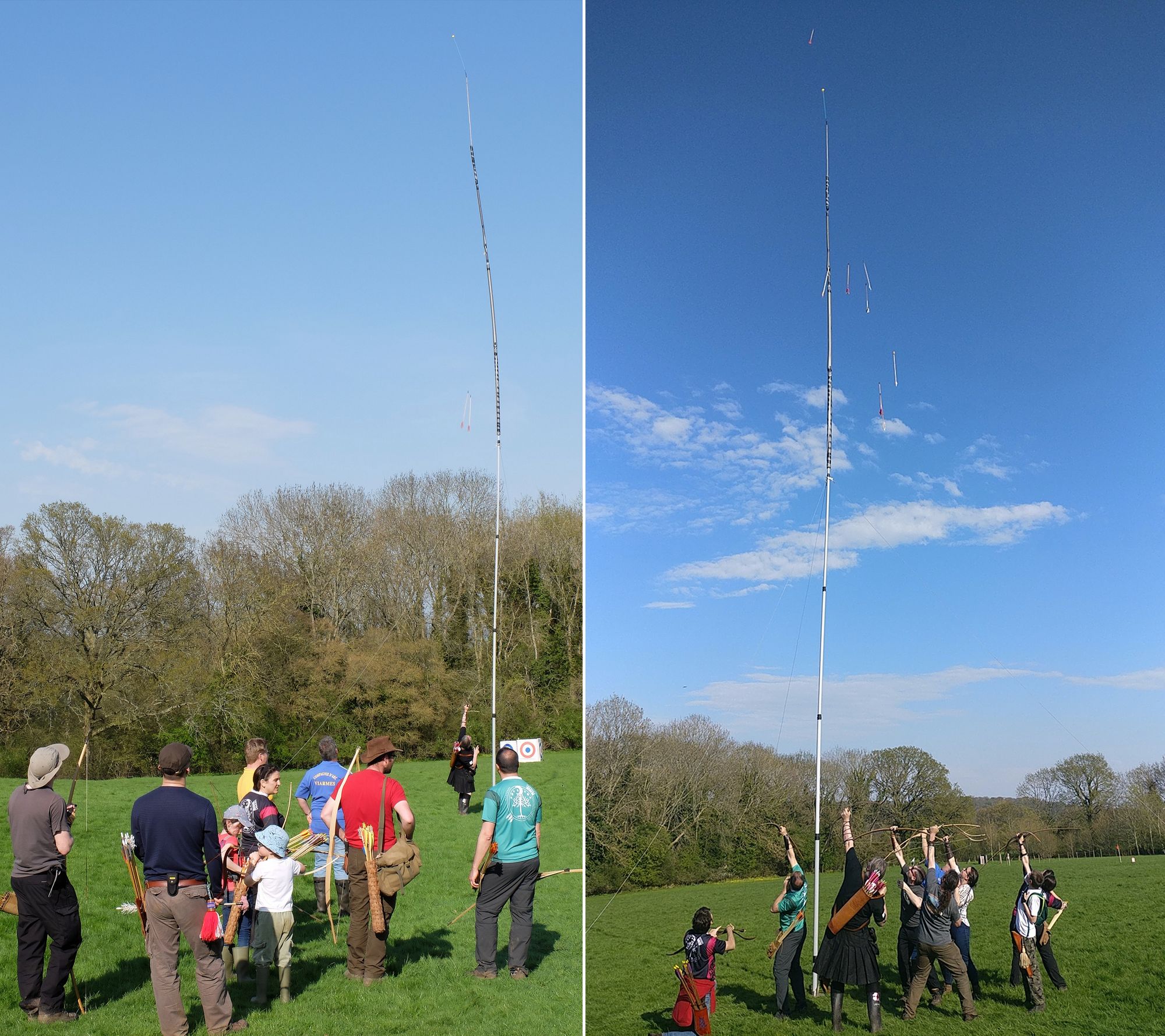 Uno de ellos es el tiro vertical o popinjay, con mucho arraigo en Francia y de origen relacionado con la arquería naval. A unos 20 metros de altura se coloca en un poste un pequeño patito de goma (o un pájaro de cerámica) y desde la base del palo se busca poder golpear y romper al pájaro.