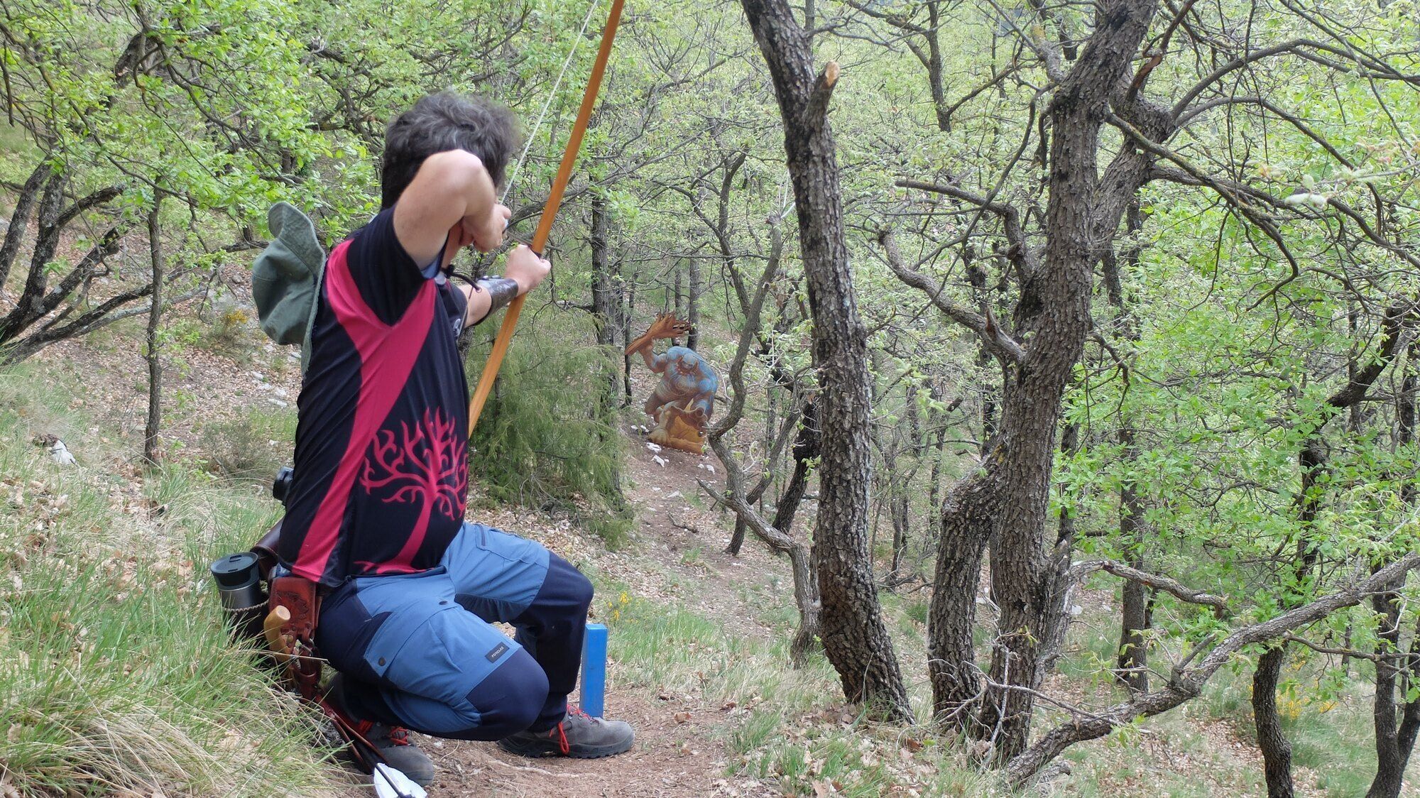 Nos encantó ver que Xavier se animó a coger su flatbow moderno, que reconocía tener un poco abandonado, y fue muy gracioso cómo cuando empecé a decir que grababa los tiros, pasó a meter unas flechazas que nos dejaron a Juan y a mí encandilados. Vamos, que si coincidís con Xavier en alguna tirada, simplemente decidle que vais a grabarle y que haga un buen papel para aprovechar el material audiovisual intacto.