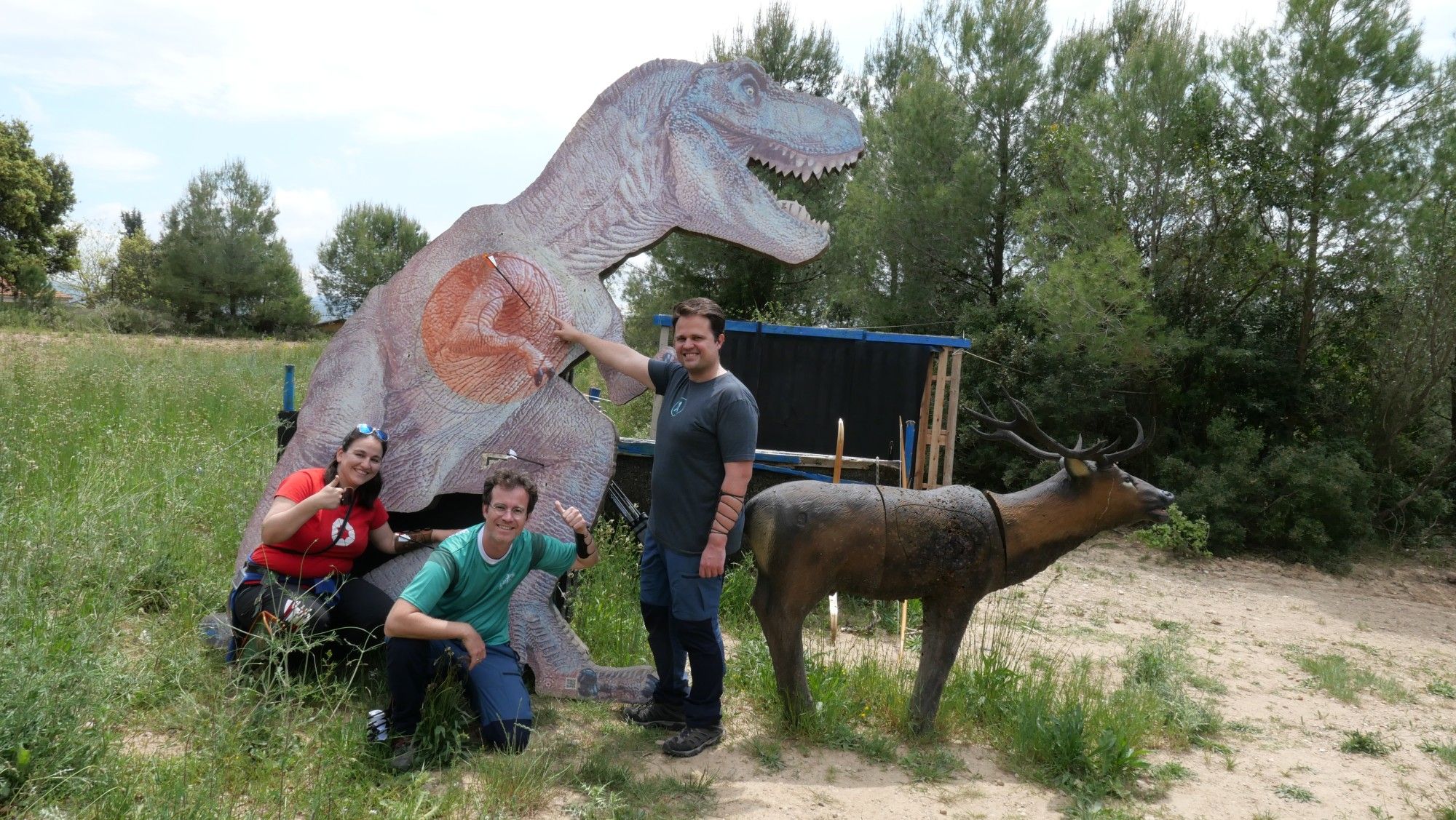 El sol castigaba sin piedad y cuando terminamos este recorrido supimos que no podríamos aguantar otro entero y que era mejor pensar en ir a comer anticipadamente donde Xavier había reservado. Como en cualquier caso teníamos que hacer tiempo, Xavier se marchó a hacer un recado y nosotros fuimos directos al famoso Tiranosaurio Rex de 3 metros de Archer Targets en el segundo recorrido al que tiramos desde el camino (¿70m? siempre en la línea de seguridad) y luego en su piqueta correspondiente. Fue un gran colofón a una visita al club Arqueros de Rubí que nos dejó muy buenas sensaciones.
