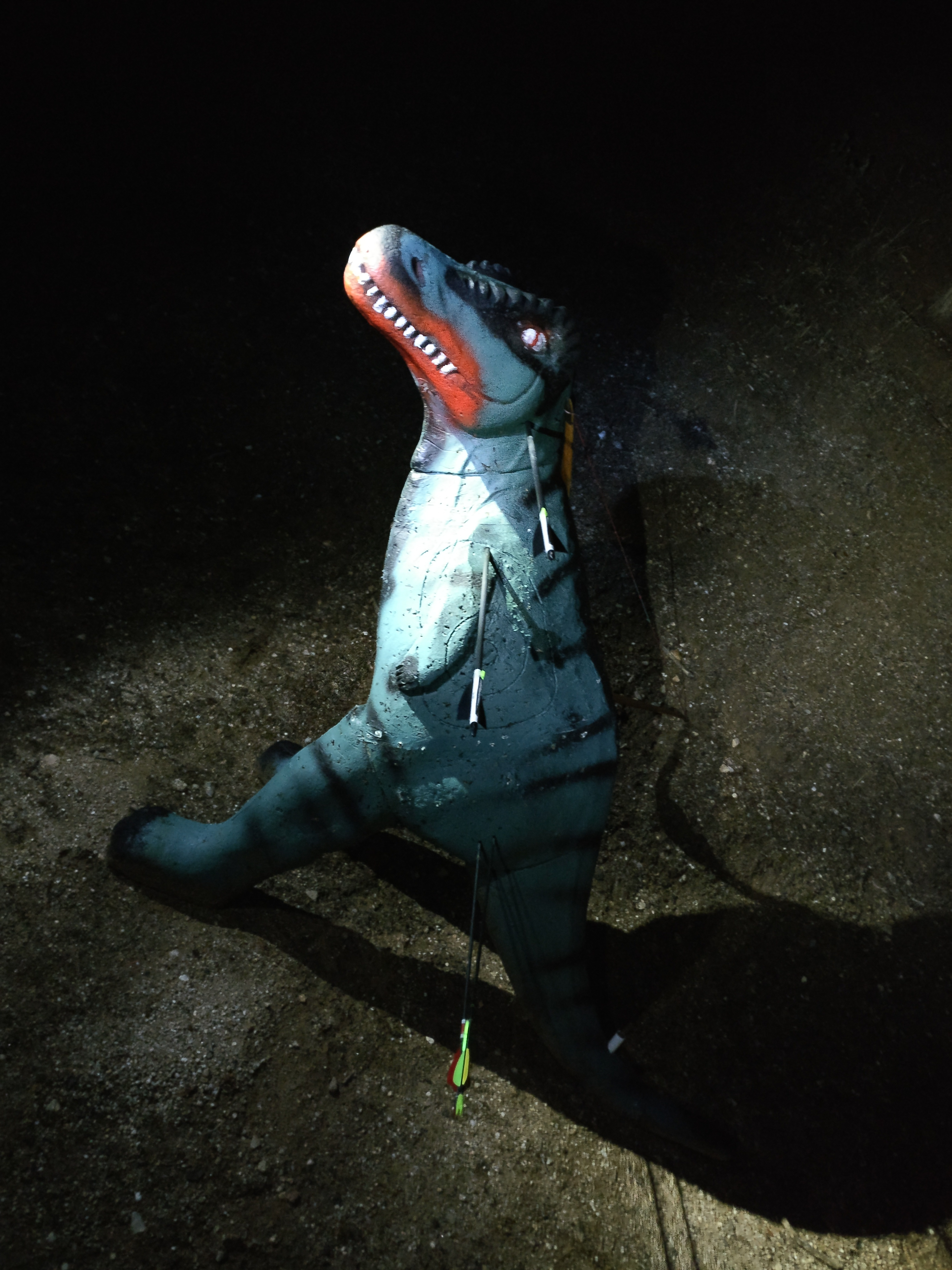 Independientemente del tipo de iluminación de la diana, lo que siempre era una constante era que uno no veía su propia flecha salvo quizá al ennocarla en la cuerda. Es una extraña sensación abrir un arco con una flecha invisible y anclar sin más referencia de ella, quizá, que una sensación de proyección del brazo del arco. El vuelo, sin embargo, era fácil de seguir gracias a los luminosos, que muchas veces generaban una suerte de rayo láser directo al objetivo. Naturalmente, cuando la diana estaba apenas iluminaba o a oscuras, nos teníamos que guiar más por el sonido que por la vista para intuir si la flecha había impactado en el animal, en el parapeto o en la tierra. Así, con nuestro recuerdo de por dónde estaba el animal y el reciente sonido, volvíamos a cargar la segunda flecha confiando en que nuestro instinto estuviera más afinado.