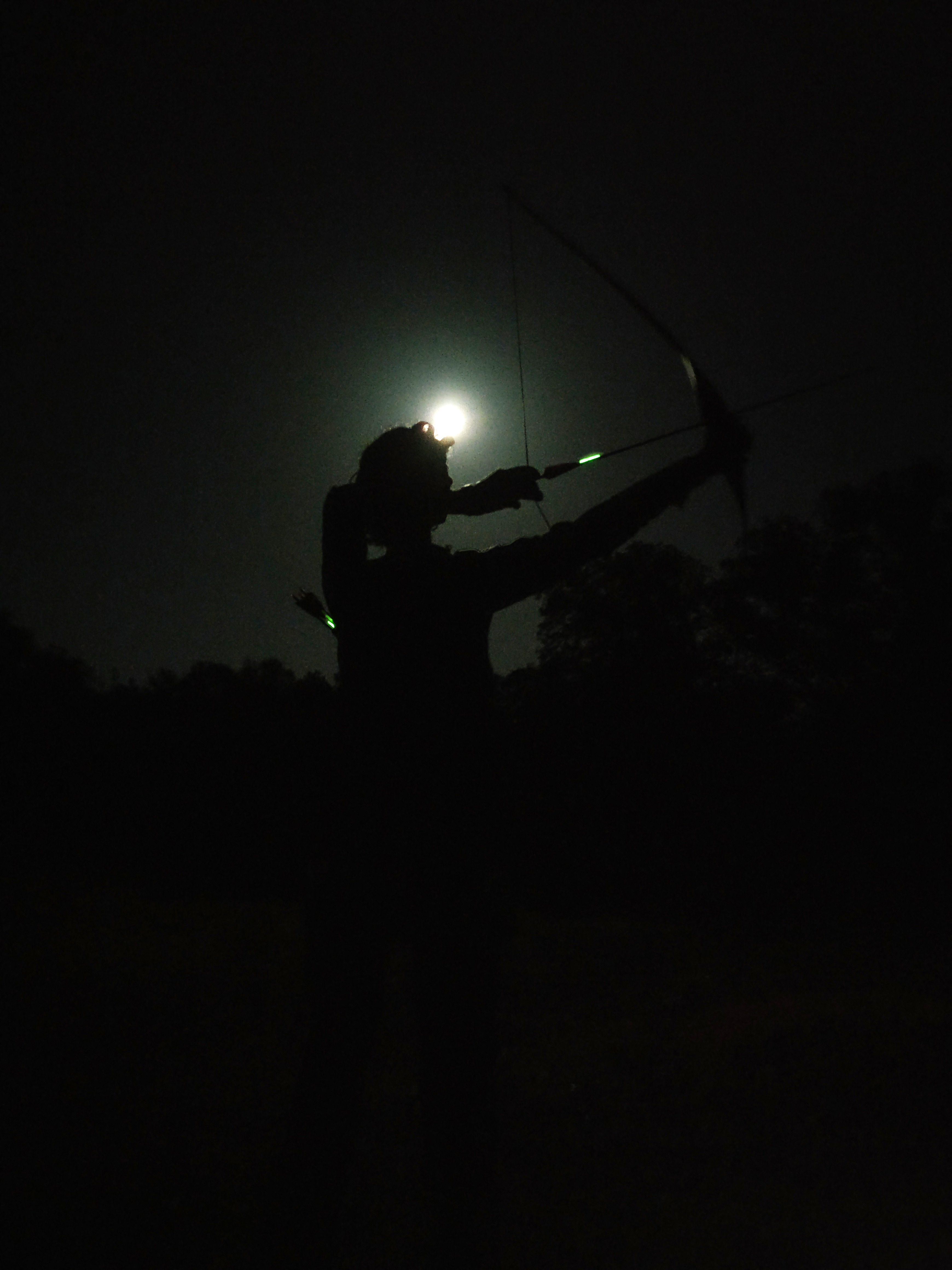 Era tan placentero el propio tirar con flechas en la noche como el recorrer el tramo entre diana y diana, rodeando árboles y arbustos con nuestras linternas y nuestros arcos. Recurriendo a referencias en el Señor de los Anillos, me pareció en más de una ocasión que podíamos ser de la comitiva de los elfos que acompañaban a Gildor Englorion antes de encontrarse con Frodo y sus amigos. Porque íbamos con el ánimo alegre, con luces reconfortantes y siempre iluminados por la luna, subiendo y bajando por pequeñas lomas o girando a izquierda y derecha para sortear la maleza.