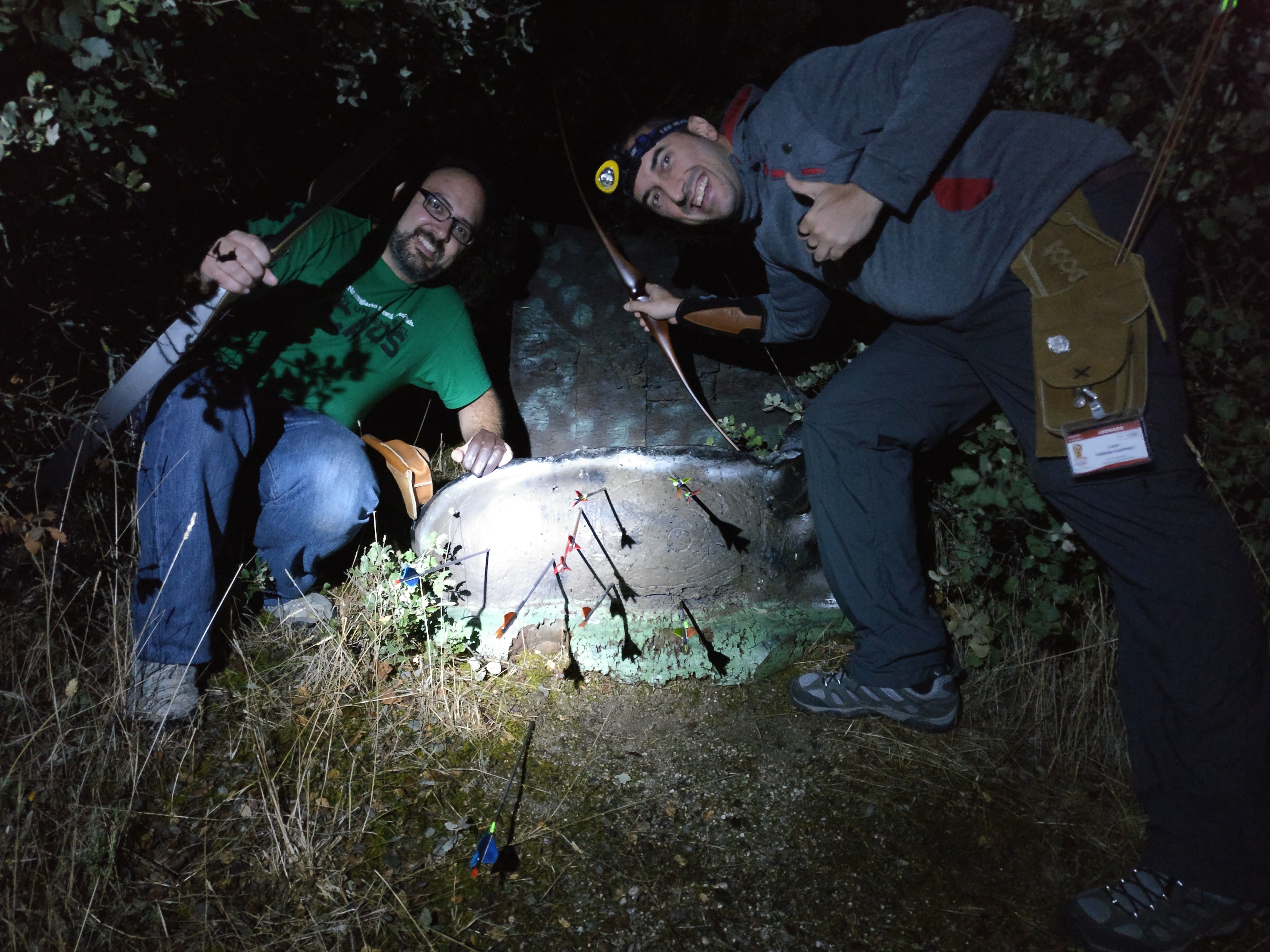 Aquí un estupendo conjunto de flechas de Luiyo, Borja y Yamila en una diana a la que dispararon a oscuras en su patrulla