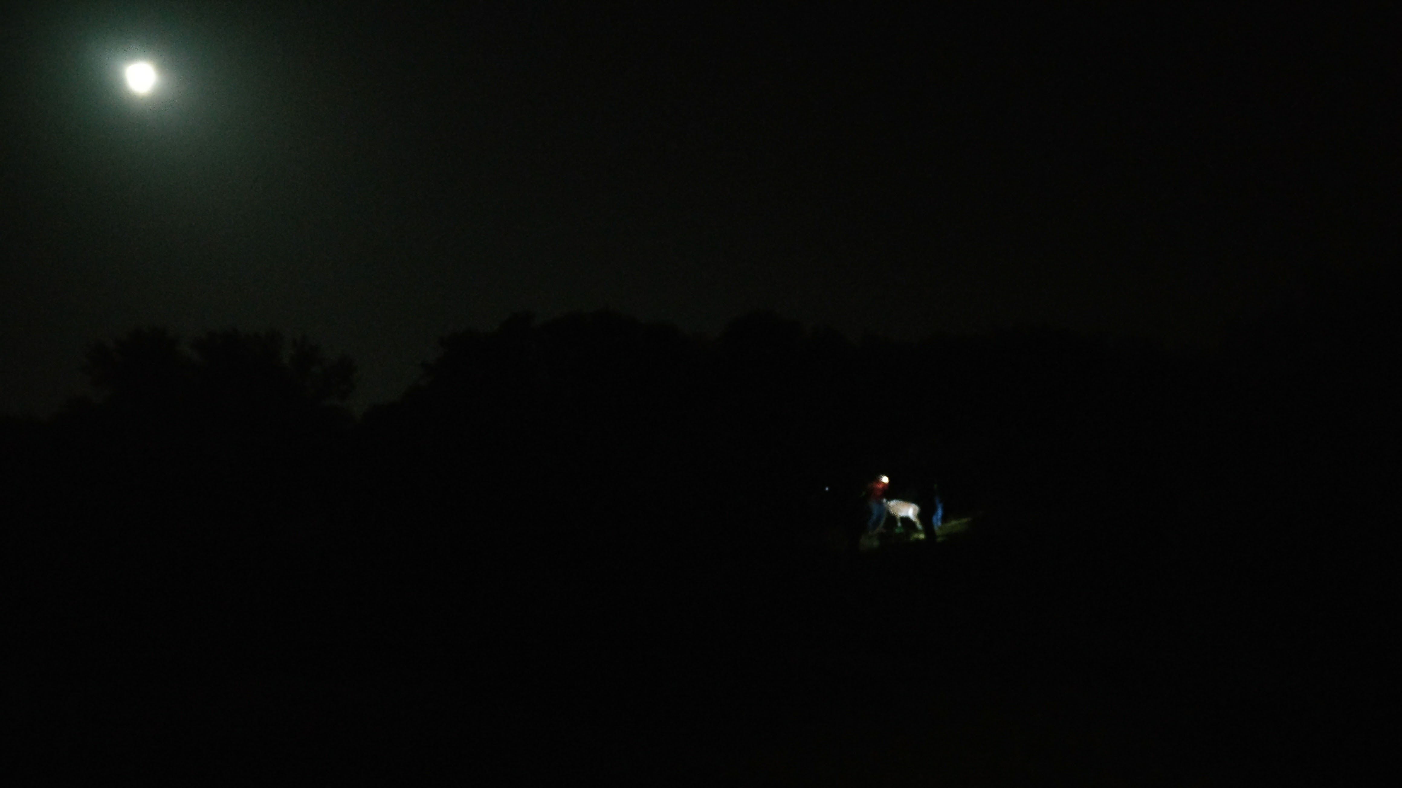 La luna en lo alto y la segunda patrulla anotando los resultados en una de las últimas dianas del recorrido