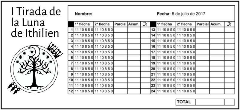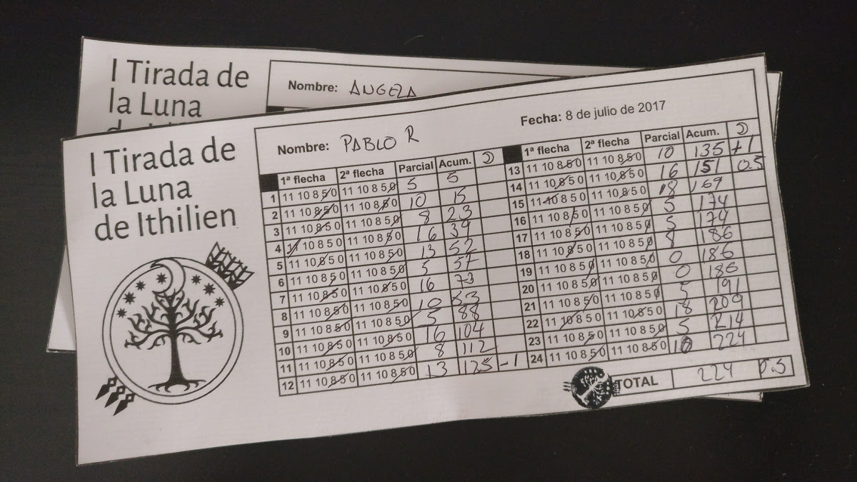 En esta ocasión, y con el verano encima, Angela y yo propusimos organizar una tirada nocturna en el club Arqueros de Madrid, del que la gran mayoría somos abonados y visitantes asiduos. El 8 de julio de 2017 tendríamos luna llena y siendo el nombre de nuestro club una referencia clara a la luna en el mundo inventado de JRR Tolkien, parecía una oportunidad perfecta para celebrar una forma de tiro en bosque un poco más especial.