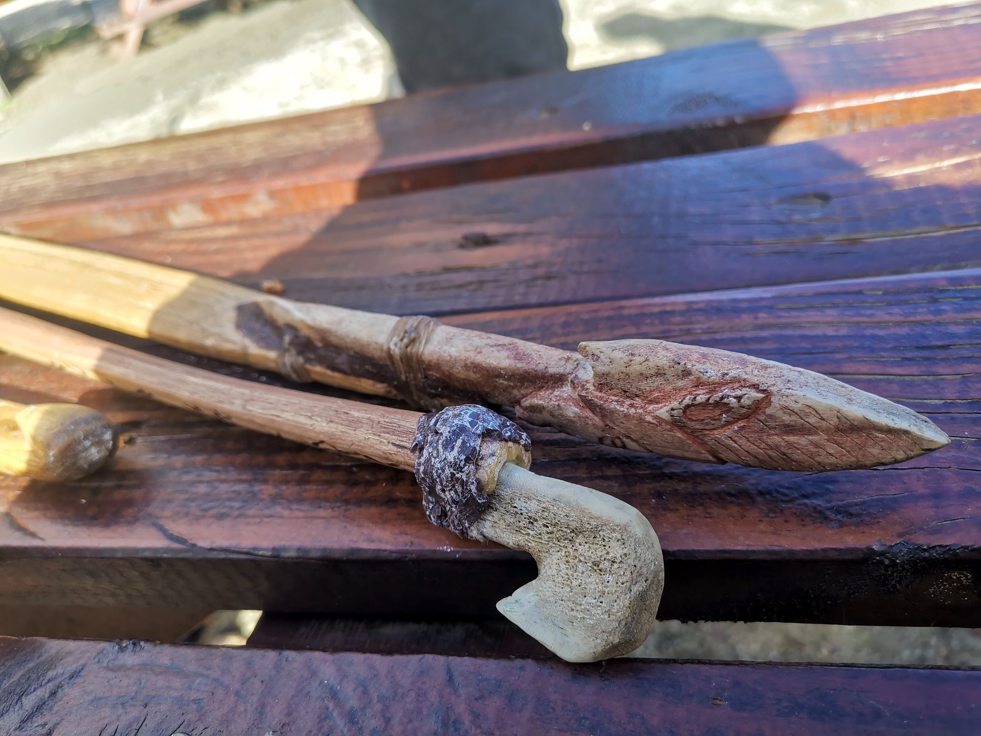 Durante la pausa para la comida, María se acercó a su coche y trajo una bonita colección de propulsores y azagayas. Nos explicó el funcionamiento y nos comentó lo divertido (y complicado) que resultaba tirar con ellos. Sin duda, hay ganas de probar este precursor del tiro con arco que necesita mucha de la misma capacidad para acertar a un objetivo a distancia. Estoy seguro de que en SIAH celebraremos algún evento en donde habrá espacio para probar el tiro con arco con propulsor. En tiradas prehistóricas que celebran por toda Europa suele haber tanto tiro con arco como de azagaya, naturalmente.