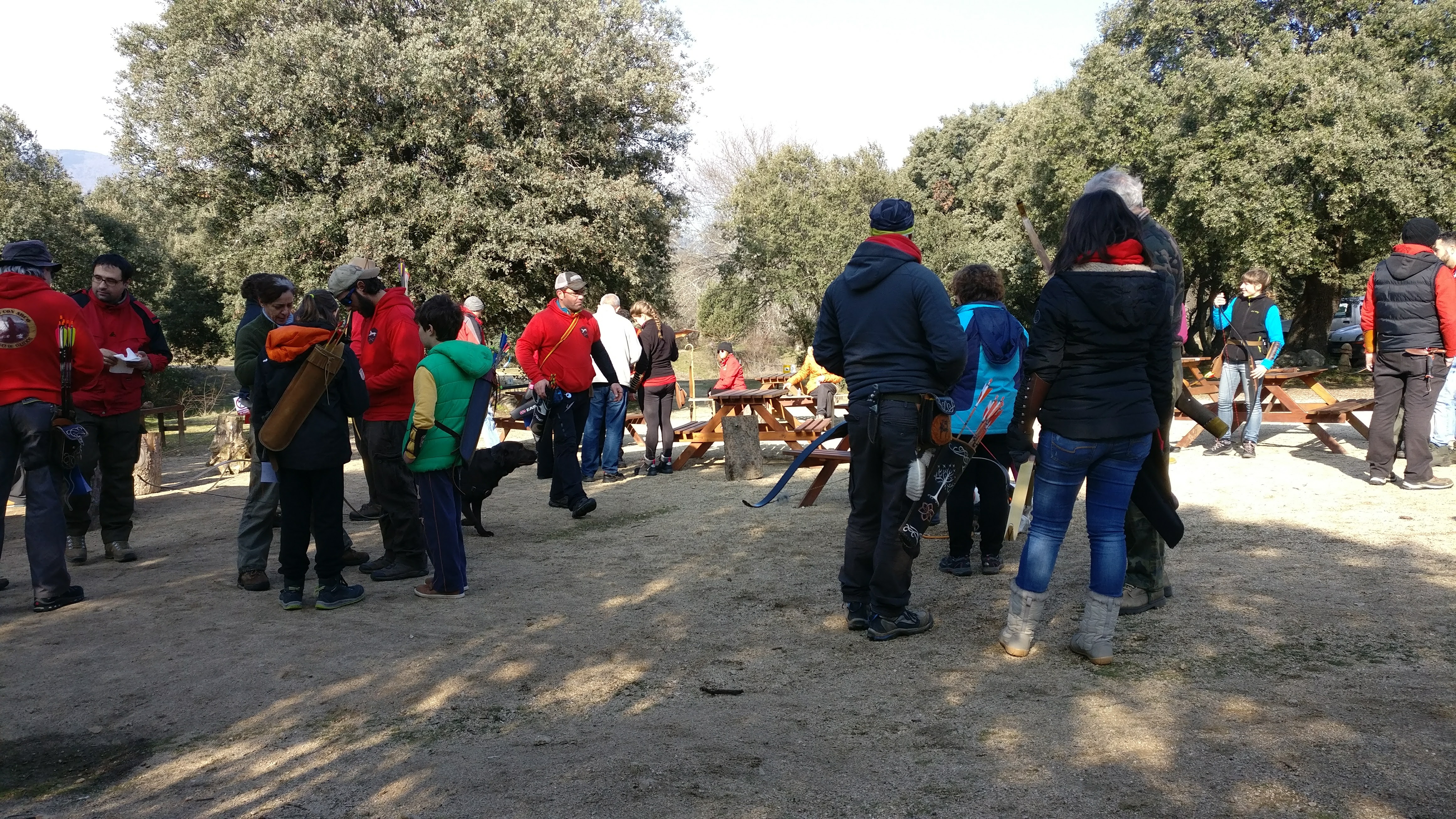 Llegué algo antes de las 10.30h y mientras atravesaba con el coche el último tramo antes del aparcamiento del club ya podía ver un nutrido grupo de arqueros y arqueras practicando en la línea de tiro. El día estaba algo nublado pero cada vez hacía menos viento así que el golpe de fresco al salir del coche fue todo lo que pudo hacer la sierra hoy para asustar, porque dos horas más tarde teníamos un cielo despejado, un sol radiante y una cara calentita.