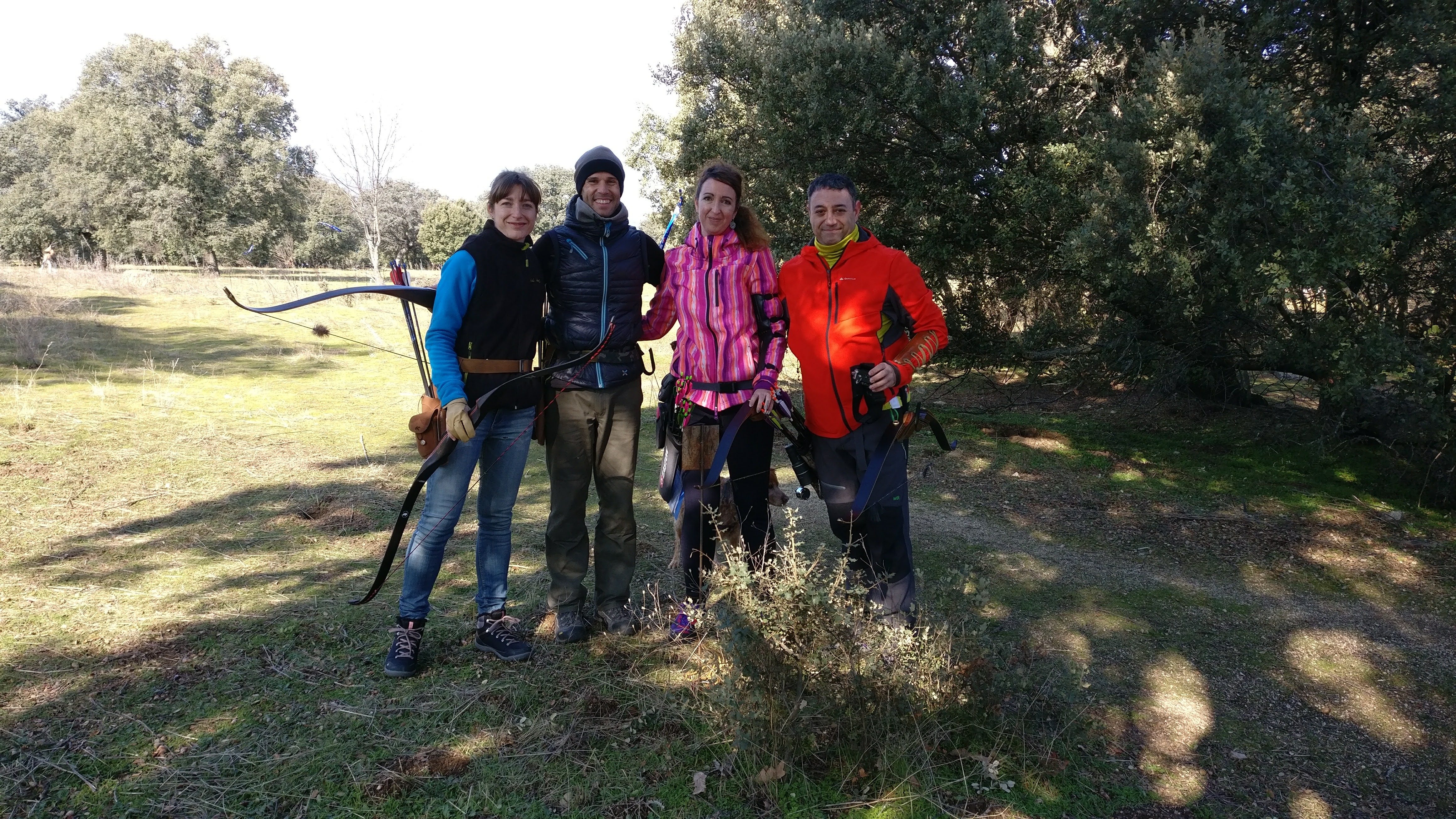 Mi patrulla, la 13, estaba compuesta por dos parejas de BHR (recurvo instintivo). Eran Alejandro, Vanessa, Raúl y Belén. Alejandro y Vanesa llevaban unos pocos meses tirando, mientras que Raúl y Belén apenas habían empezado a tirar ¡tres semanas atrás! Durante los momentos previos a salir hacia nuestras dianas de inicio, pude saludar a bastante gente, siempre cariñosa y, como dirían en inglés, welcoming. Tuve que desvelar el gran misterio de la ausencia de Angela en la tirada (viendo que el día no iba a ser frío) no pocas veces. Un "madrugón" por fin de semana, se acepta, pero no dos, así que tras la jornada del sábado tirando en Arqueros de Madrid, decidió cobrarse el sacrificio quedándose en la cama más allá del mediodía :D