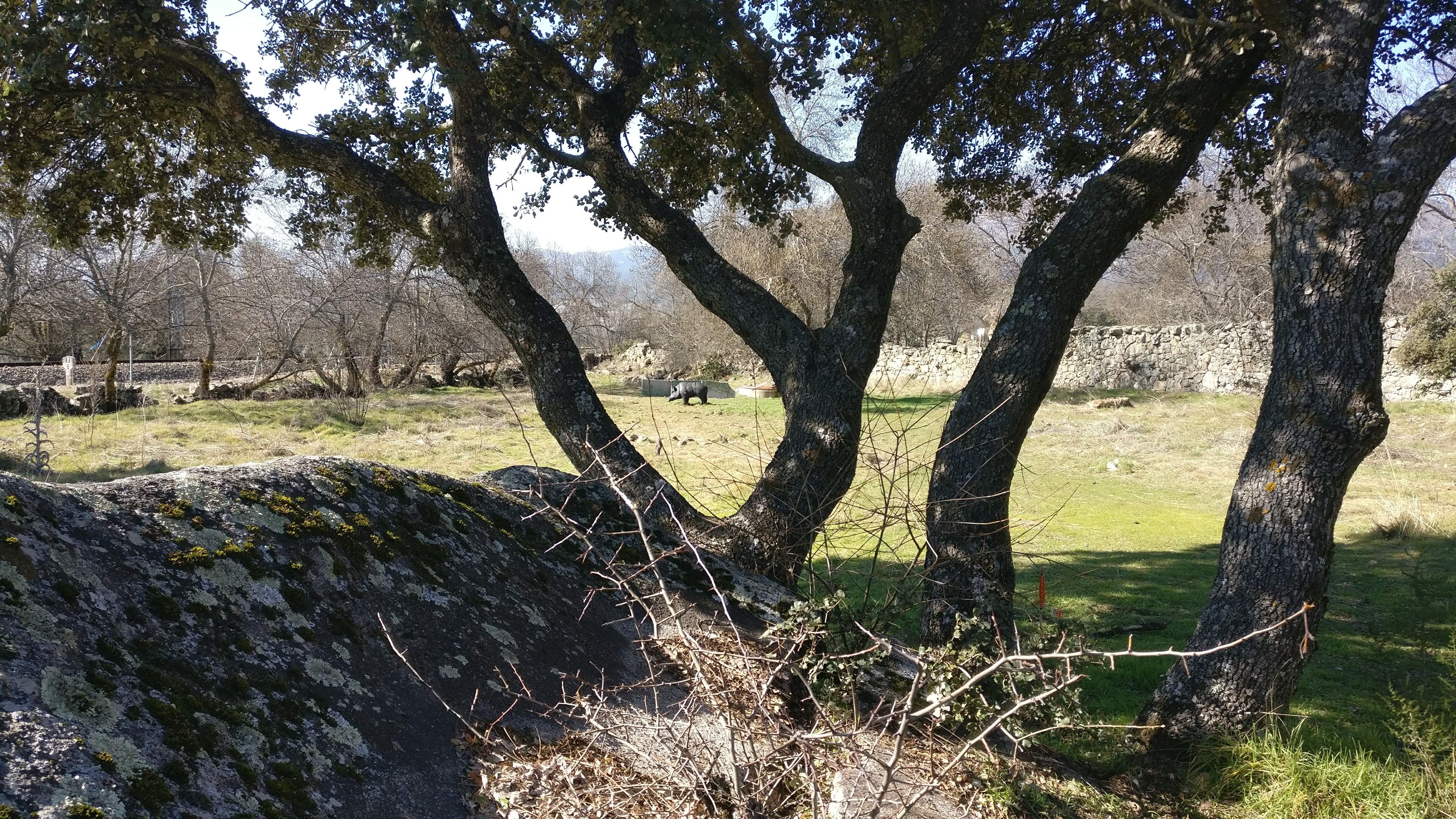 El campo estaba precioso. Corría agua por el riachuelo que cruza de lado a lado el campo. Cierto es que más que correr, el agua andaba, pero la visión era muy bonita y como el recorrido era un ocho deformado, lo pudimos cruzar varias veces. Hubo tiros fantásticos. El más espectacular quizá fue aquél en el que te subías a una peña en lo más alto del campo tirando picado a una cabra a unos 30 metros. La nutria en la laguna también quedaba de foto y el del jabalí tirando desde un hoyo en el suelo tenía su aquél. En general, Bastión de Alanos volvió a sacar mucho partido de la finca y no se hizo nada repetitivo con variedad de distancias, animales y presentaciones. Puede que uno no tenga el día pero sabe apreciar cuando el recorrido está bien montado y así fue.