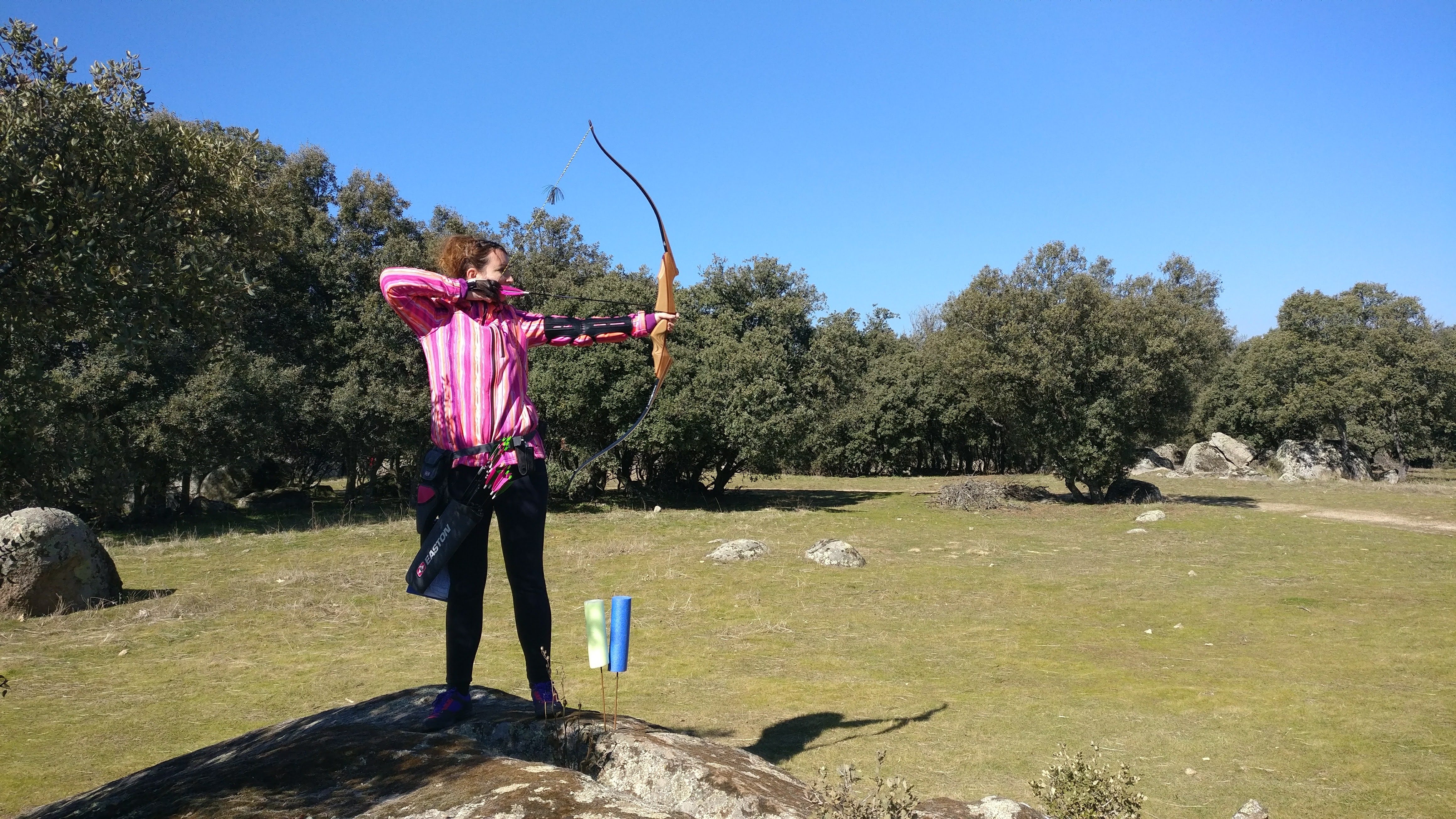 El calentamiento fue breve y me centré en la suelta, no en apuntar a algún sitio en particular y los resultados estaban dentro de lo aceptable. Las flechas volaban rectas y algunas regalaban la rotación inversa de las plumas que queda tan elegante. Desde luego, para este arco de 40 libras, las flechas de 30-35# de spine y 70 grains de punta van fantásticas.