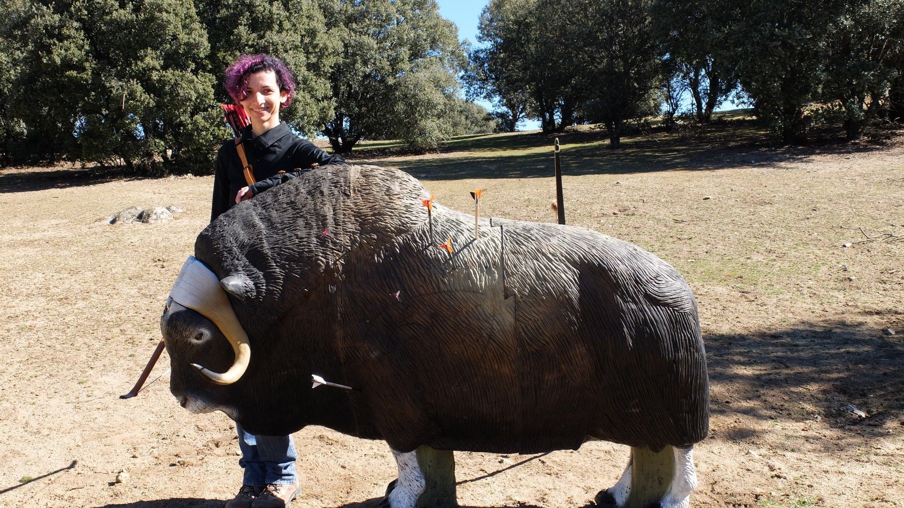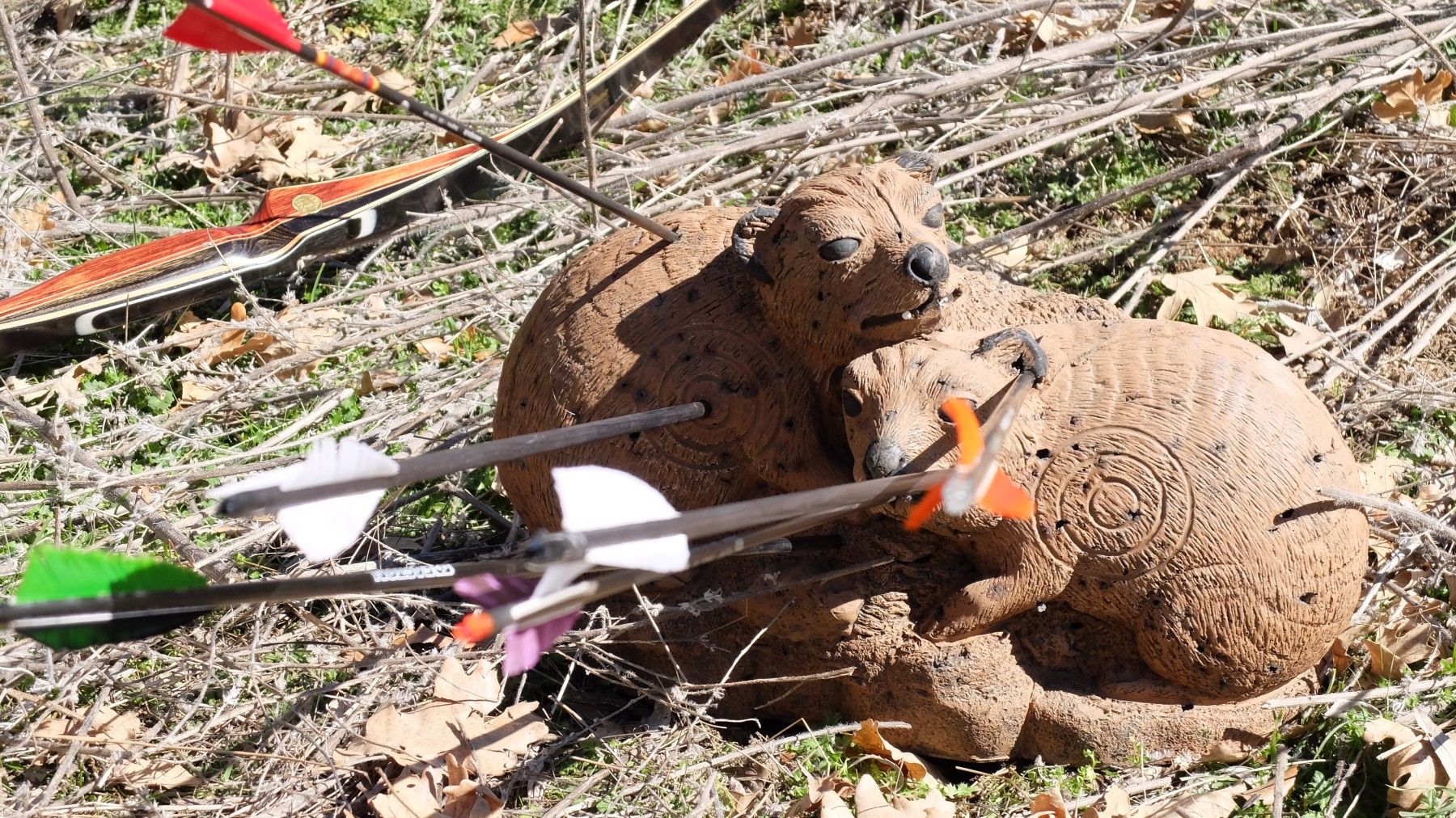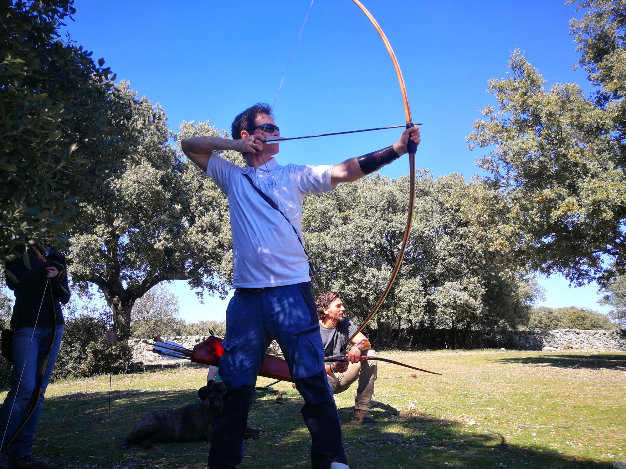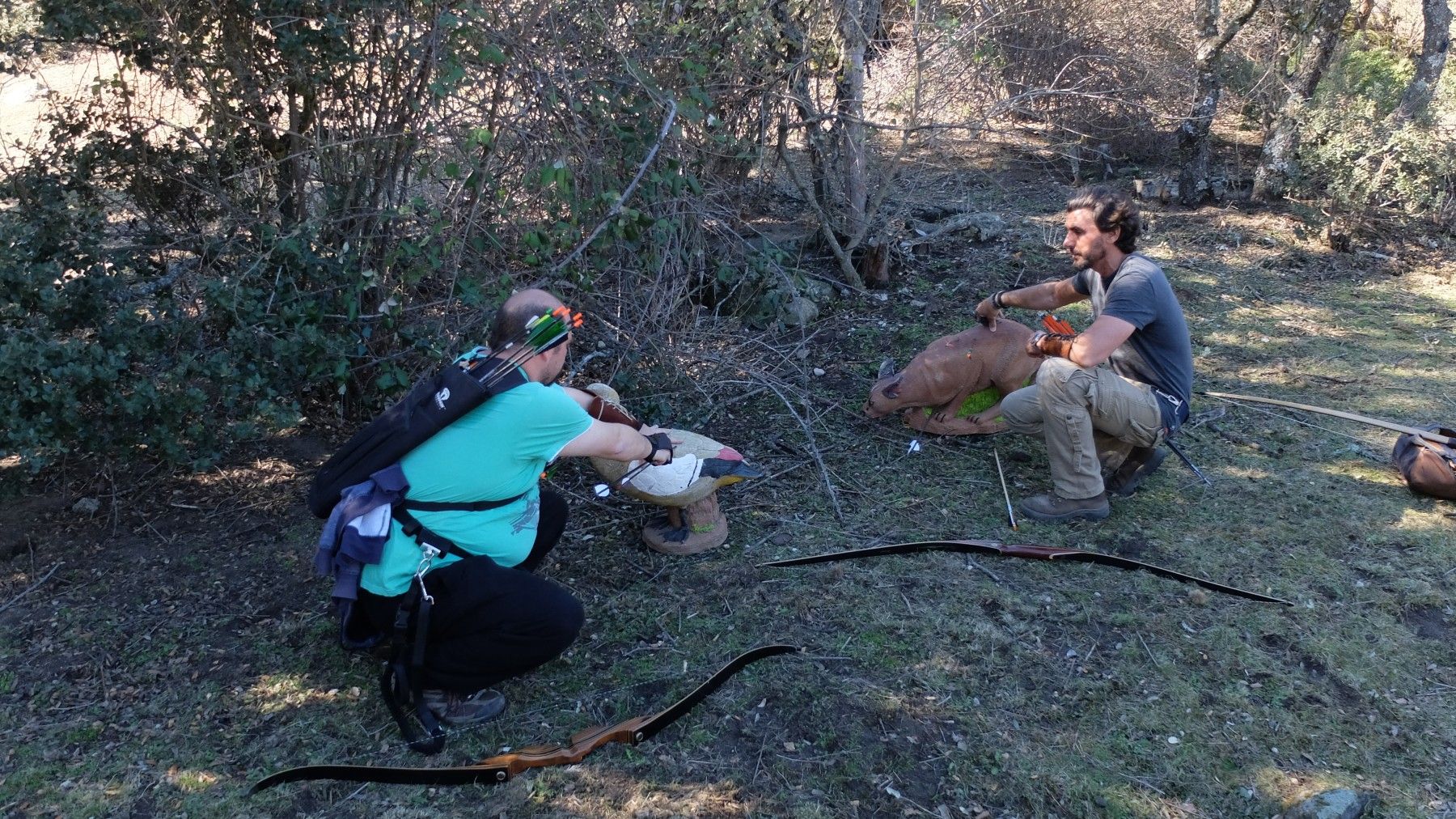 Nuestra patrulla estaba formada por Andros Martínez, Jorge Herranz y el propio Jacobo y sobre las 10.45h empezaron a silbar las primeras flechas. Las cinco figuras caminamos bajo un brillante sol por una dehesa reverdecida por las lluvias recientes optando por dejar primero paso a Andros y Jorge con sus flechas de carbono y arcos más precisos y luego a los tres con los arcos más "raritos".