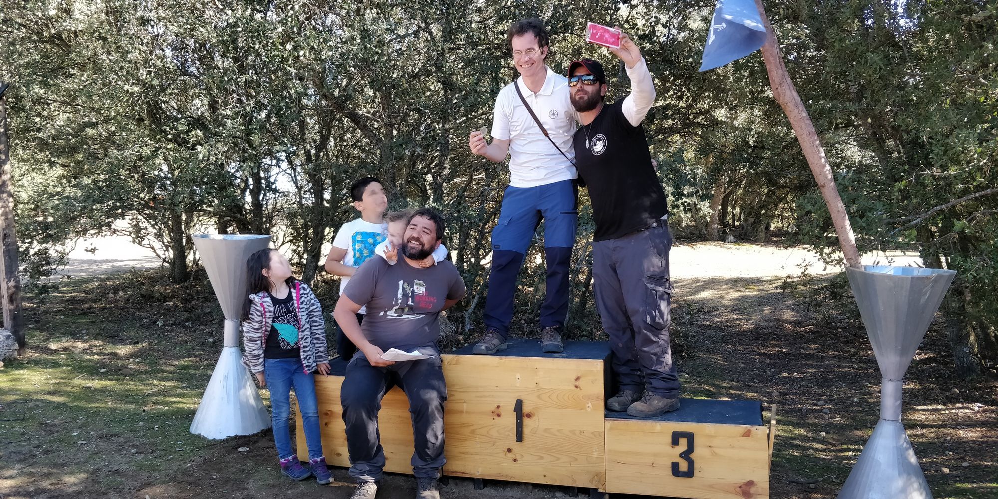 Al cabo de una hora llegó el ansiado momento del café y sin la pesadez del estómago nos fuimos a practicar un poco a las dianas de calentamiento. Apenas habíamos tirado una flecha con el anillo de pulgar cuando nos avisaron que "tocaban a podios" así que volvimos obedientes a la explanada donde siempre está dispuesto el cajón y esperamos a que Haritz se marcara su particular monólogo improvisado.