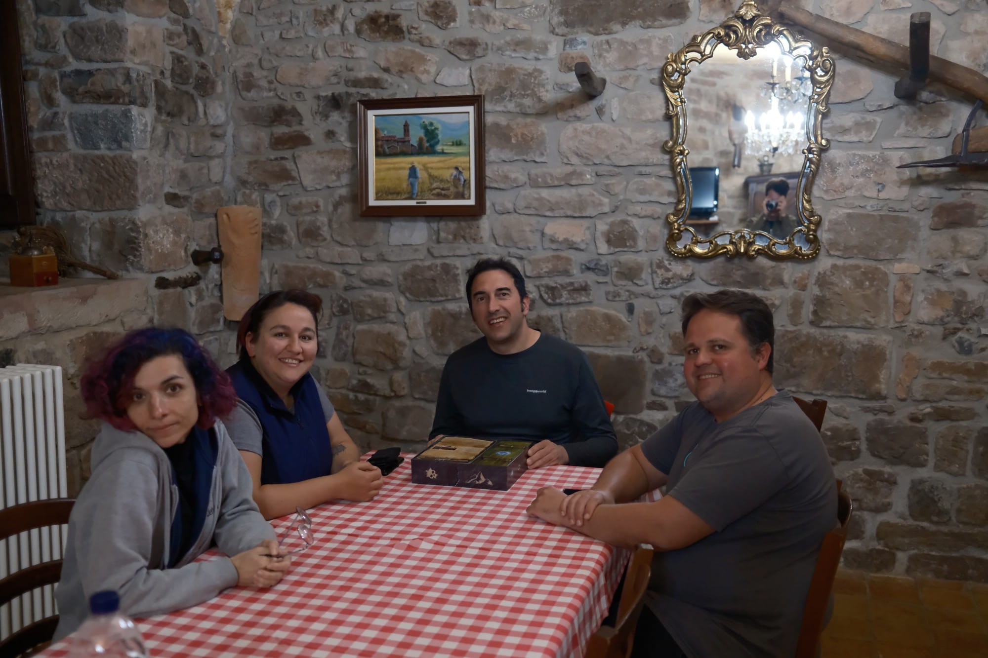 Tras tomar un café al aire libre, nos volvimos a Mas Postius para ducharnos, estar de relax aprovechando una luz vespertina preciosa y continuar jugando al juego de mesa.