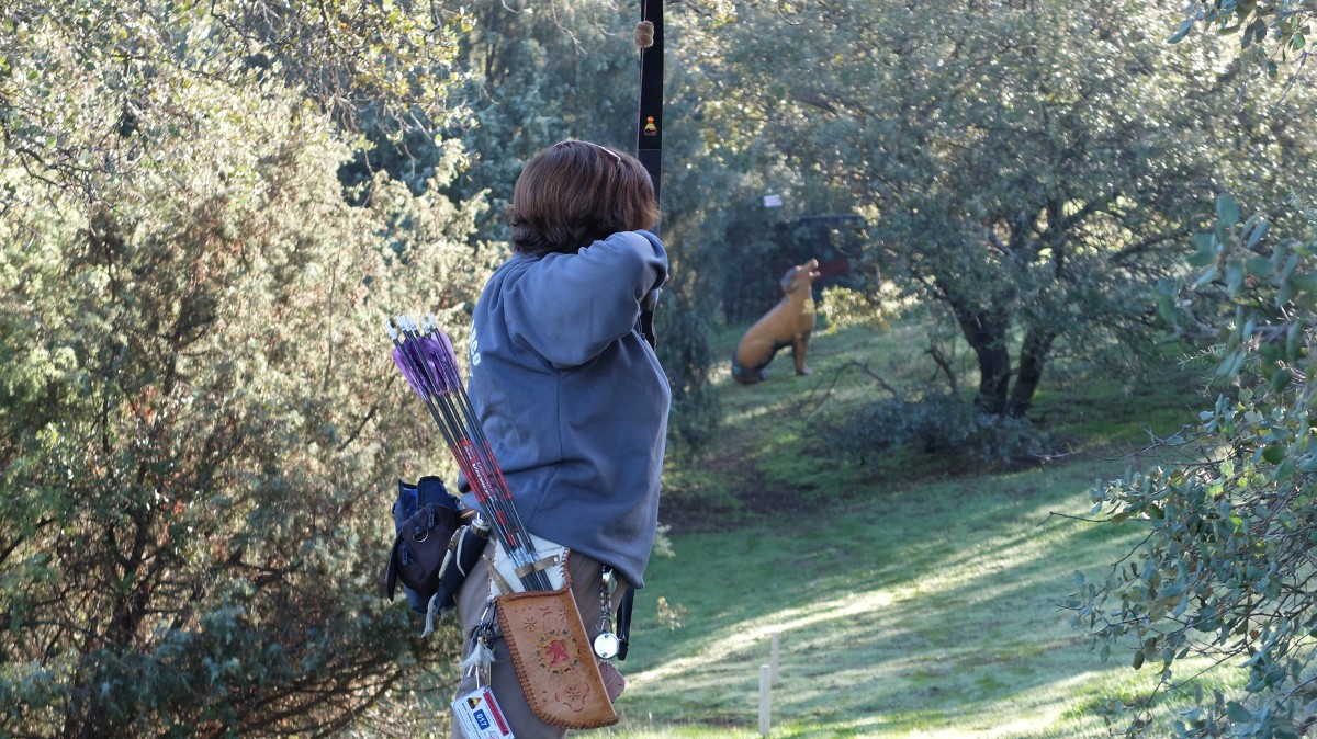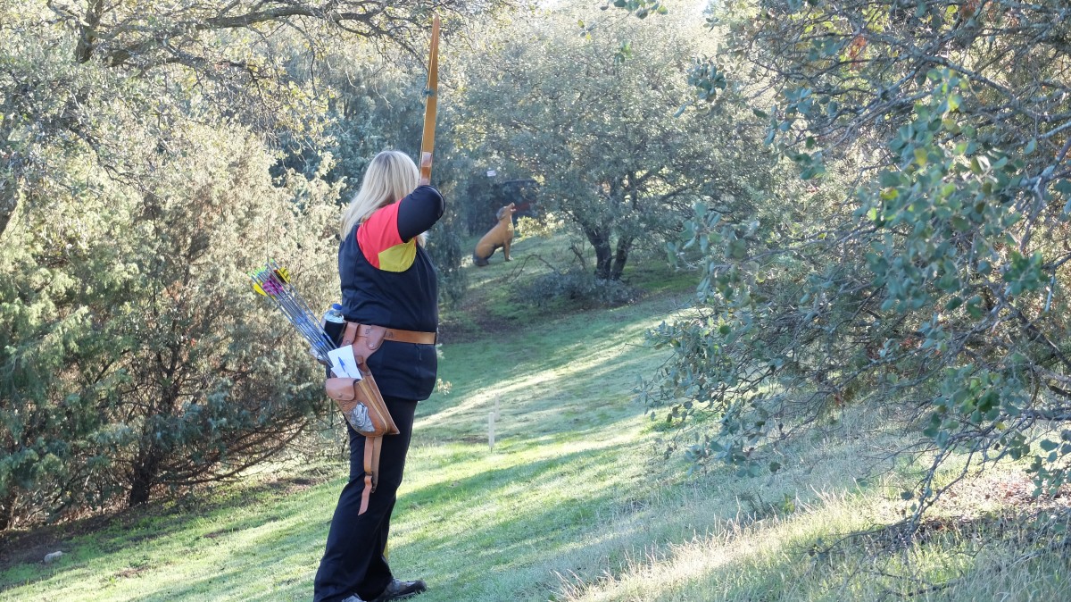 Haciendo un resumen muy penoso de lo más destacado de IFAA para un neófito, aparte de unas sutiles diferencias en categorías de arcos, sería que hay mayor variabilidad de distancias para todas las categorías (lo que suele significar "más lejos"), las propuestas de tiro tienden a escenificar más aún situaciones de caza real (lo que suele significar "oh, tengo que arrodillarme o daré a esa rama") y en unas cuantas dianas, se tira la primera flecha desde una piqueta y la segunda flecha desde una piqueta algo más cercana (lo que suele significar "vaya, no me vale la referencia de la primera flecha"). En definitiva, podría decirse que IFAA suele significar un reto algo mayor en términos generales, pero es un reto mayor para todos. Se hacen menos puntos a cambio de celebrar más algunos tiros cuando consigues dar, claro está. En este sentido hay que ir preparado para notar cierto "bajón" en aciertos con respecto a las tiradas que siguen la modalidad WA (en España las ligadas a la Federación). Hay gente que no lo lleva bien y hay gente que lo incorpora en su forma de entender el tiro con arco. En nuestro caso, Angela y yo somos miembros tanto de RFETA como IFAA y disfrutamos la variedad que nos dan ambos. Llevamos tan poco tiempo en esto que para nosotros todo es nuevo y fantástico.