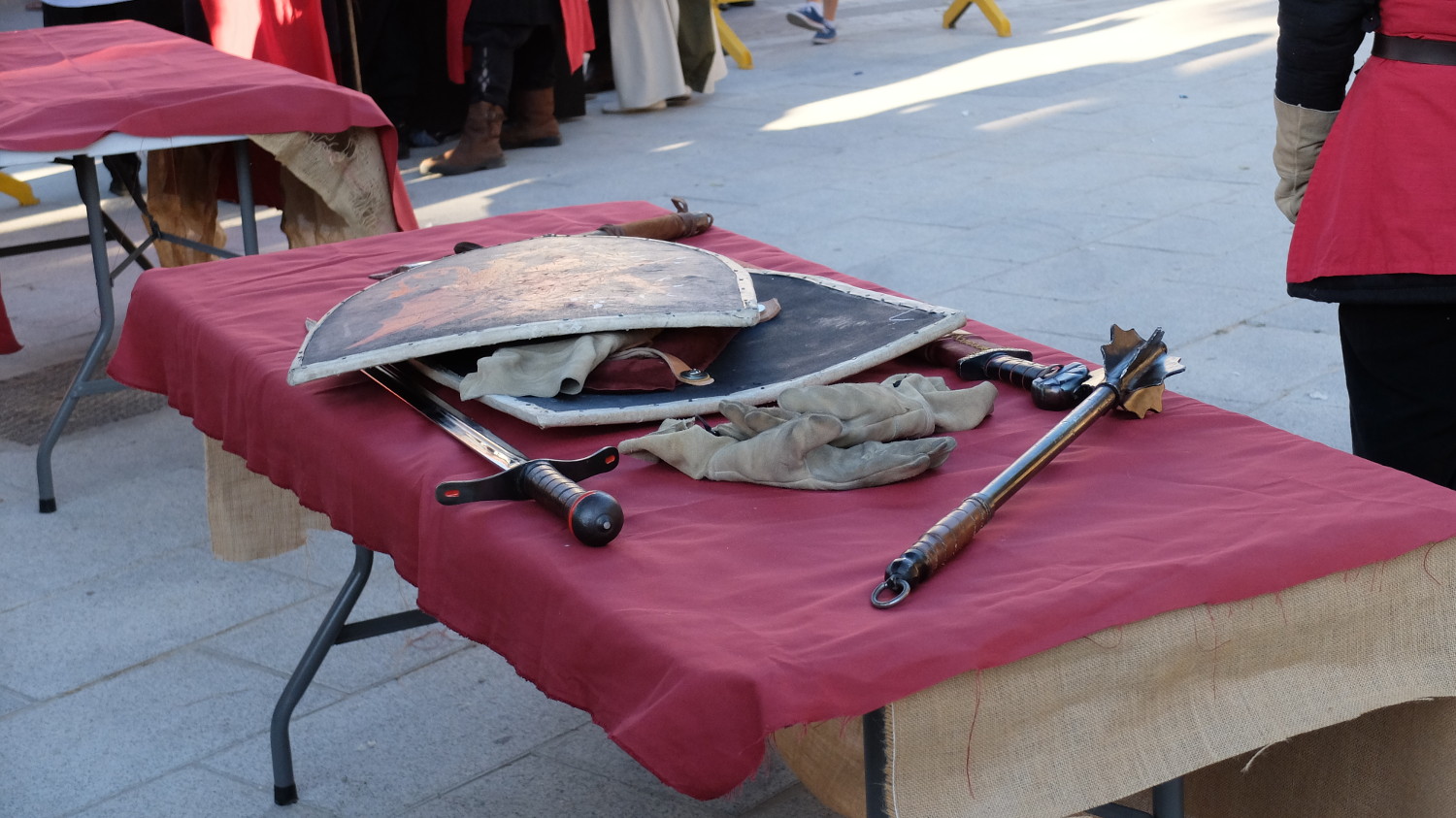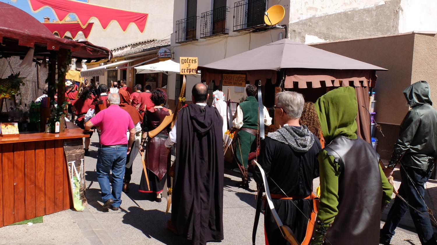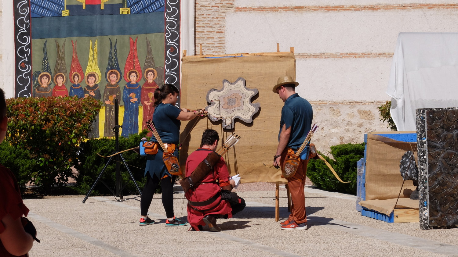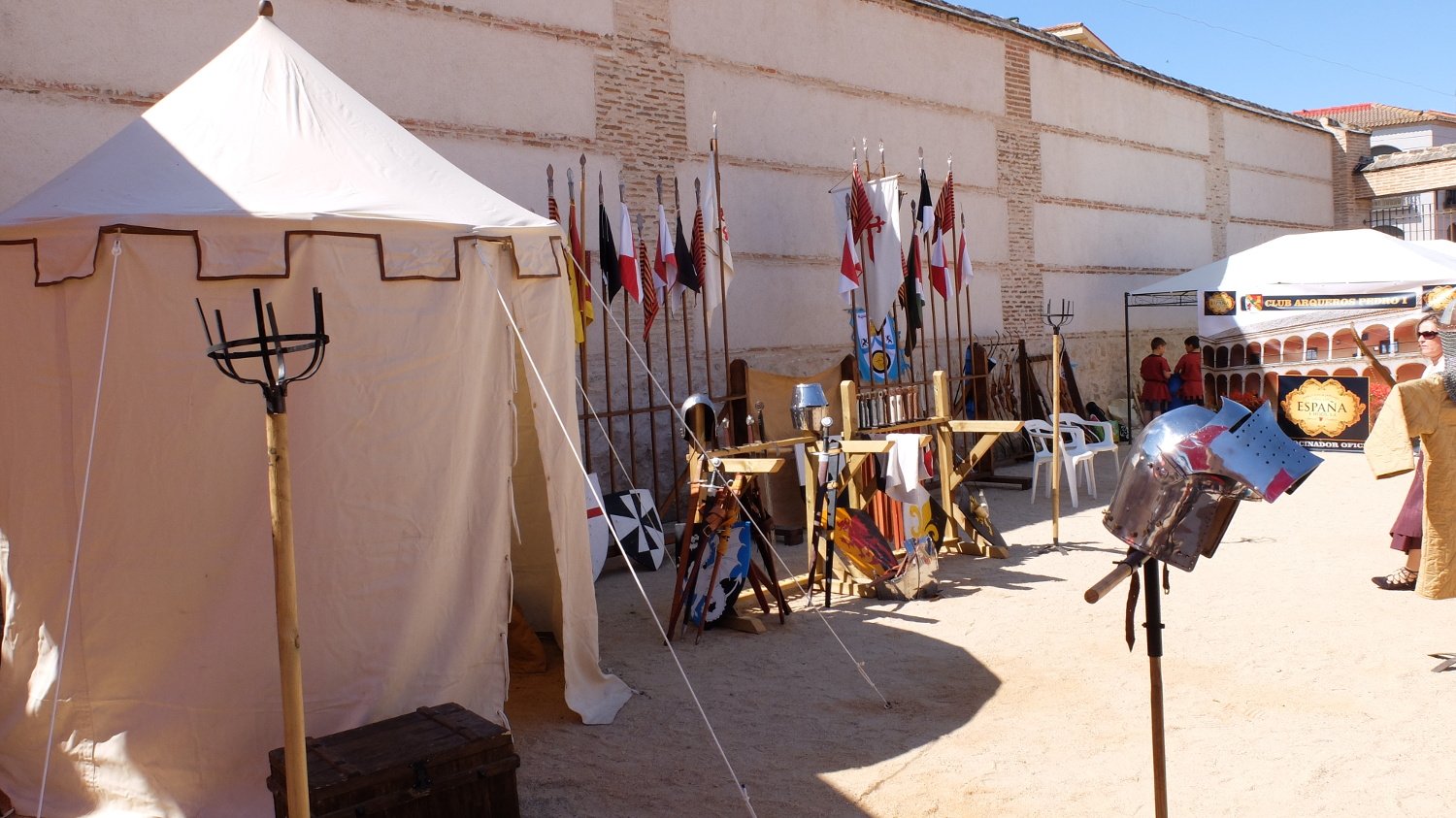 Después de comer disfrutamos de un delicioso té moruno de limón y hierbabuena en otro puesto. No había prisa y fuera hacia un calor importante así que se trataba de pasar el rato lo más tranquilamente posible. Los habitantes de Torrijos seguían sin hacer acto de presencia así que estaba todo muy tranquilo. En la Plaza de San Gil pegada al Palacio estuvimos tomando un café hasta que llegó la hora de los juegos de tiro con arco de la tarde que luego darían paso a la gran final en esa misma plaza.
