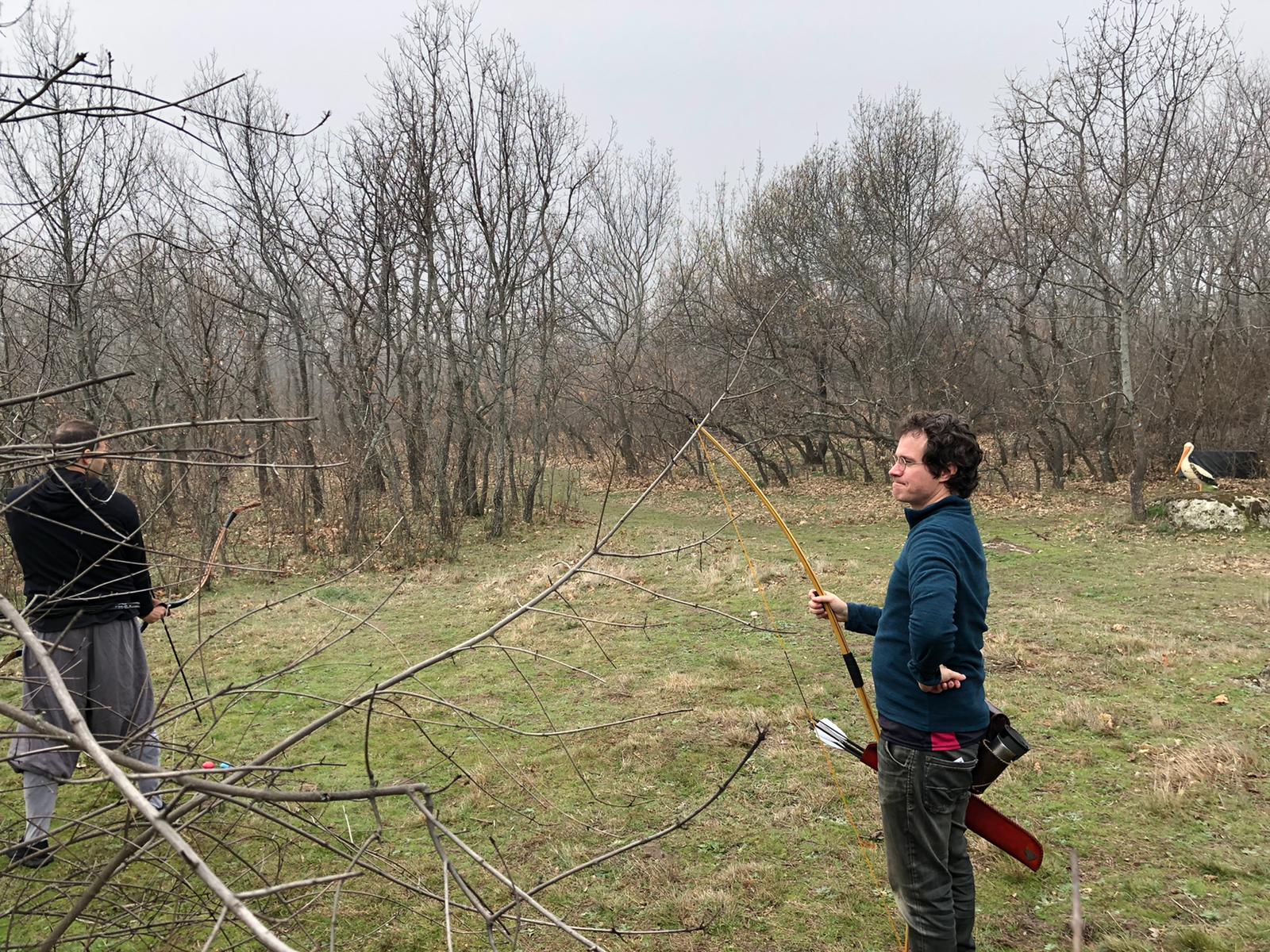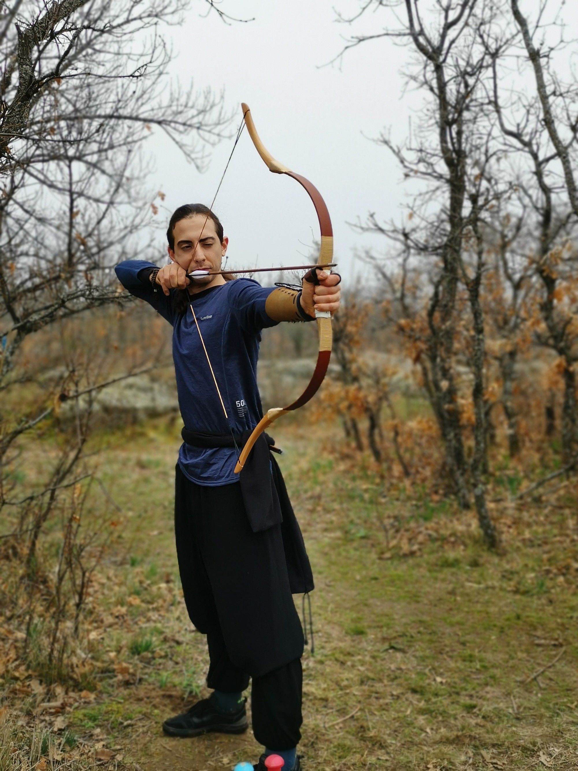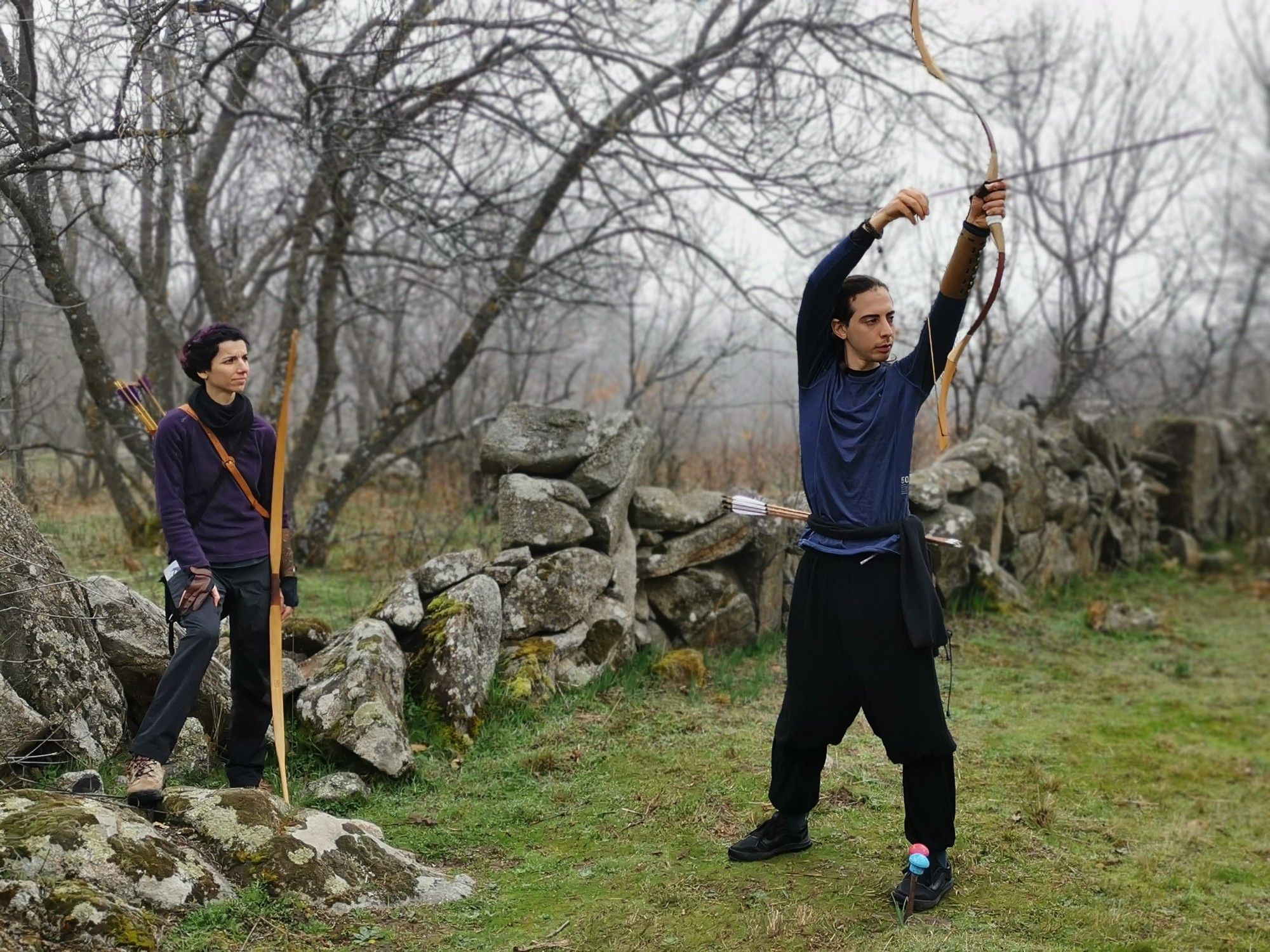 Kerman y Giorgi, como se ve en las fotos, tiran con técnica de pulgar con arcos nómadas, lo cual sabemos que implica un esfuerzo extra para su dominio si aprendieron a tirar primer al estilo "mediterráneo", algo que se nos olvidó preguntar.