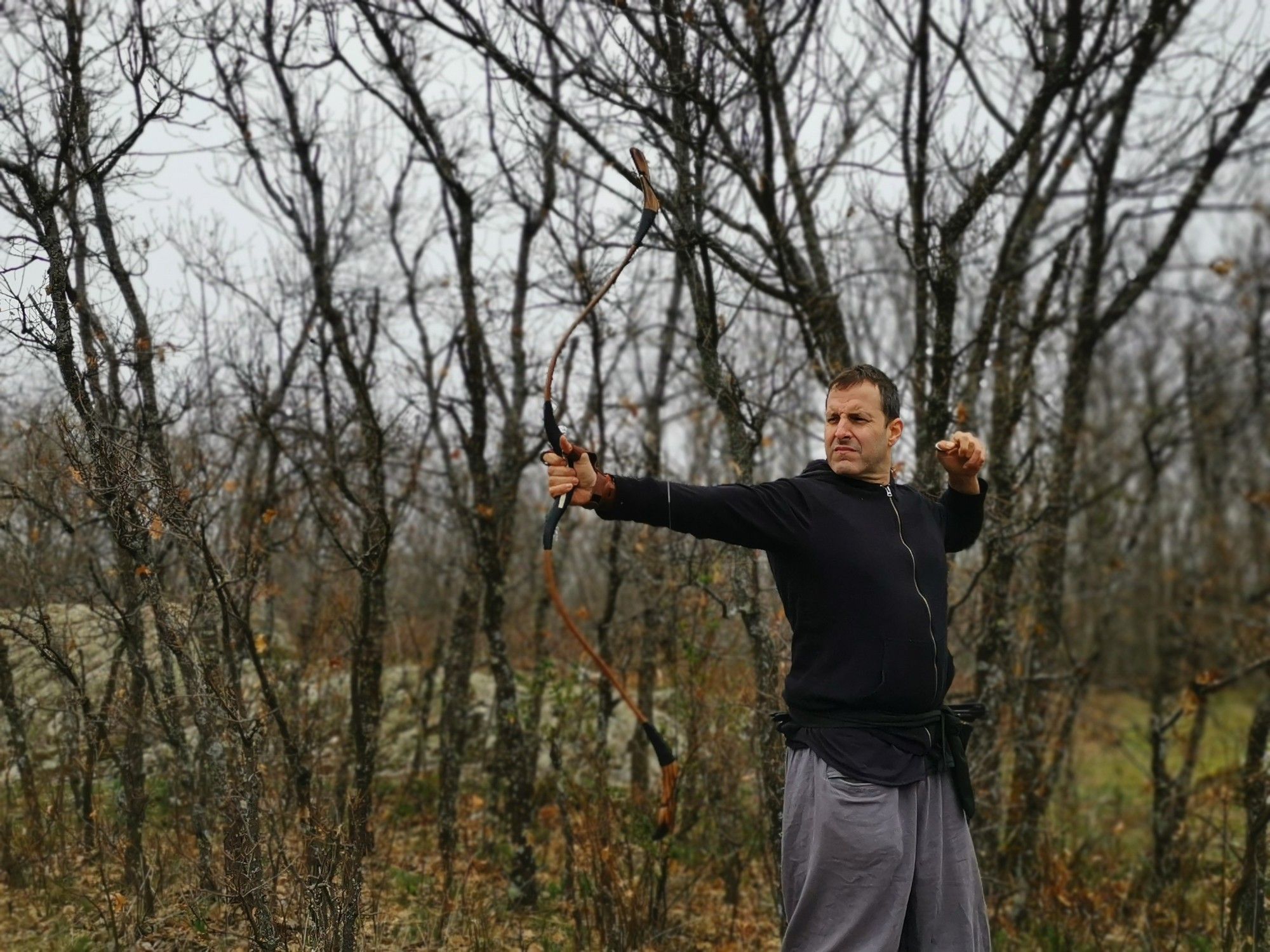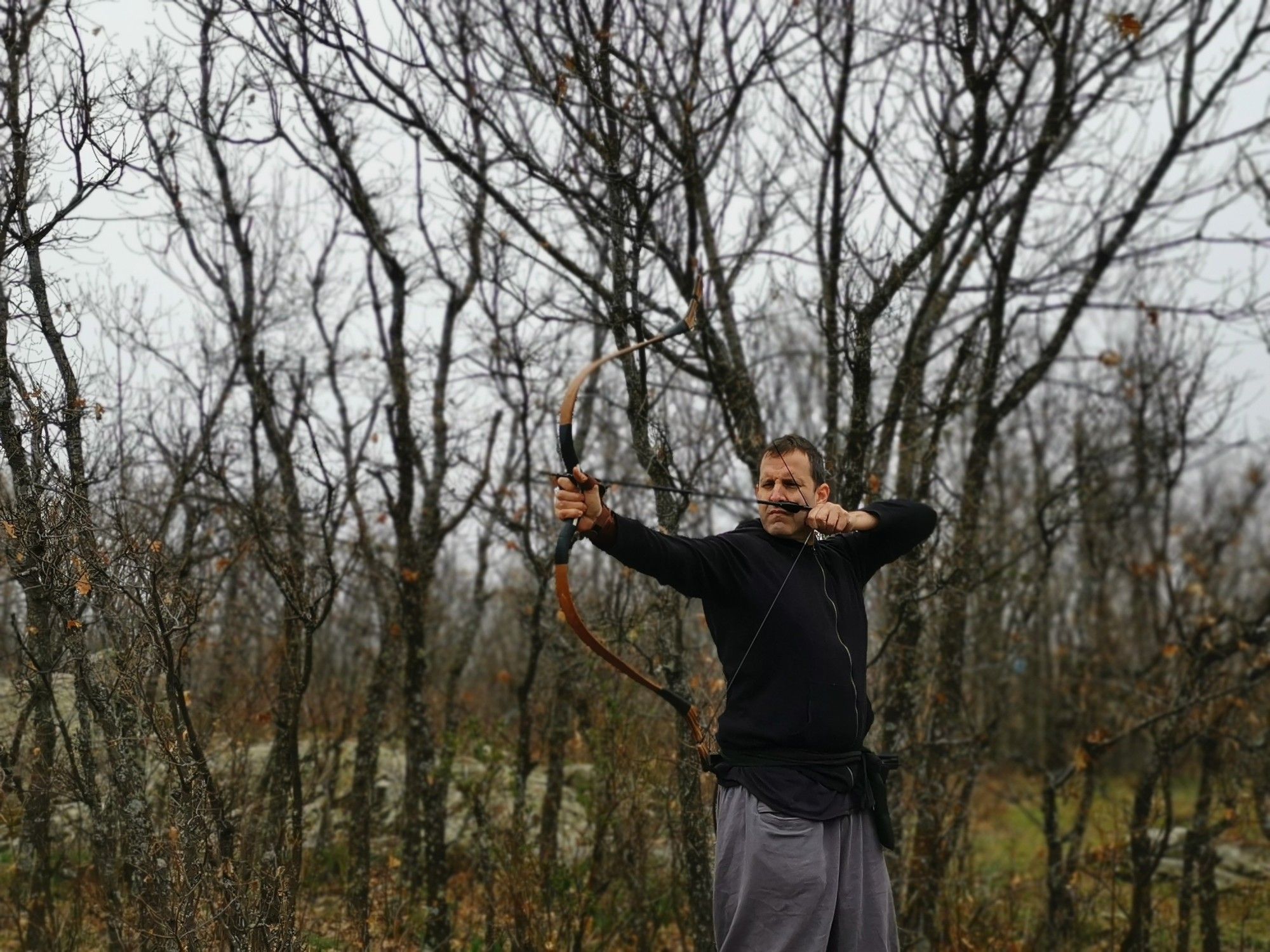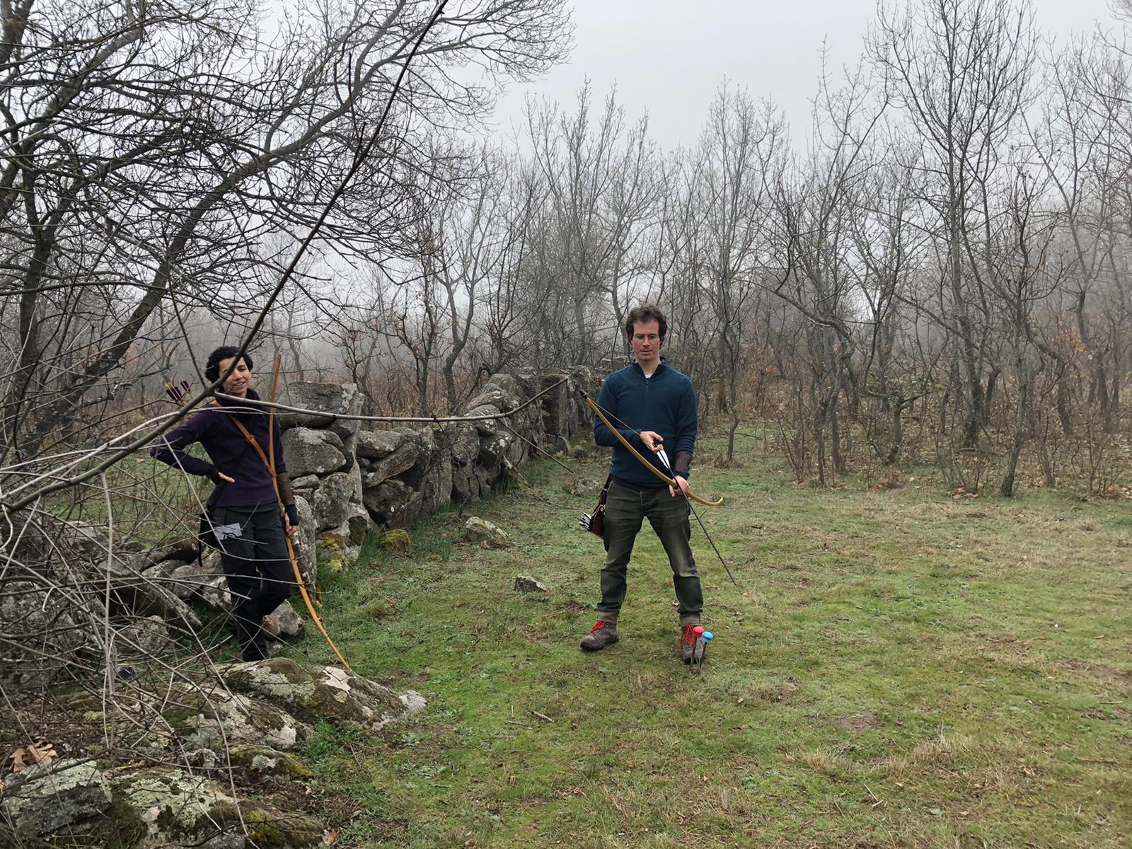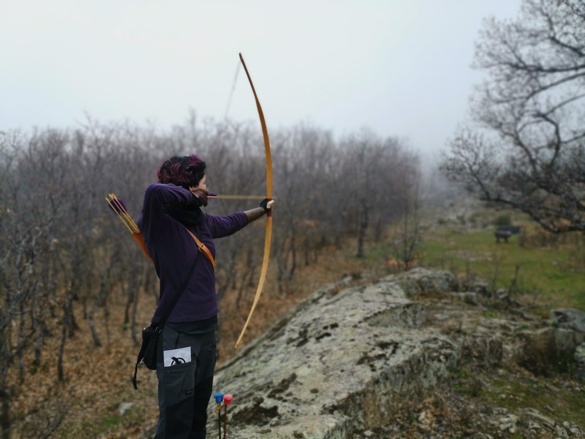 Kerman y Giorgi, como se ve en las fotos, tiran con técnica de pulgar con arcos nómadas, lo cual sabemos que implica un esfuerzo extra para su dominio si aprendieron a tirar primer al estilo "mediterráneo", algo que se nos olvidó preguntar.