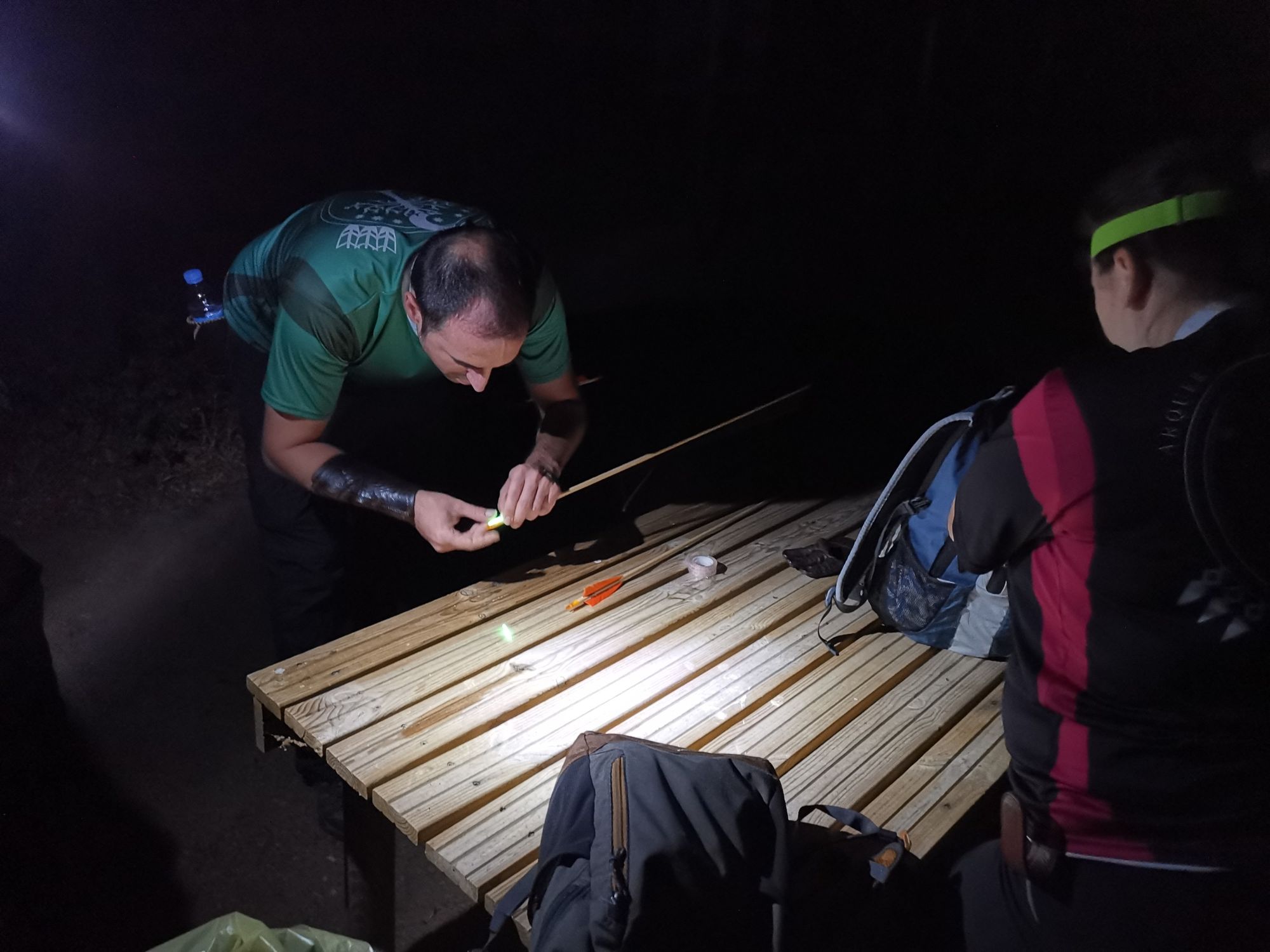 Una tirada nocturna tiene la capacidad de aportar cierto recogimiento. Cierto es que puede verse como una oportunidad de desparrame nocturno pero en mi experiencia la gente tiende a estar más en silencio como si la noche en el bosque exigiera cierto respeto aunque es posible que se deba a nuestro propio instinto, que en ausencia de luz no deseemos atraer la atención de lo que no podemos ver.