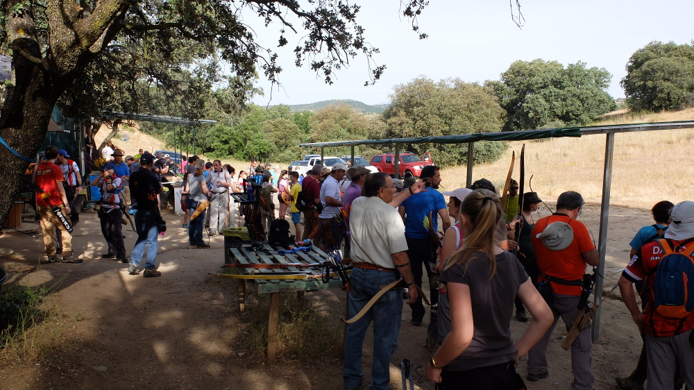 De nuevo en Arqueros de Madrid se juntaron tantos arqueros y arqueras que agotaron el máximo de 24 patrullas. Yo estaba en la 20 con Claudino, con quien ya había tirado en otras ocasiones, y con Dioni y Virginia que habían venido de Valdorros en Burgos.