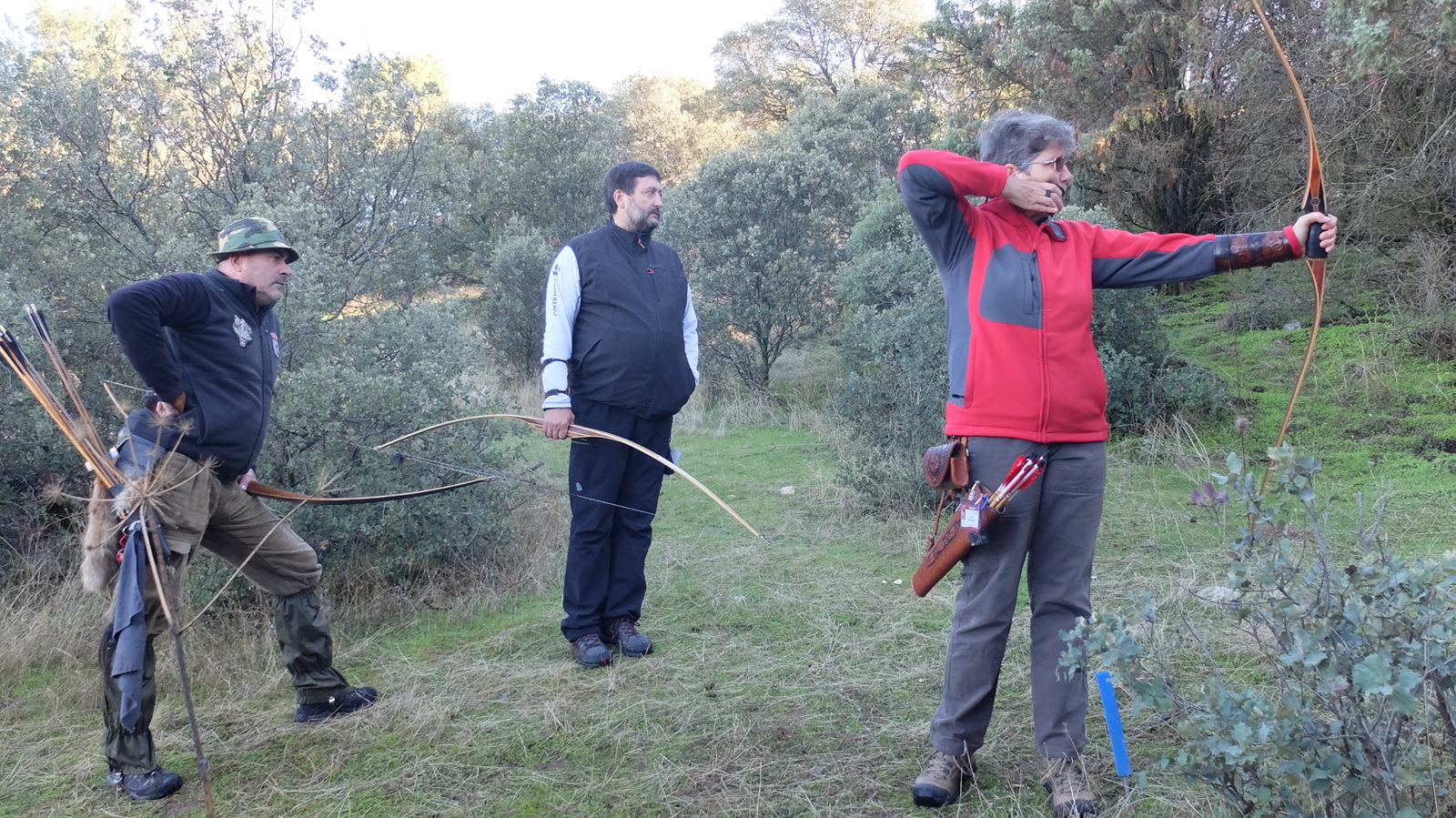 La verdad es que desde la primera flecha no me vi muy fino. No sé si era por el forro polar o por qué, pero el anclaje era inseguro, quizá no estaba abriendo el arco bien con la espalda. En cualquier caso me concentré en la suelta y me olvidé de apuntar y así, tras tres rondas de flechas di por resuelto el calentamiento. Tuve ocasión de probar el longbow "Zorro Gris" de Avelino, en apariencia un arco semejante al mío en diseño y libras pero muy suave en todos los aspectos. Muy ligero y sin handshock. Mis flechas no volaban bien con ese arco, hacían algún extraño pero no le di importancia, lo importante eran las sensaciones y fueron bastante buenas.