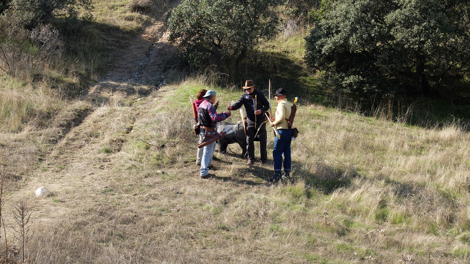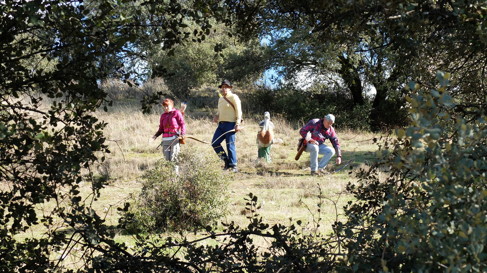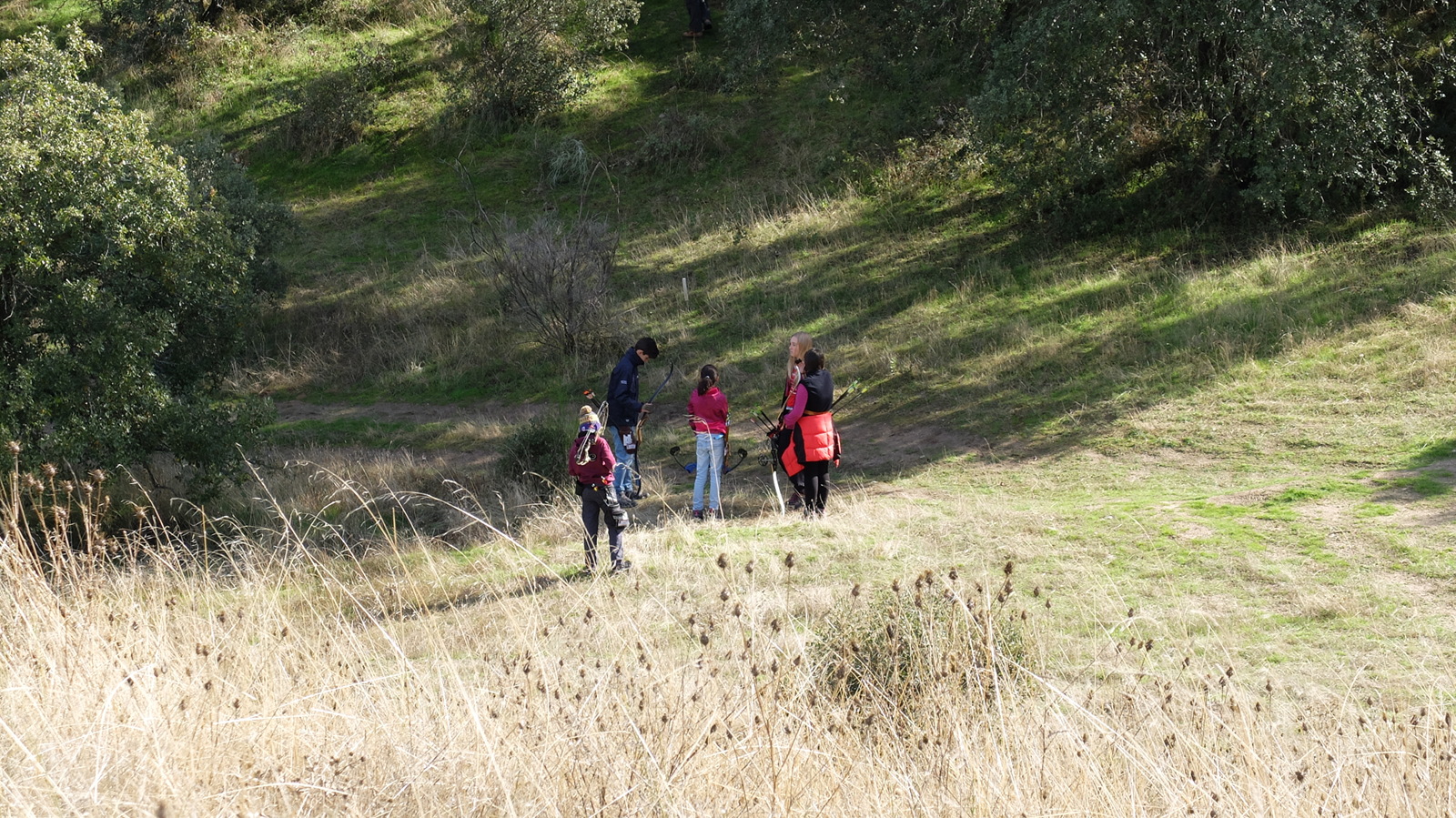 La mañana se presentaba bastante fría, daban entre 6 y 10 grados, pero a cambio soleada. Así que todo apuntaba a una estupenda jornada en el campo. Mientras muchas familias iban a la sierra a dar un paseito y a comer, unos 85 arqueros y arqueras formaban 21 patrullas y se recorrían el campo buscando ciervos, leones, jabalíes, avutardas, arañas gigantes o tortugas.