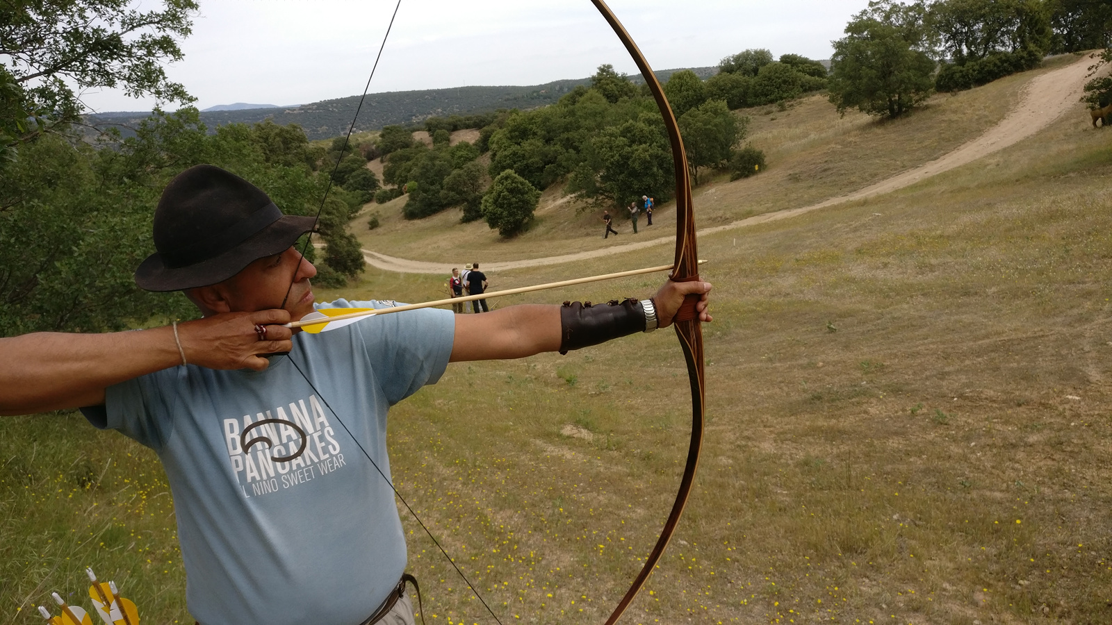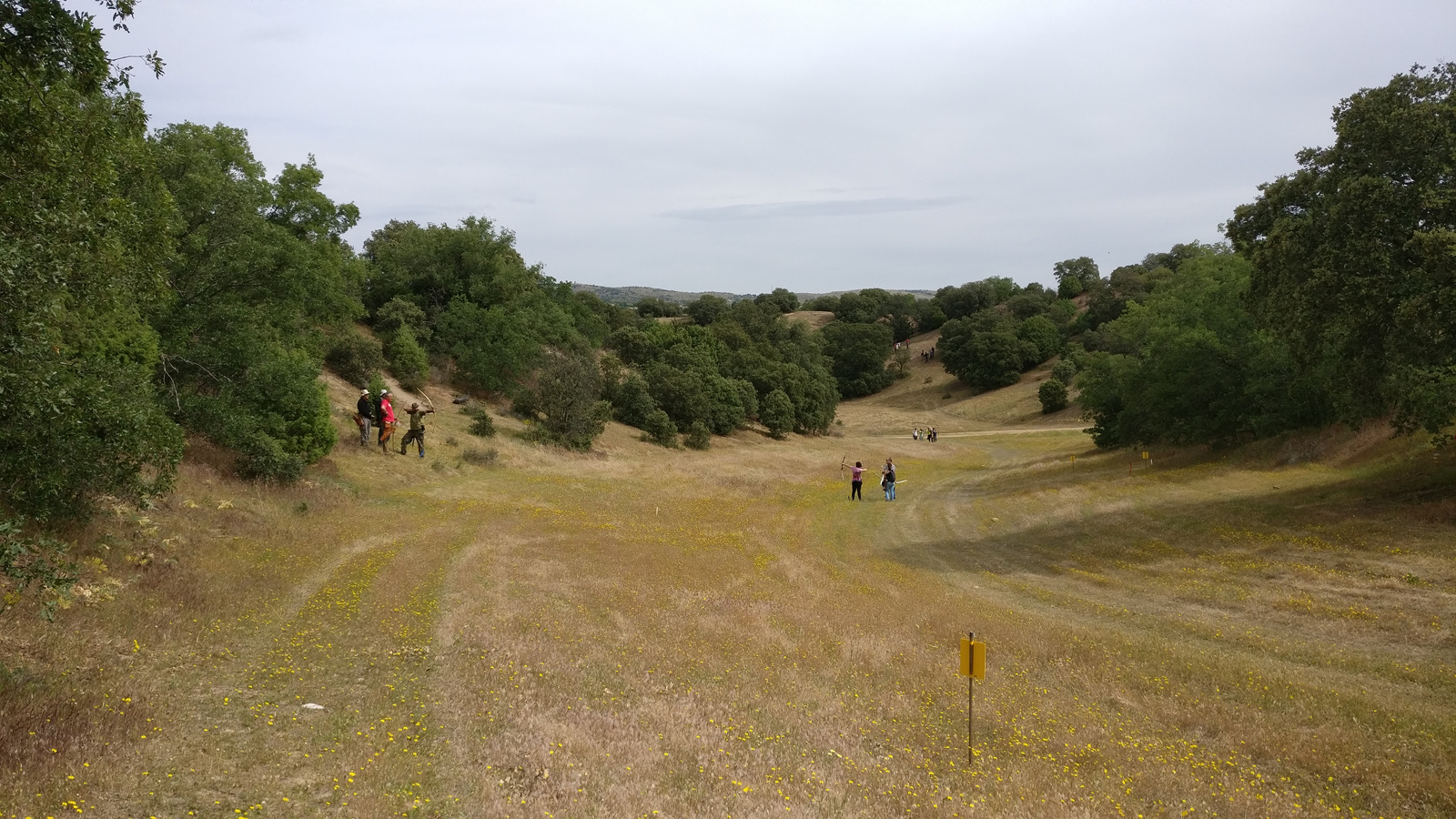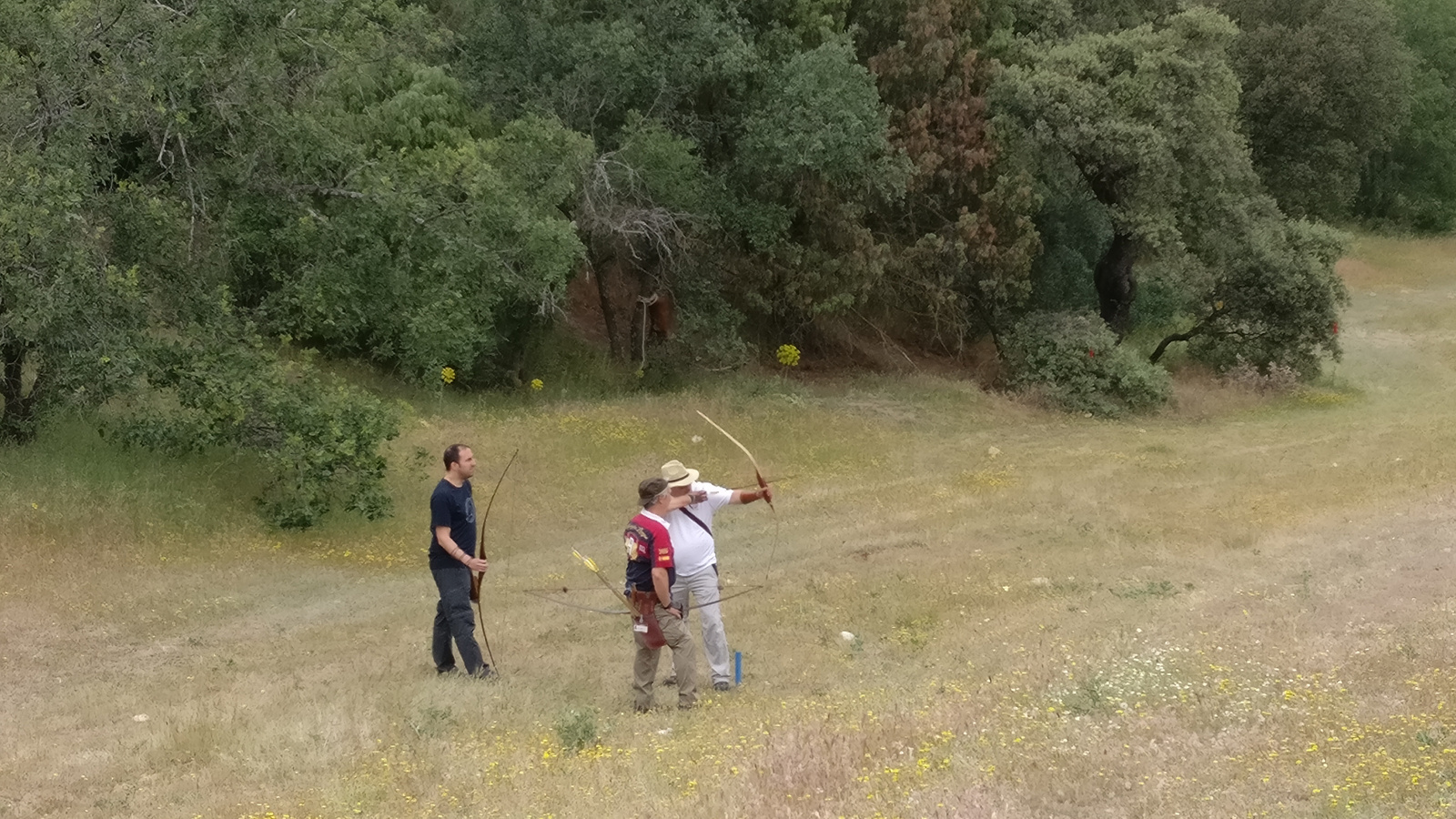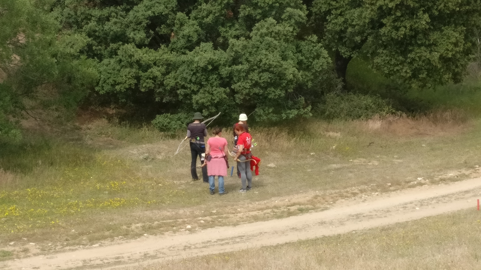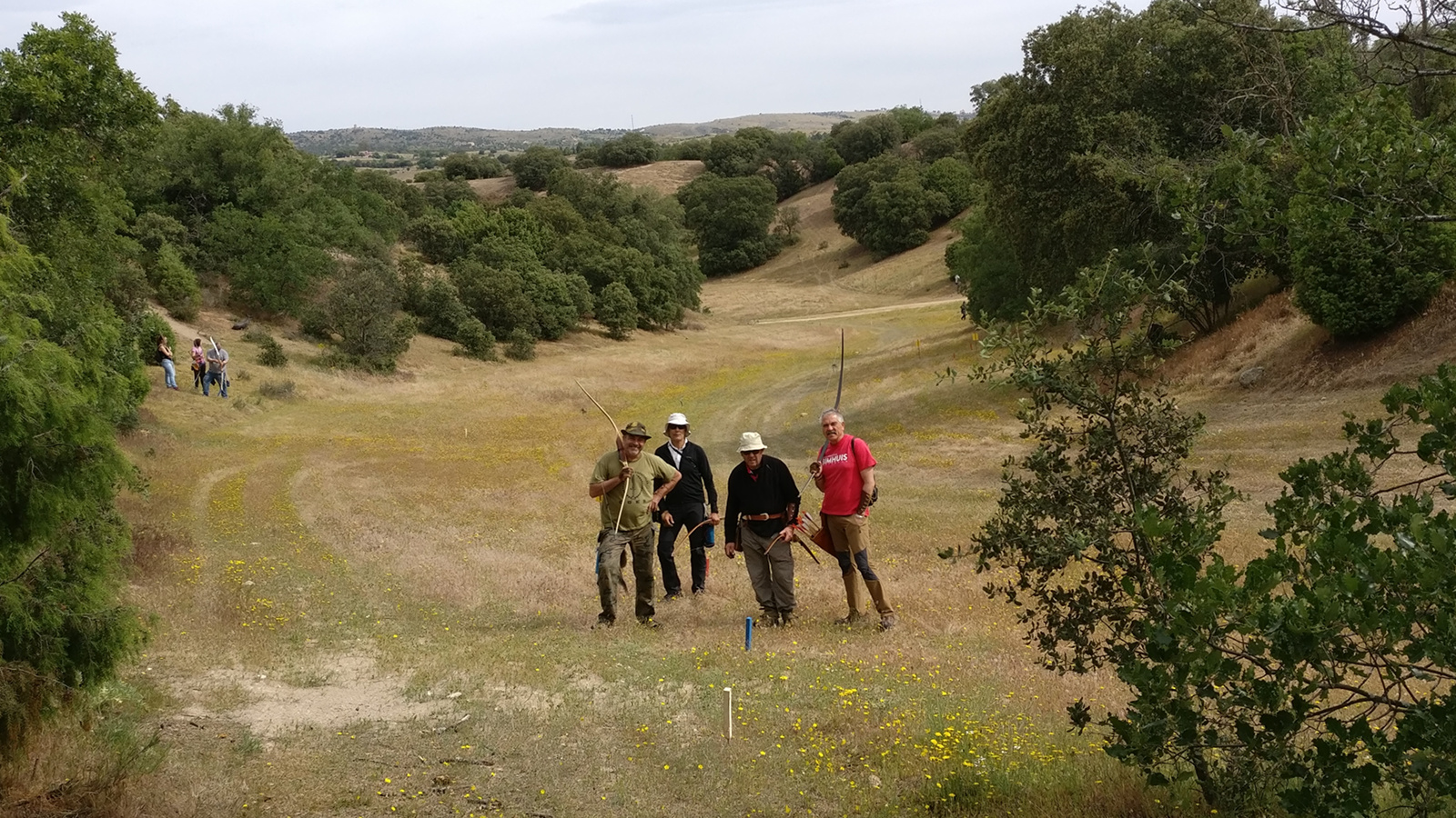 La zona del campo elegida esta vez se alejó de la zona de la primera jornada de liga, yendo al otro extremo, en donde hay dos vaguadas perpendiculares que se unen por unas suaves lomas. Esto favoreció los tiros limpios cruzados de extremo a extremo de la vaguada, muy bonitos como el del león. La colocación de las propuestas apenas nos dio problemas a la hora de buscar alguna flecha perdida y se aprovechó muy bien una pequeña zona que a mí me gusta mucho que es la pendiente cercana al parapeto de distancias y que tiene una encinas que cobijan muy bien los tiros en pendiente.