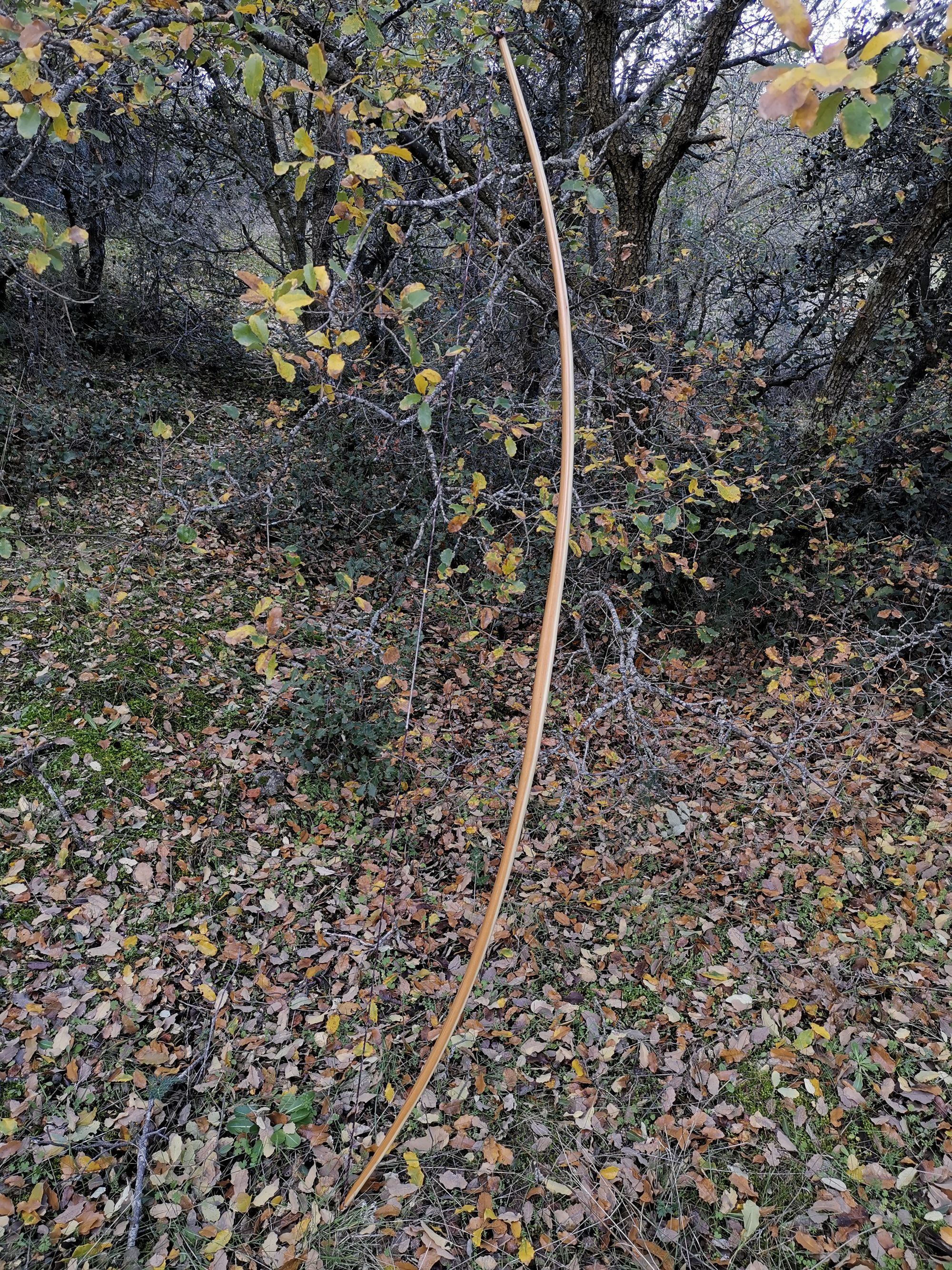 Por ello le pedí al mismo Jürgen que me hiciera un arco "réplica" de tal espécimen arquero. Como el arco original era de tejo y el tejo es muy escaso y está protegido, le dije que no tenía prisa, que cuando apareciera el tejo adecuado se pusiera manos a la obra.