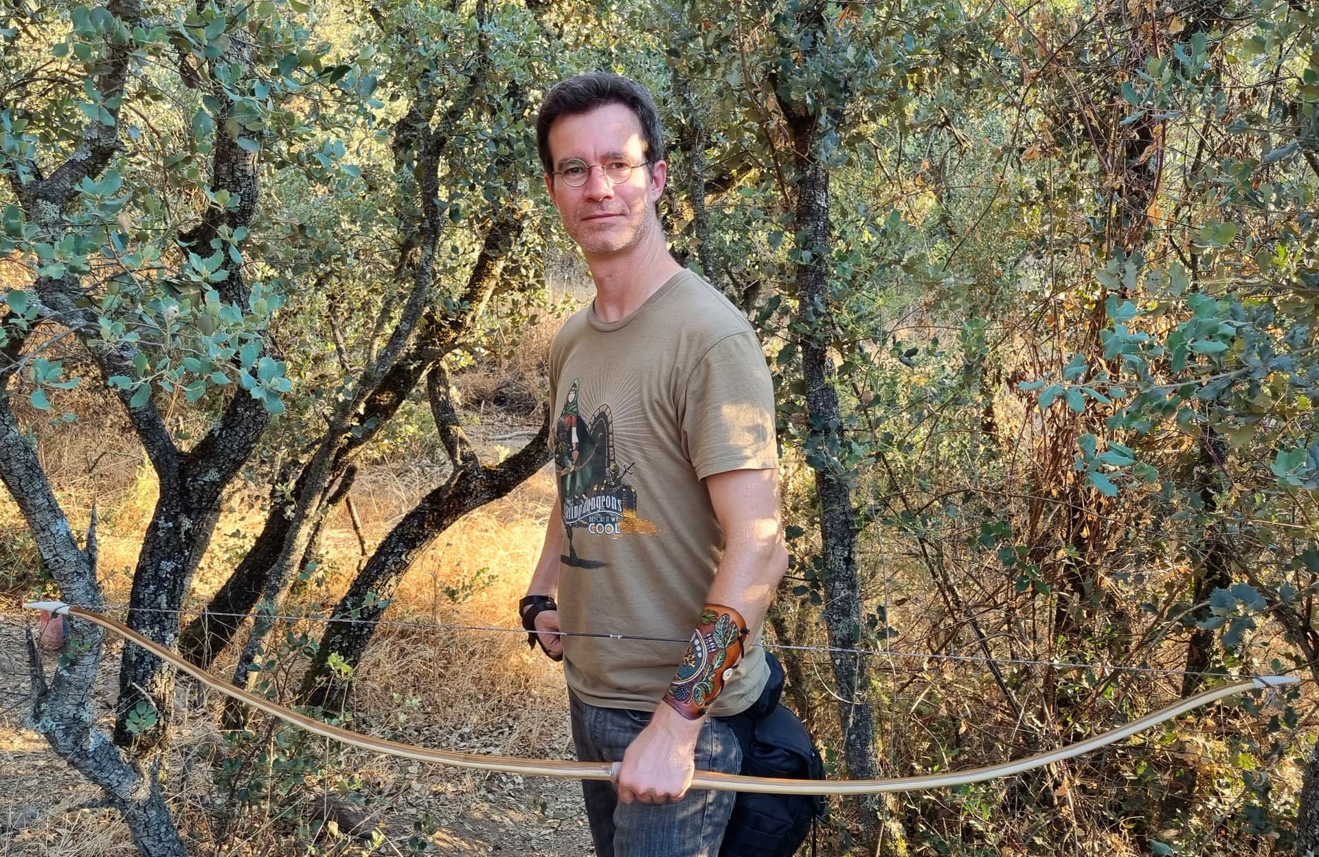 Esta recurva la consigue Jürgen con una técnica de calentando suave de la madera y unas guías y presas para lograr domar el Laburnum y que retenga esa forma. Aunque no es comparable en velocidad, me permite emplear las mismas flechas de madera que uso para mi Falco Saga de 35 libras.