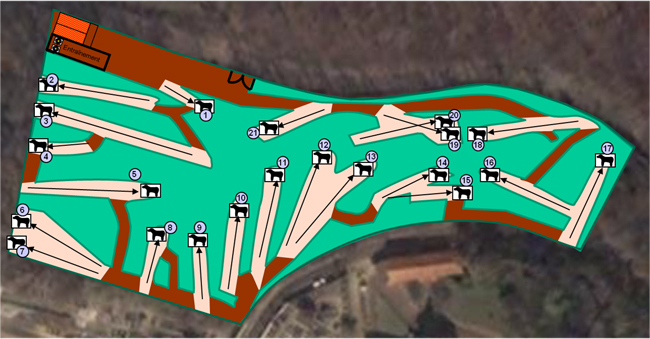 El recorrido fijo de Saint-Prix sigue un mismo patrón desde hace bastantes años, por lo que he podido averiguar. Aprovechan el terreno de una manera muy eficiente y tienen dispuestas hasta 21 propuestas de todos los tamaños y distancias. Los animales son de muy buena calidad y las piquetas están colocadas de forma que siempre haya un pequeño reto aunque en general podríamos decir que los tiros son limpios. En mi opinión tienen una dosis adecuada de dificultad.