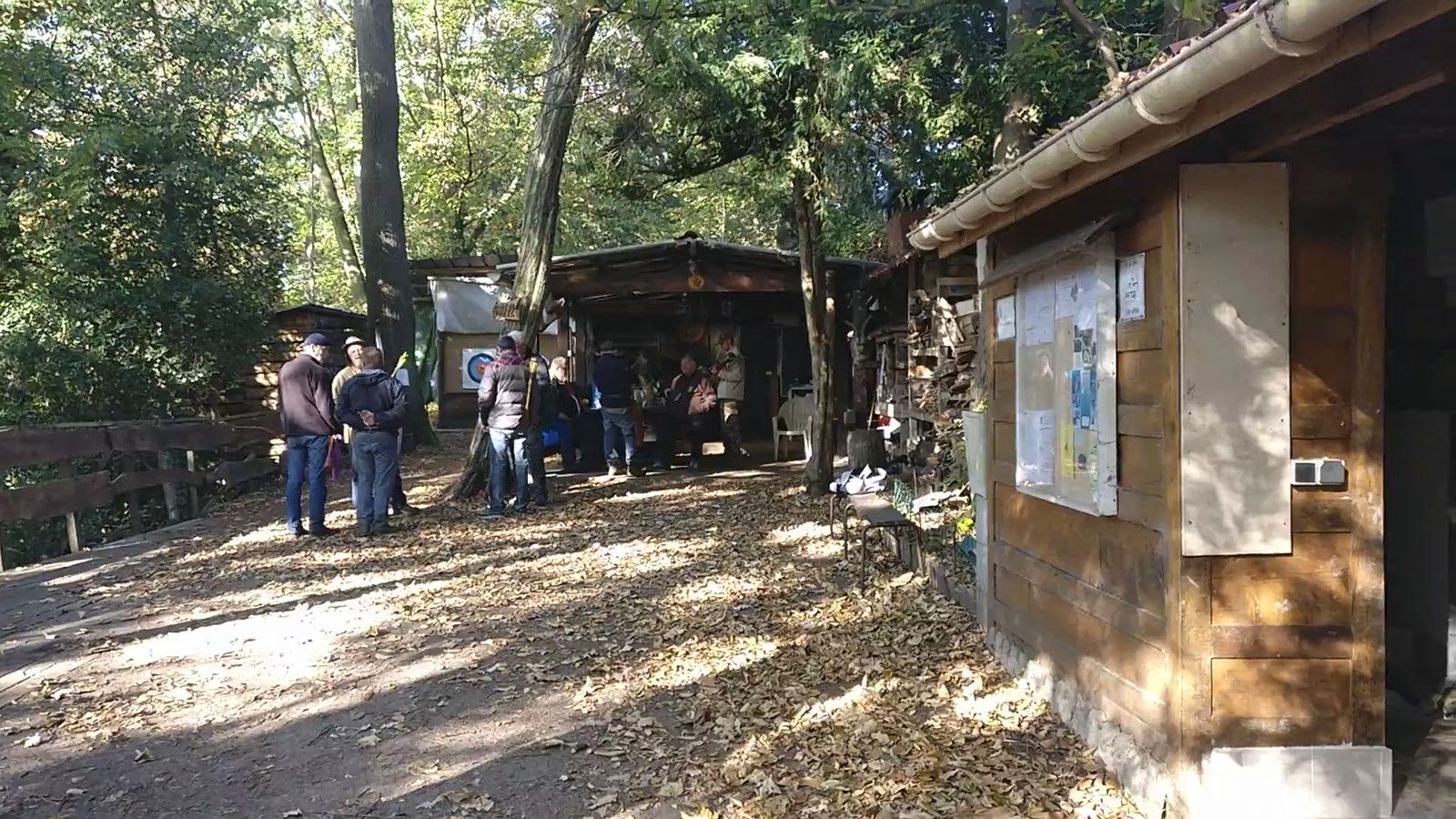 Las conversaciones, los gestos, las risotadas, las bromas, todo era tan familiar... Si en un instante toda aquel grupo de personas hubiera de pronto pasado de hablar francés a hablar español, nada hubiera desentonado ni un poco, tanta era la sintonía, no ya por la pasión compartida por el tiro con arco en bosque sino por la forma de ser. Para los que nos conocéis en persona, esto podría haber sido perfectamente el rato de caldereta de alguna de las estupendas tiradas de Arqueros de Madrid o el previo a una de esas super paellas de Bastión de Alanos o el rato de espera antes de los trofeos con el piscolabis en CAMS. Igual.