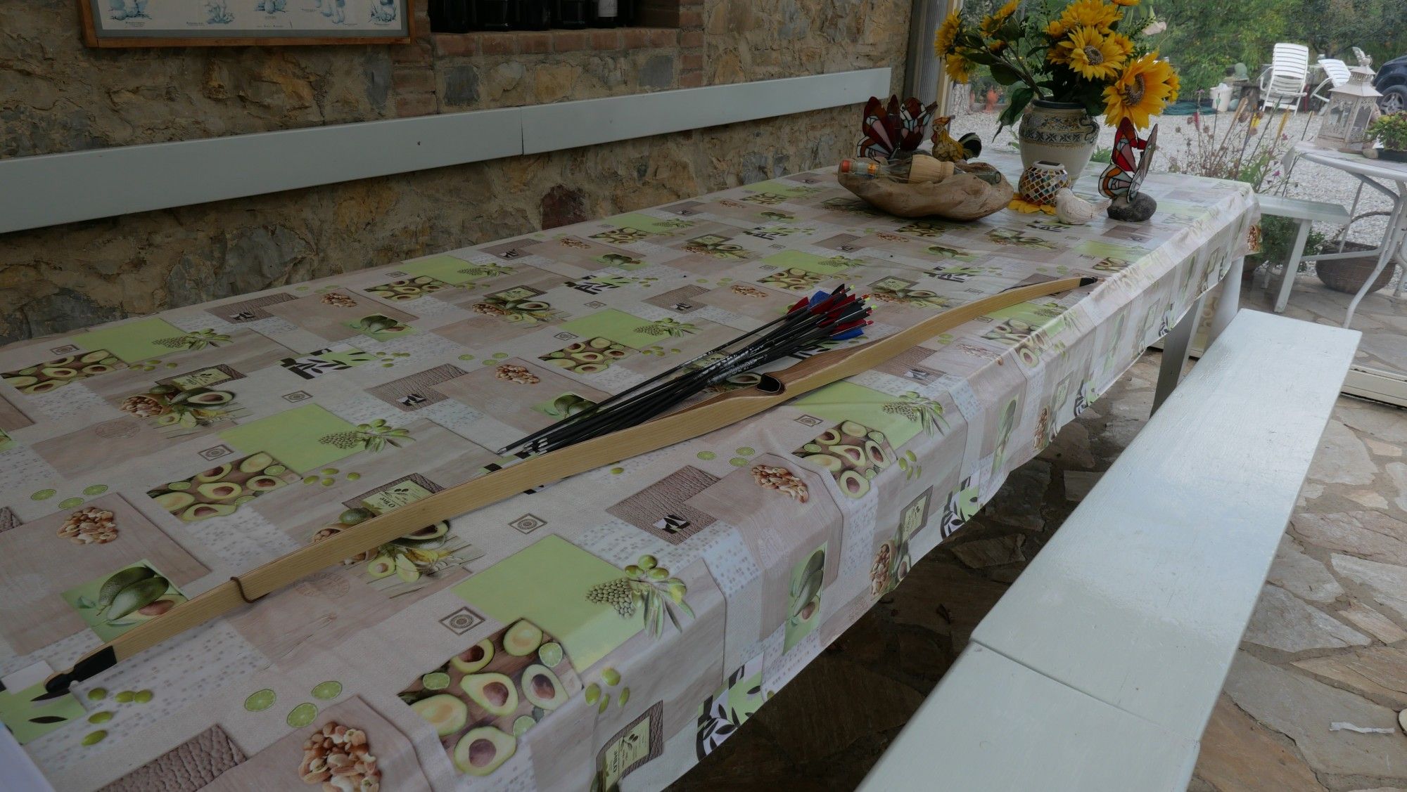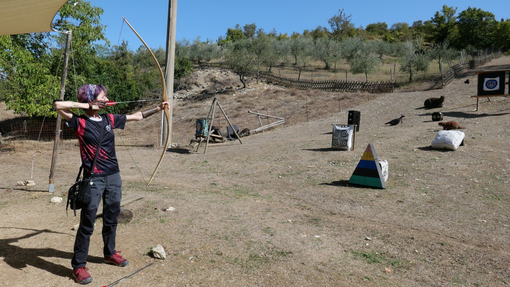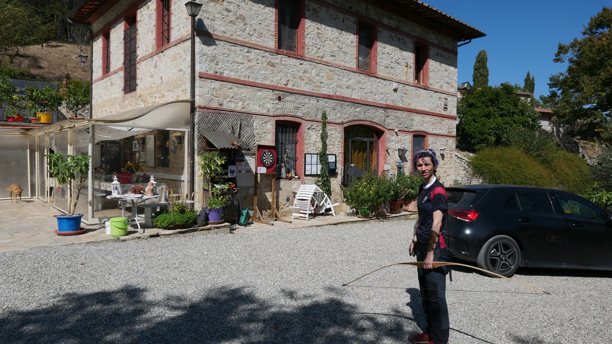 Cabe destacar lo volcado que estuvo Enrico Miglietta, de Toxon Sport, con nuestra necesidad un tanto particular. Básicamente, tenía que conseguir el arco y las flechas a medida a punto para nuestra llegada al sitio de marras y todo funcionó genial. El arco estaba con su punto de encoque de hilo, el reposa y el fistmelle adecuado. De hecho, lo llevó él personalmente desde su tienda hasta Podere Val Verde. ¡Grazie mile Enrico!