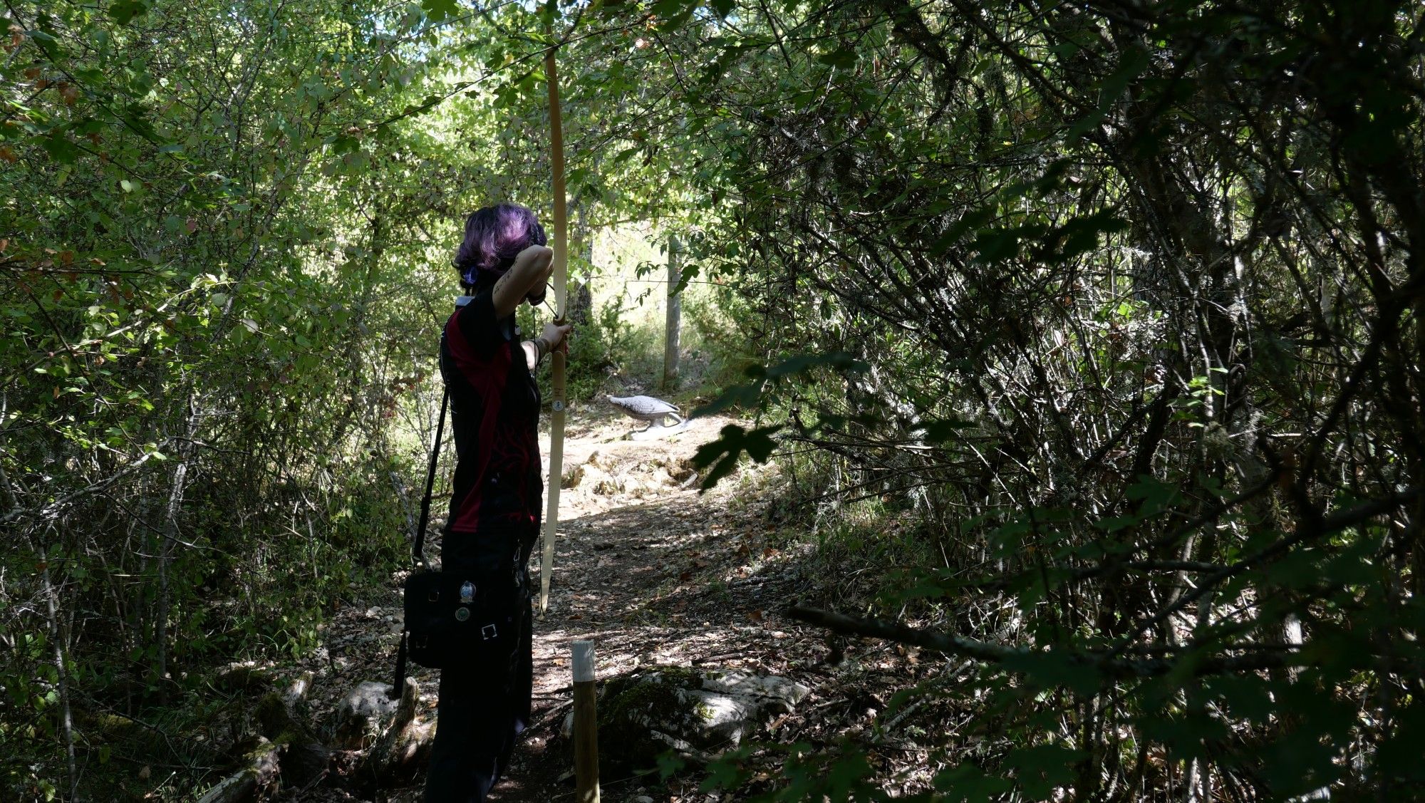 Este recorrido nos gustó mucho. Lo cierto es que se nos dio especialmente bien. Seguramente estábamos haciéndonos más y más al arco, estábamos muy relajados y la luz tamizada por las nubes ayudaba bastante. Siempre hace ilusión ver que puedes coger un arco por primera vez (que cumpla un poco con tus parámetros) y unas flechas que vuelan suficientemente bien y tirar bien, tirar cómodo.