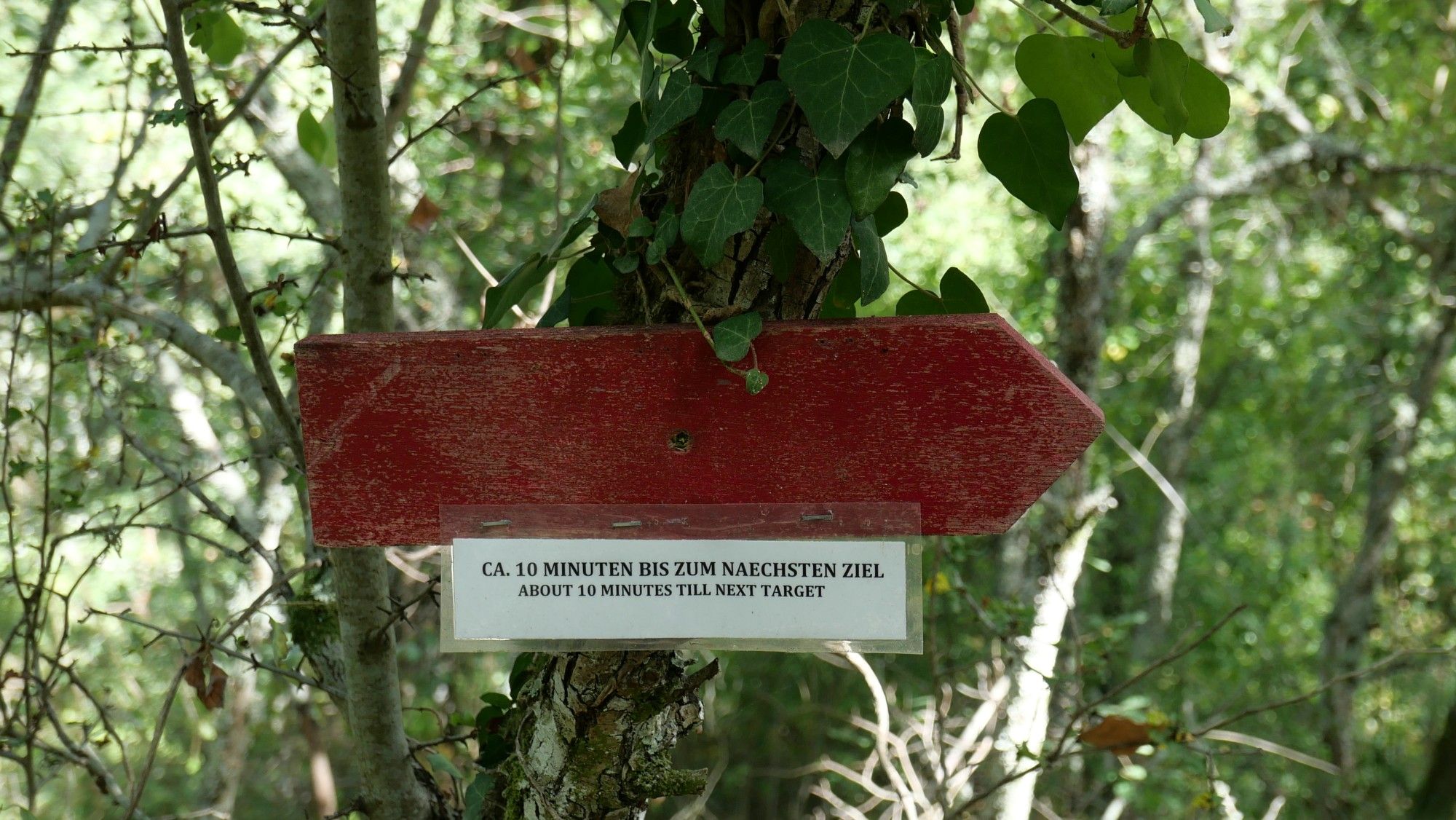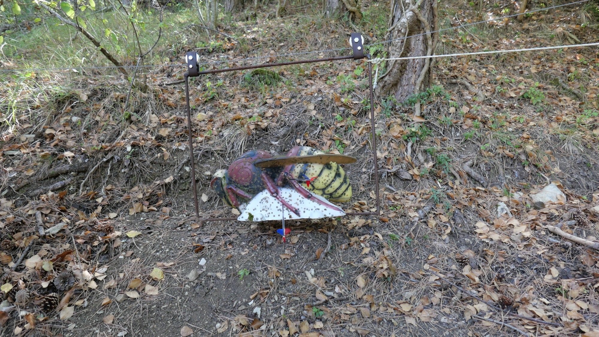 Los animales eran los habituales jabalíes (pero no tan habituales como en España, que empalagan), linces, cocodrilos, ciervos, venados, ardillas, aves varias... Y había dos dianas móviles. Una con un cuervo y otra con una avispa gigante, ambas con el sistema sencillo de una cuerda de la que tiras para "cargar" la diana y al soltar, la diana pasa de derecha a izquierda en el plano del parapeto. Estas dianas son siempre muy divertidas y nos recordaron a las que vimos en la Selva Negra. Ulrike y Fabian son de origen alemán así que algo de influencia está claro que existe.
